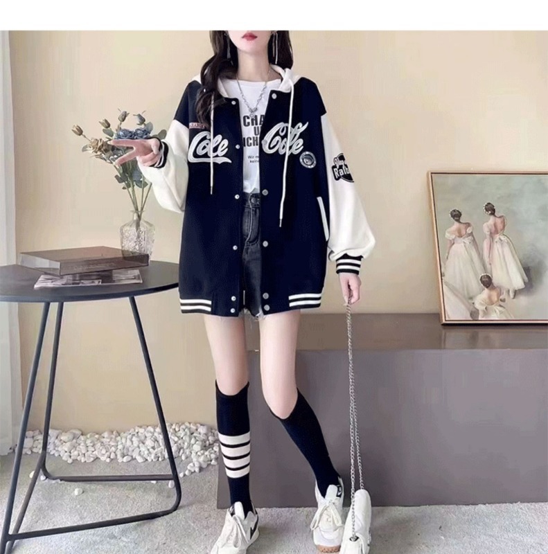 야구 세트 여자 봄과 가을 2025 새로운 한국 느슨한 세련 된 중장 스웨트 코트 작은 남자스토어 가기