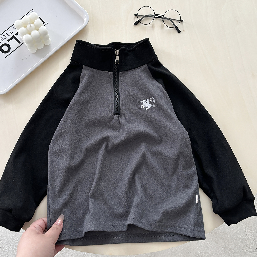 새로운 자수 티셔츠 어린이 긴팔 싱글 스티칭베이스 셔츠 조커 티셔츠 대비 색상 De Rong tide 제조 업체 도매
