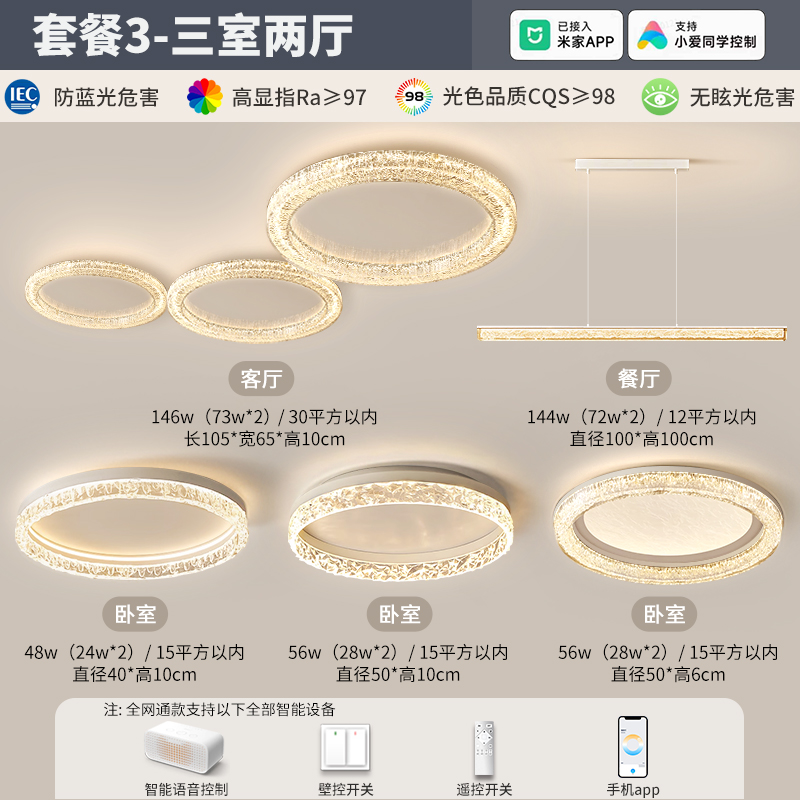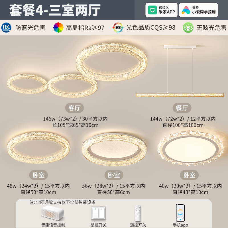 크림 스타일 거실 천장 램프 현대 간단한 대기 메인 램프 이탈리아 미니멀리스트 중산 램프 전체 하우스 패키지 조합