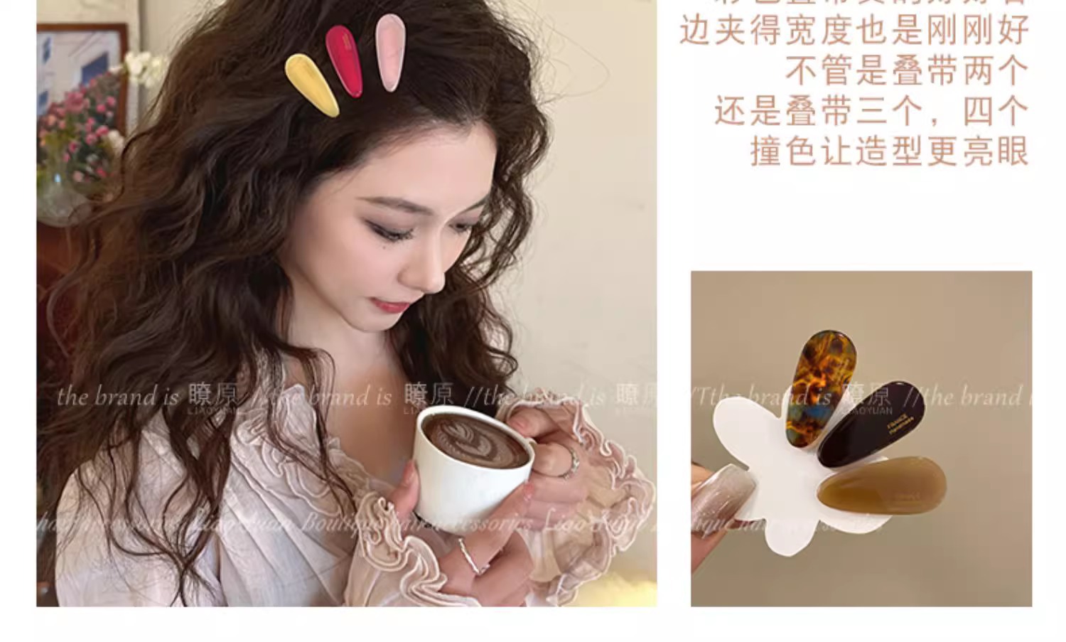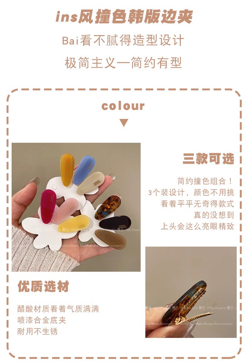 3 귀여운 Bangs 클립 스몰 사이즈 Acetate Broken Hairpin 여성의 2025 새로운 하이 엔드 사이드 뱅 클립 헤드웨어 Ins
