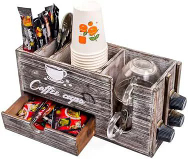 나무 커피 상자 빈티지 바 장식 커피 캡슐 보관 상자 서랍 종이 컵 홀더 단단한 나무 디스펜서
