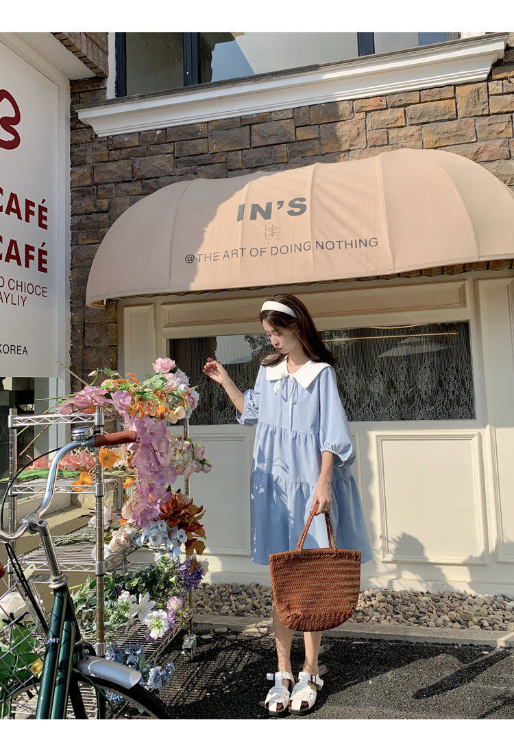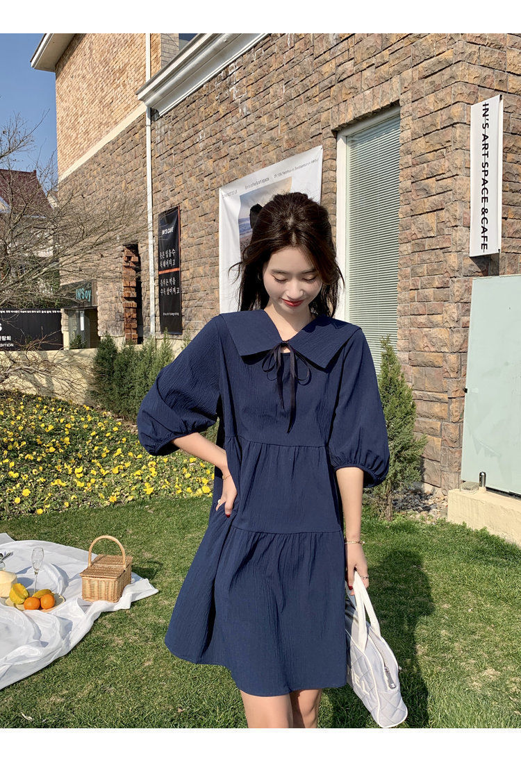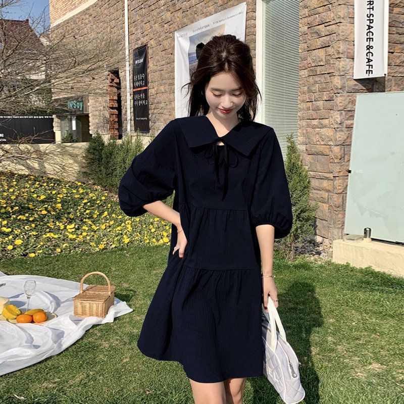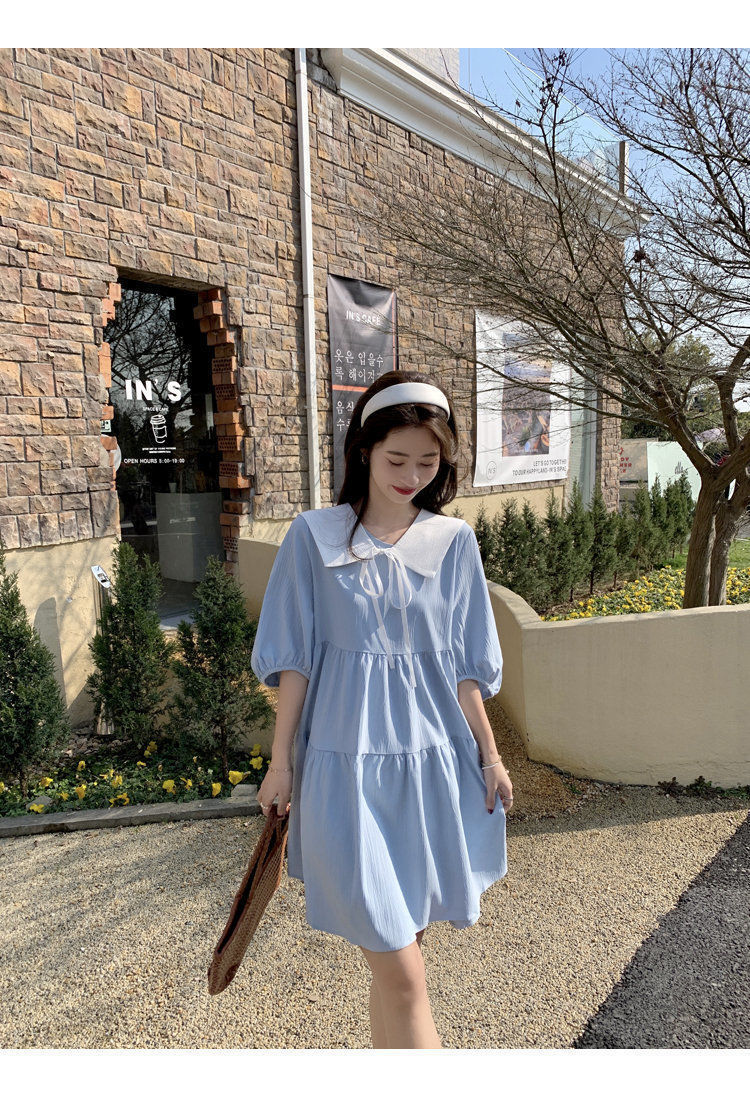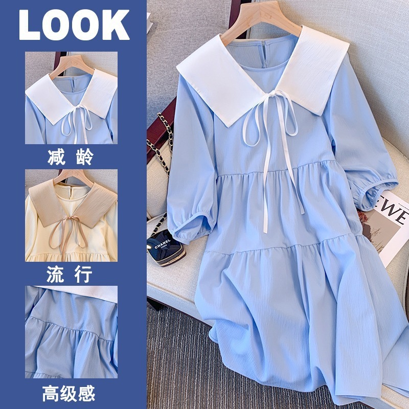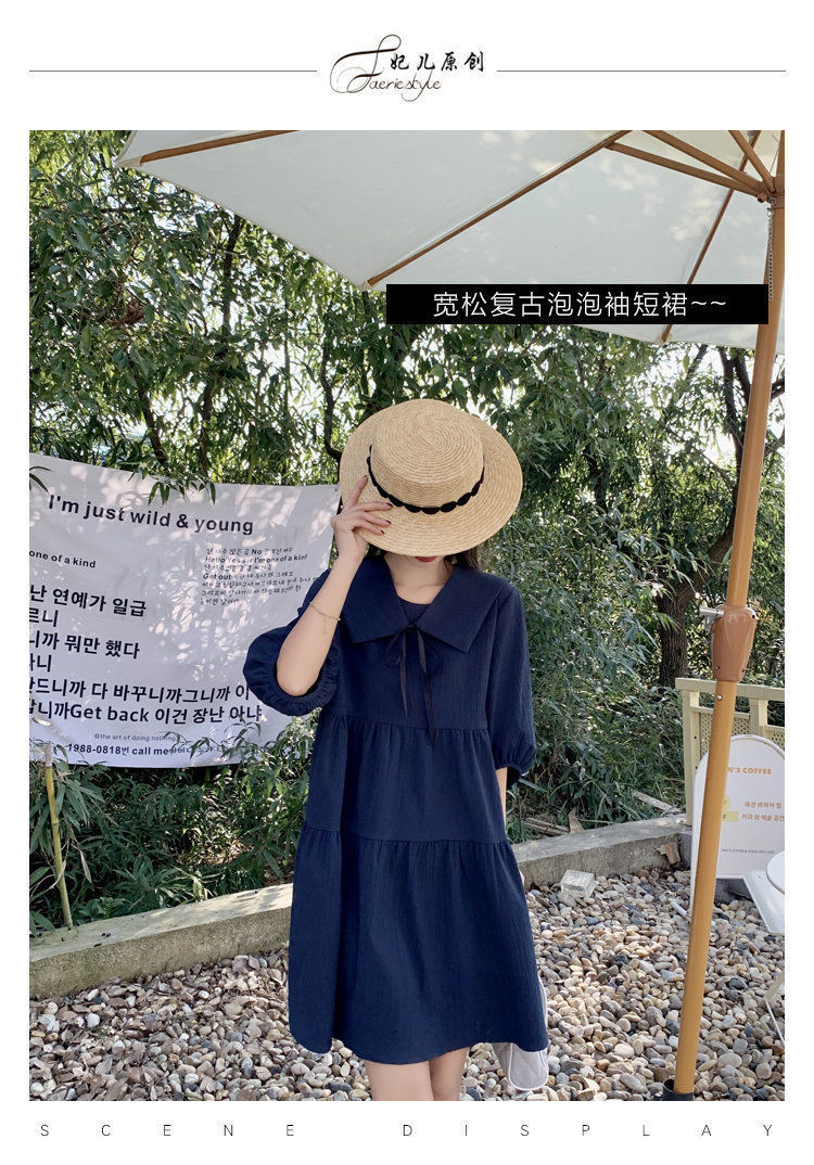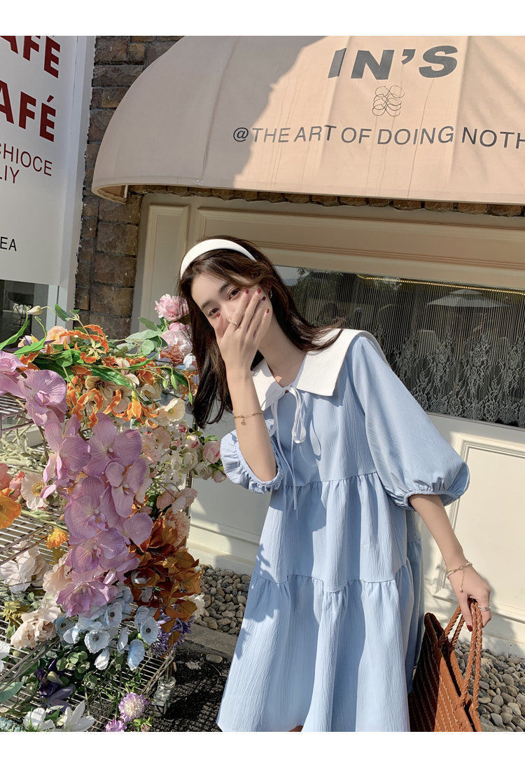 인형 칼라 원피스 여성 2024 년 여름 새로운 도착 루스 레트로 랜턴 버블 슬리브 트렌디 페어리 스커트스토어 가기