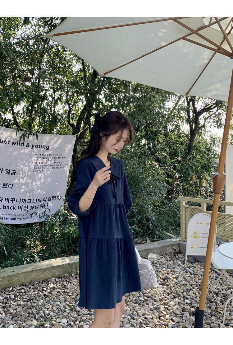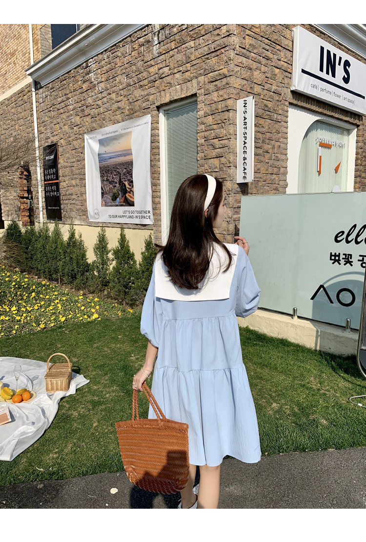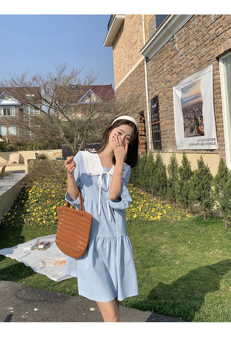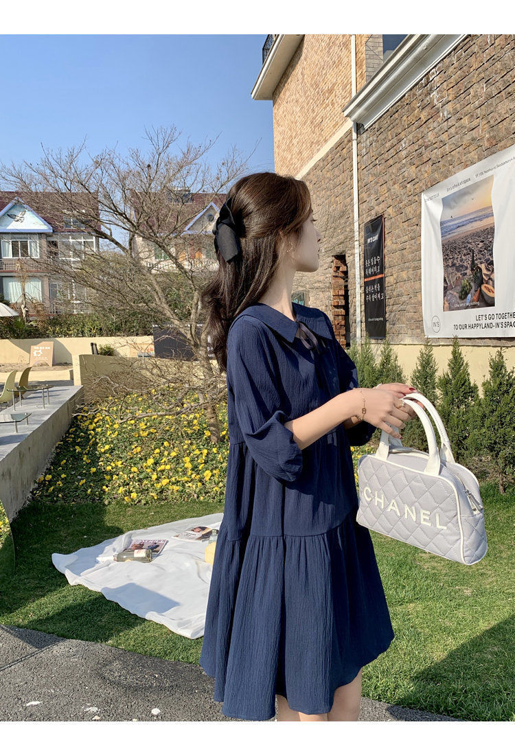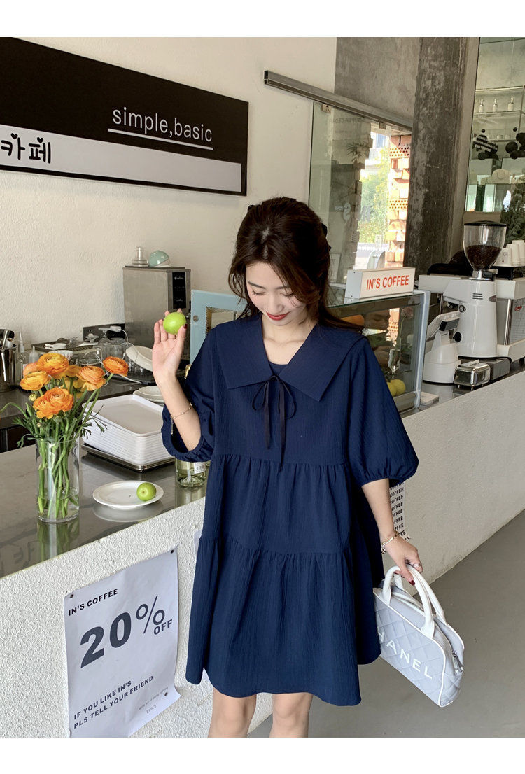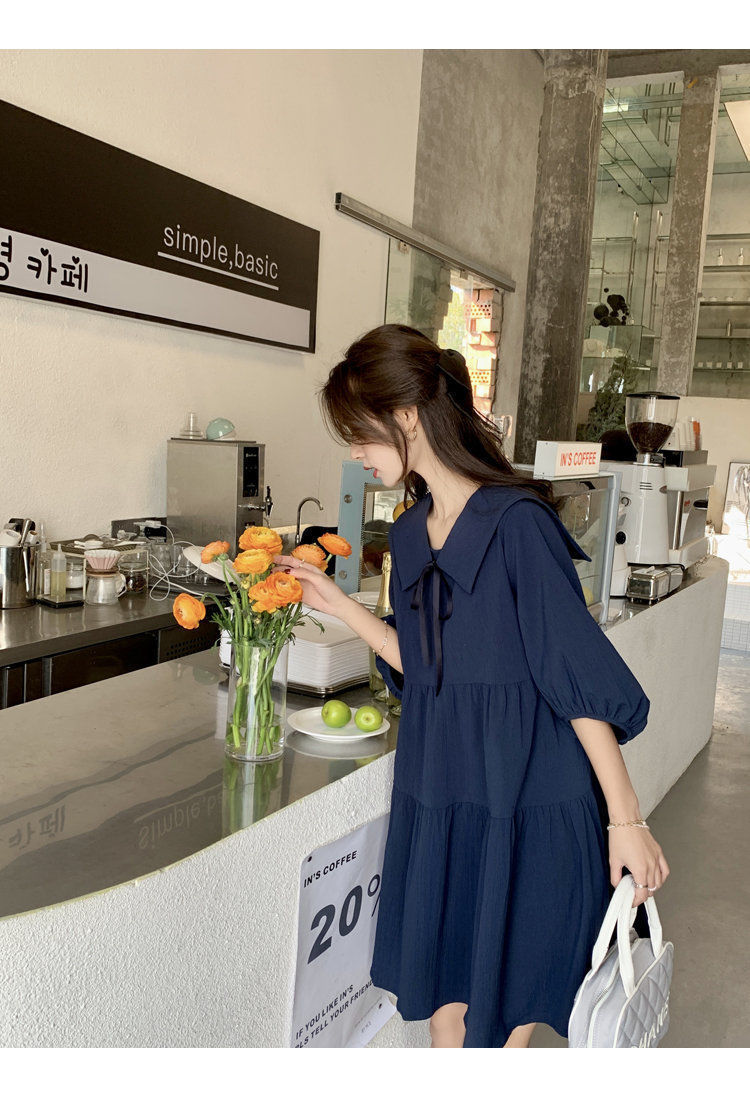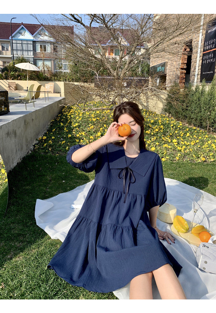 인형 칼라 원피스 여성 2024 년 여름 새로운 도착 루스 레트로 랜턴 버블 슬리브 트렌디 페어리 스커트스토어 가기