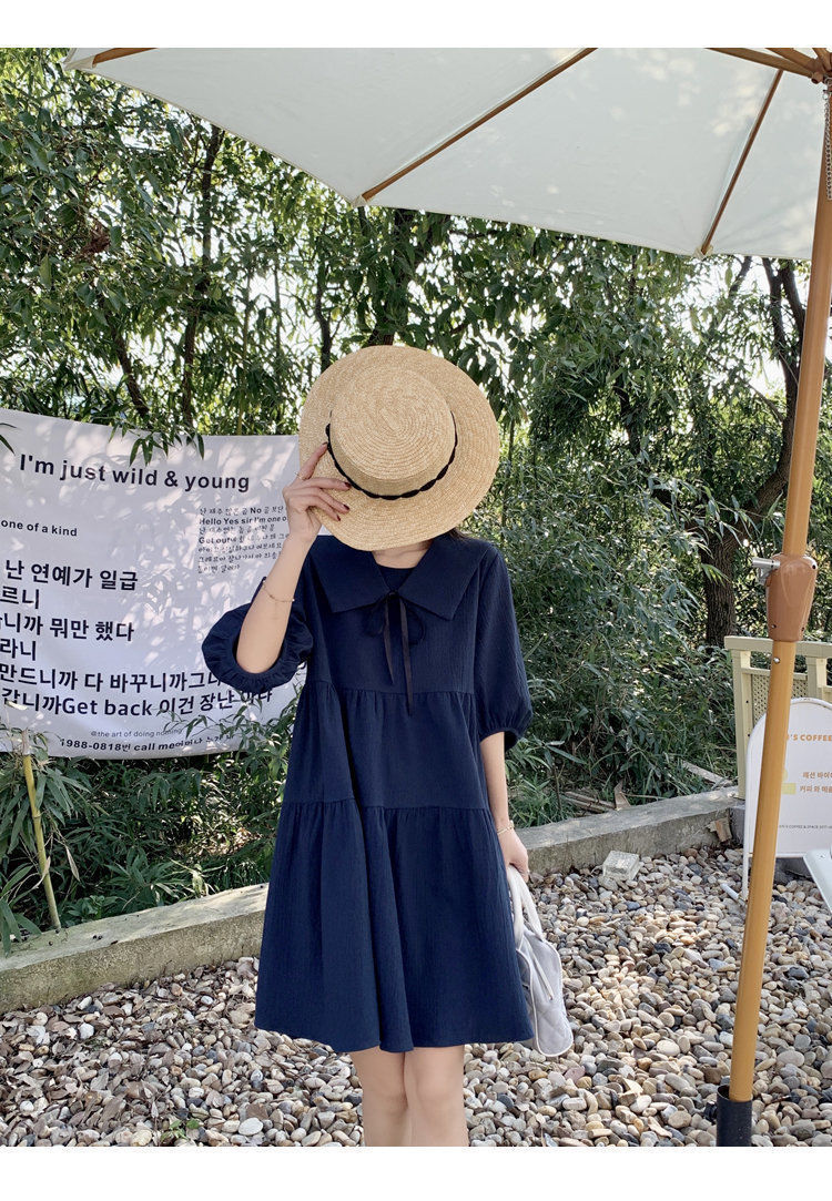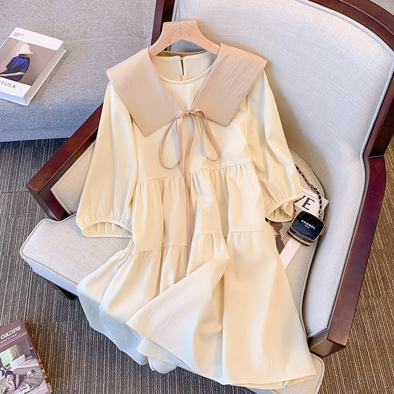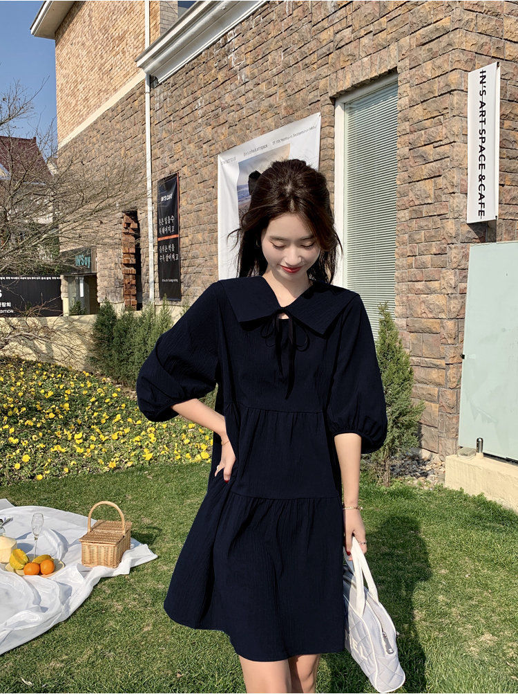 인형 칼라 원피스 여성 2024 년 여름 새로운 도착 루스 레트로 랜턴 버블 슬리브 트렌디 페어리 스커트