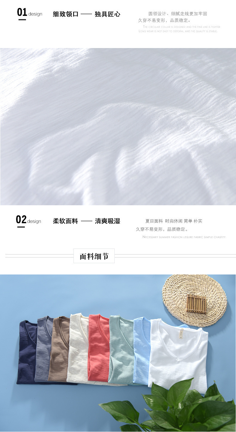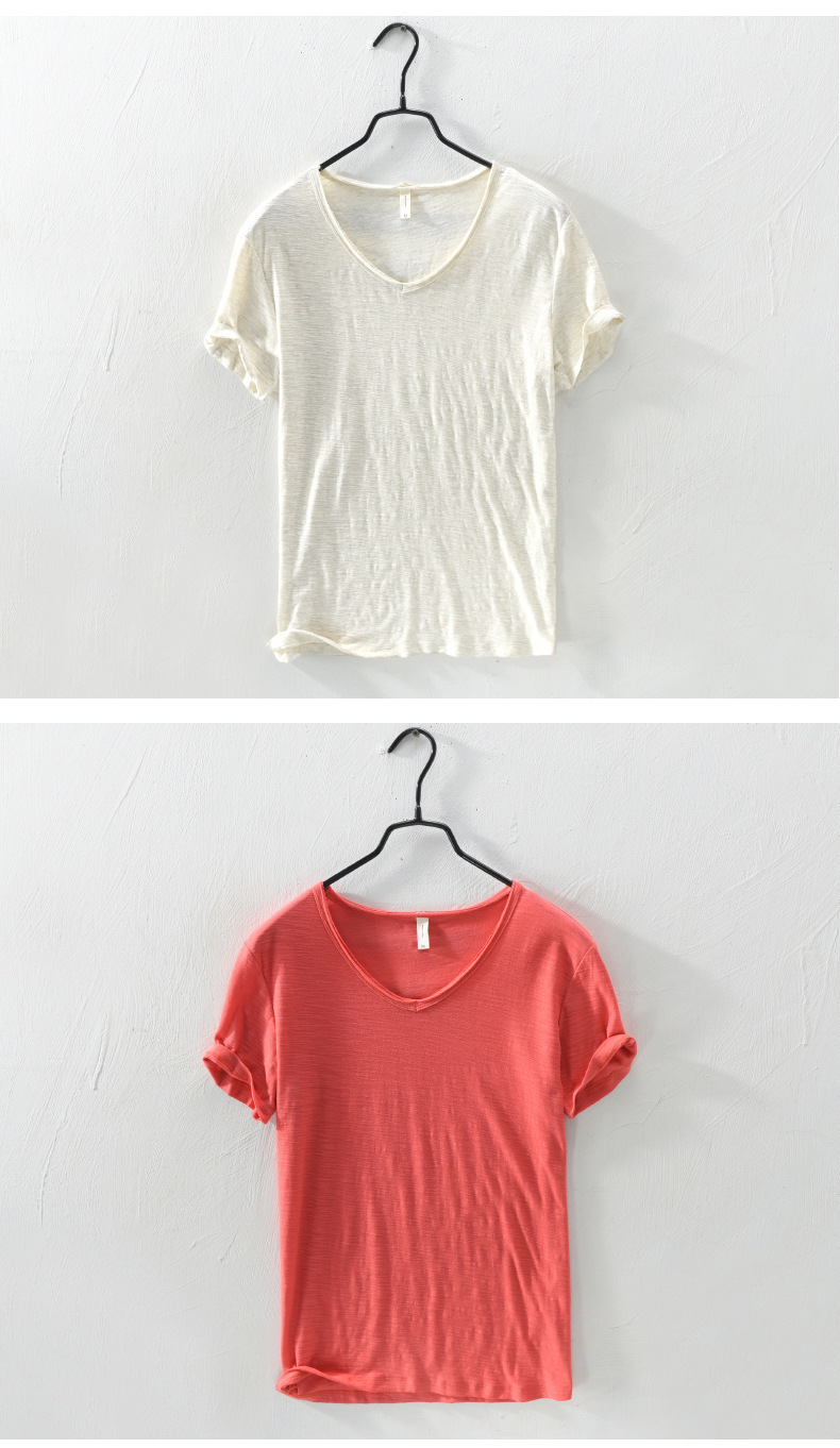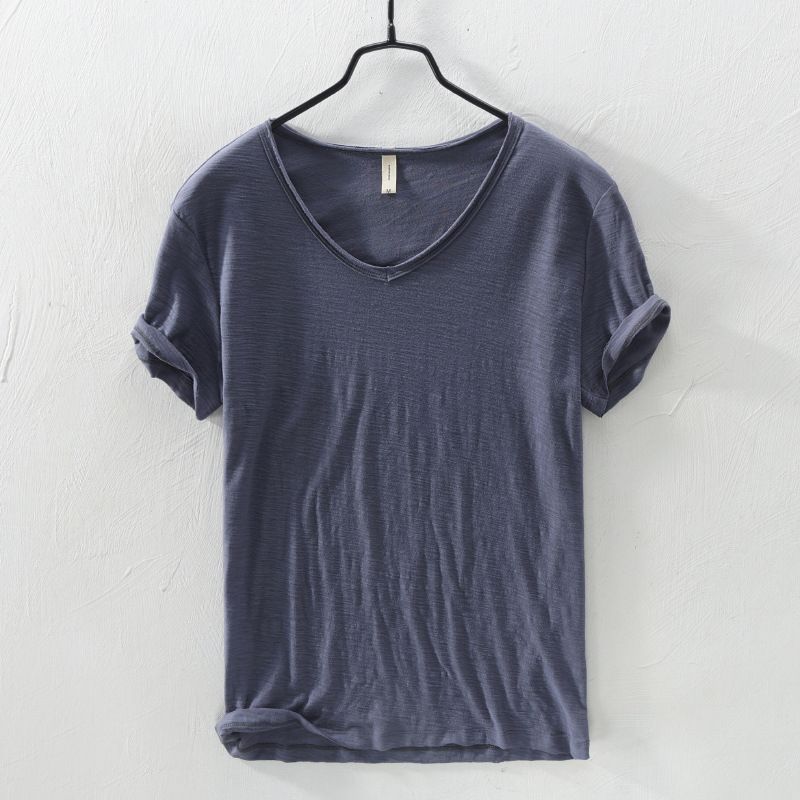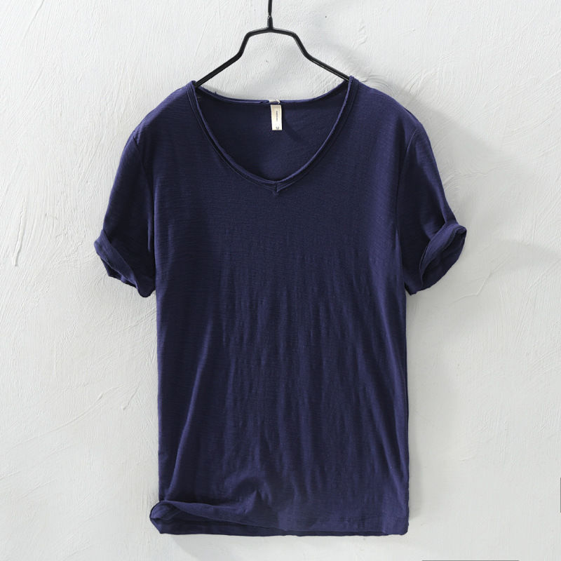심플 슬럽 코튼 티셔츠 남자 반팔 새 여름 유행 남자 반소매 느슨한 올 매치 V 넥 티셔츠 남자 구식