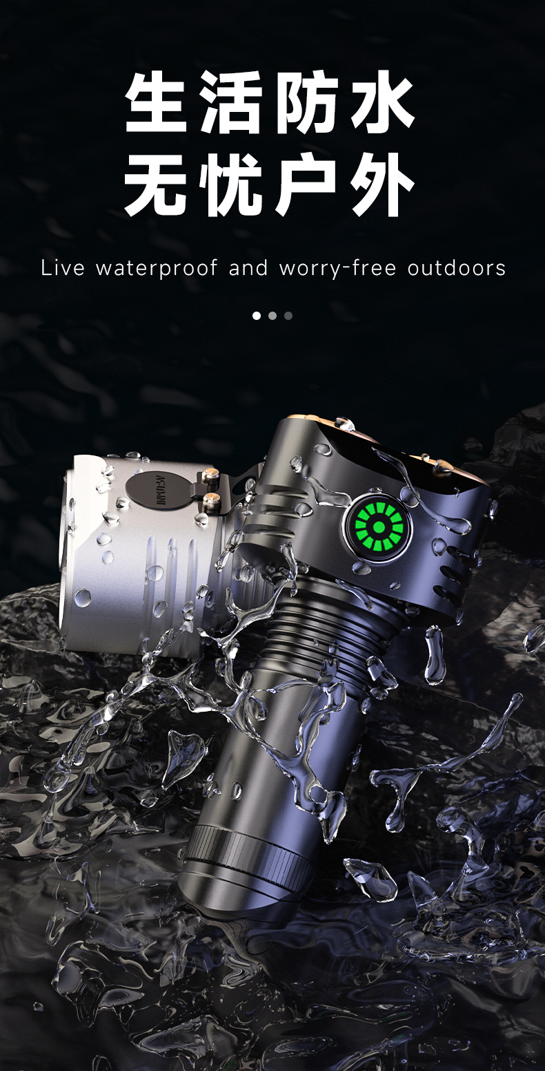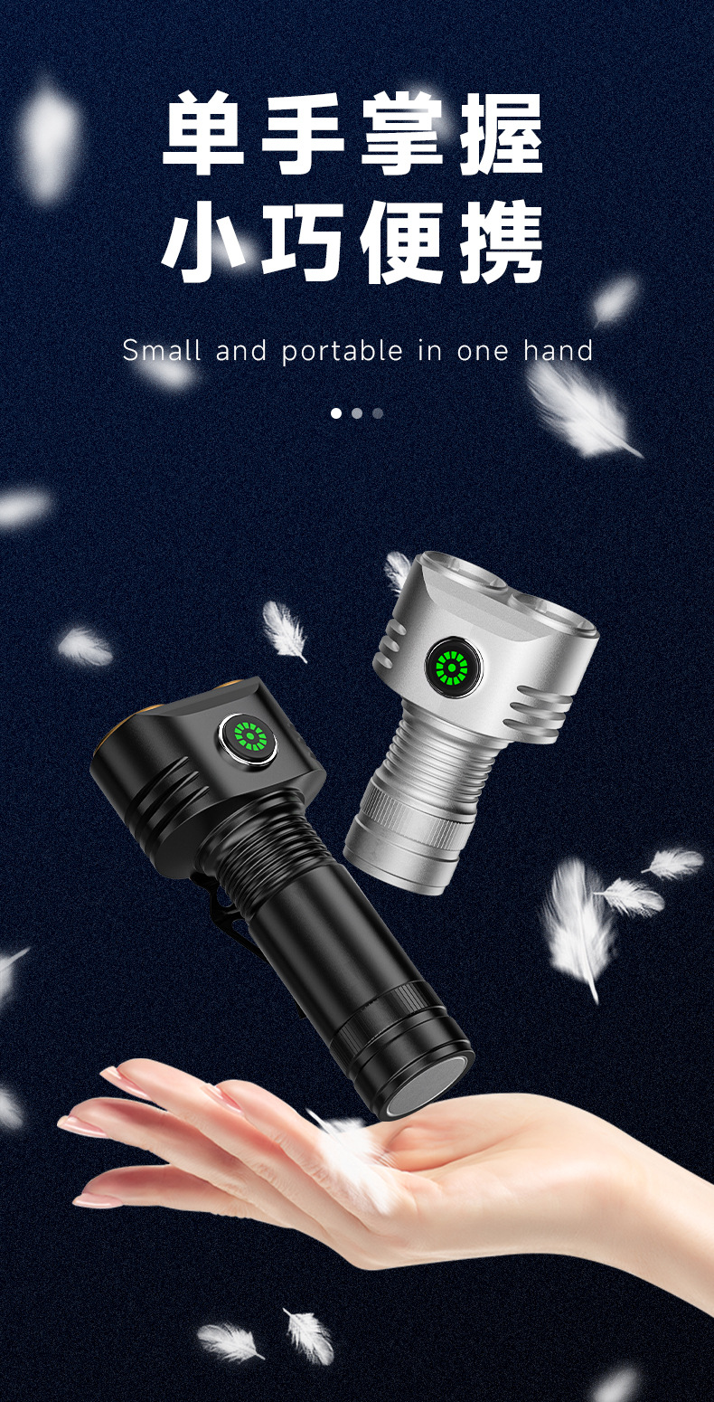 강한 손전등 충전식 다기능 긴 내구성 대용량 가정용 야외 비상 휴대용 작동 손전등스토어 가기