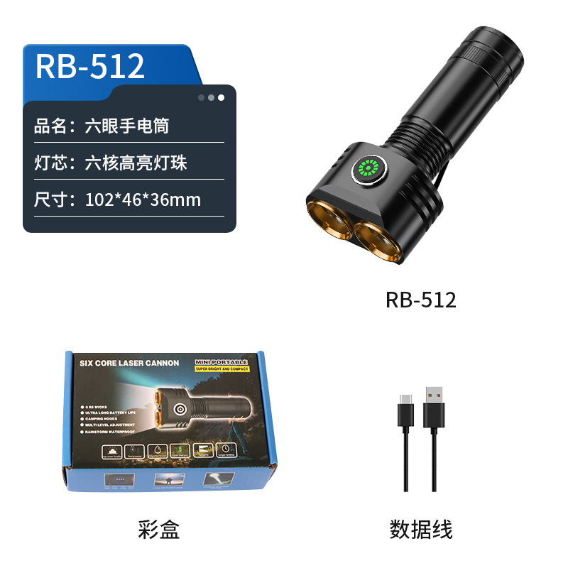 • RB-512 휴대용 손전등(컬러 박스 + 18650 배터리 + 데이터 케이블)