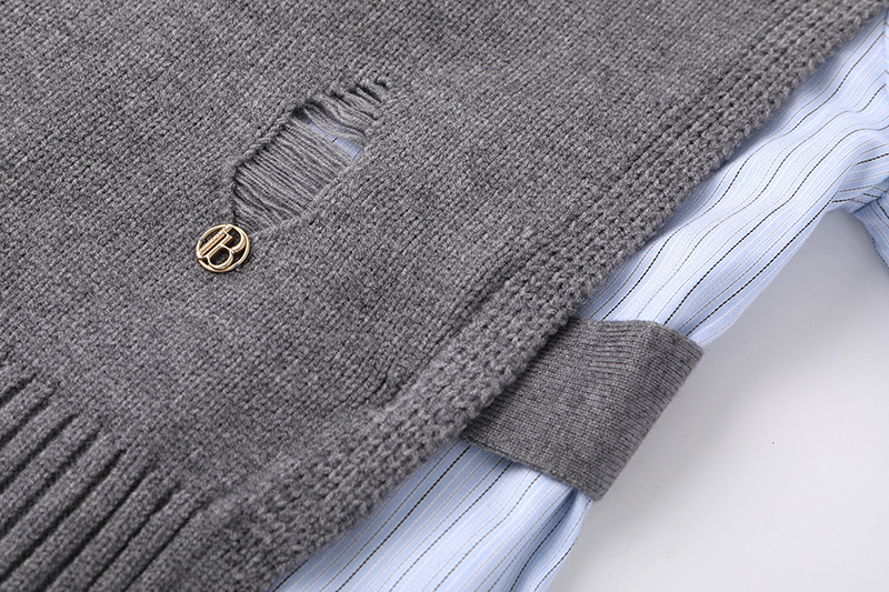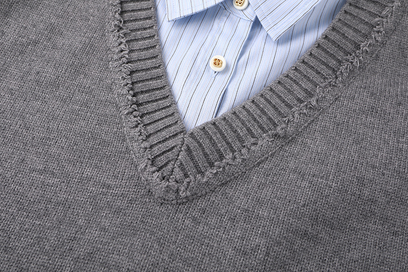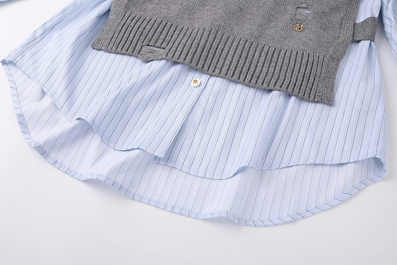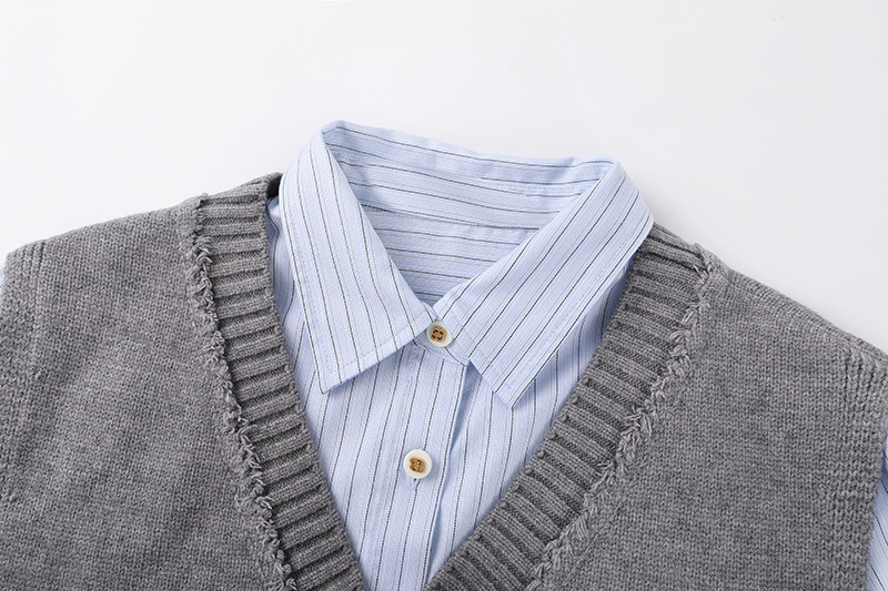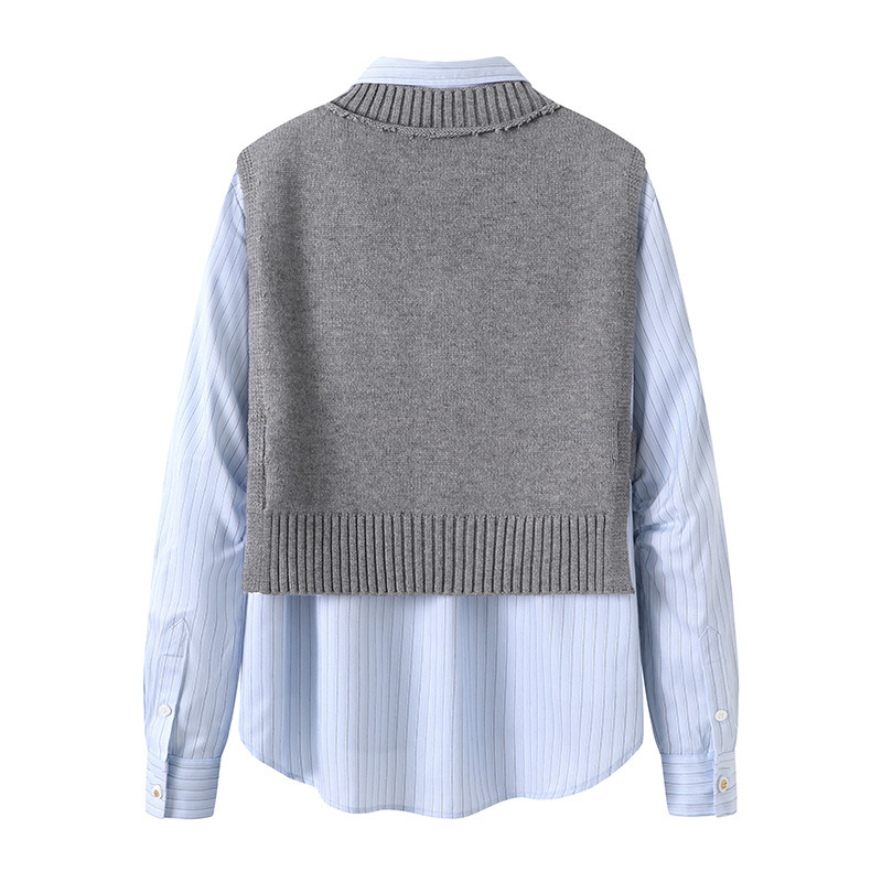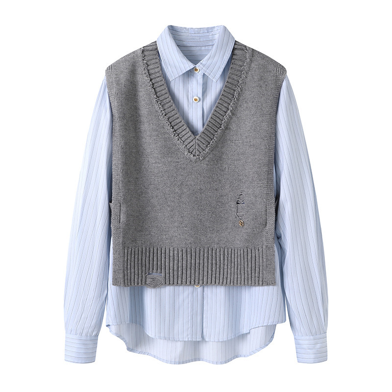 봄 2025 여성을위한 새로운 V 넥 니트 조끼 줄무늬 셔츠 투피스 세트스토어 가기