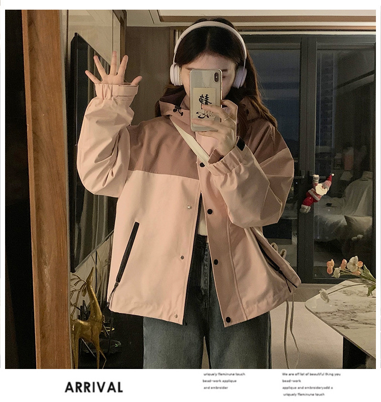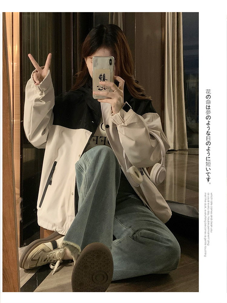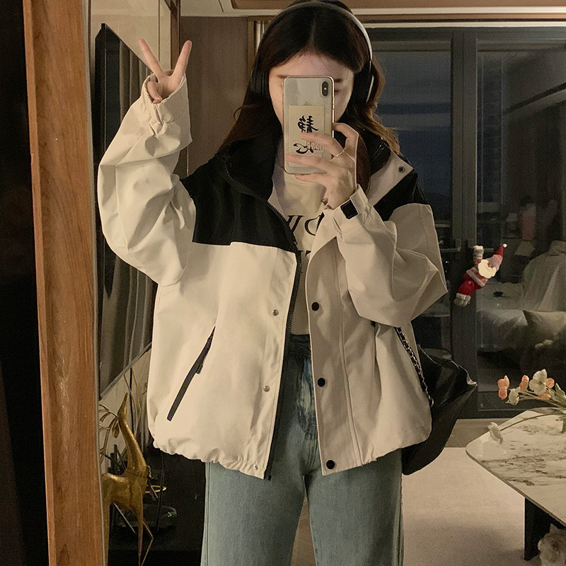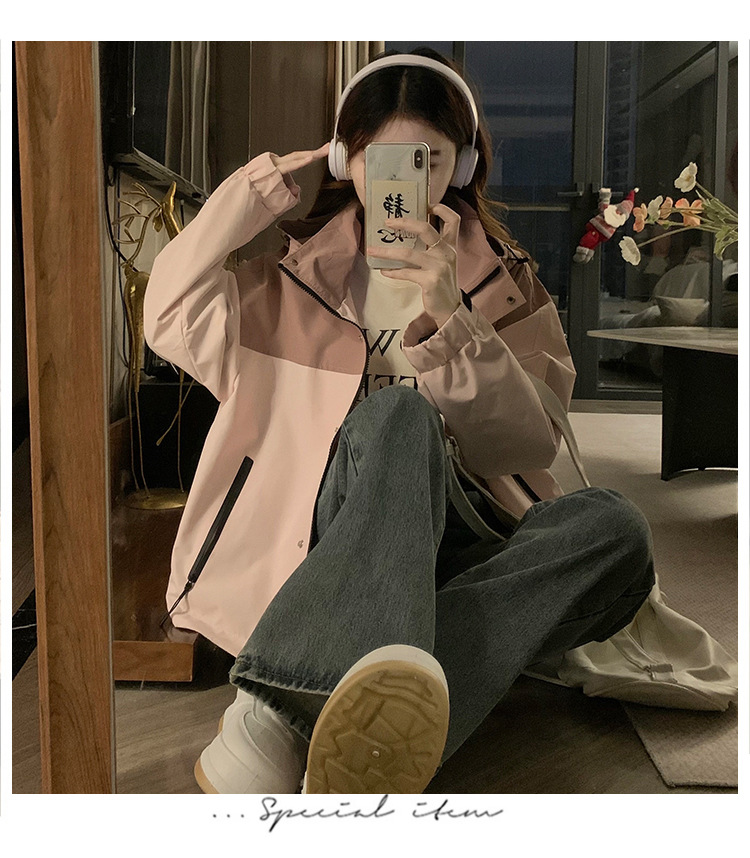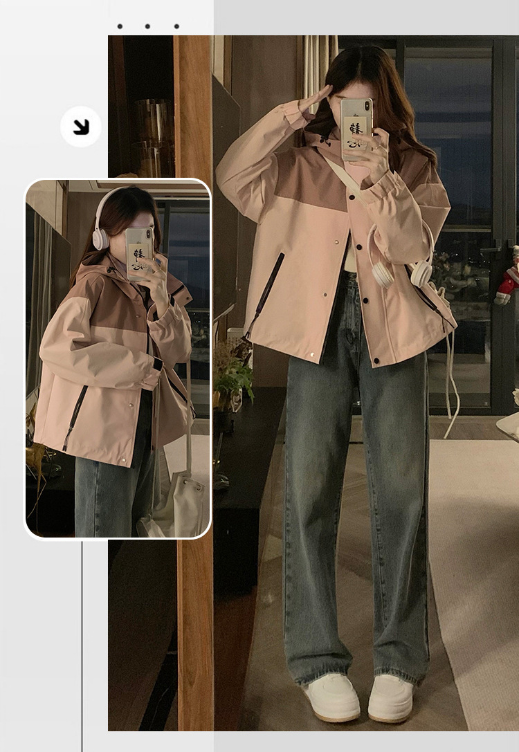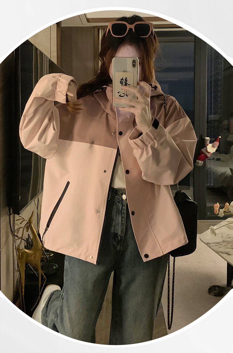 컬러 블록 후드 자켓 여성의 작은 캐주얼 작업복 재킷 탑 봄과 가을 느슨한 슬리밍 재킷스토어 가기