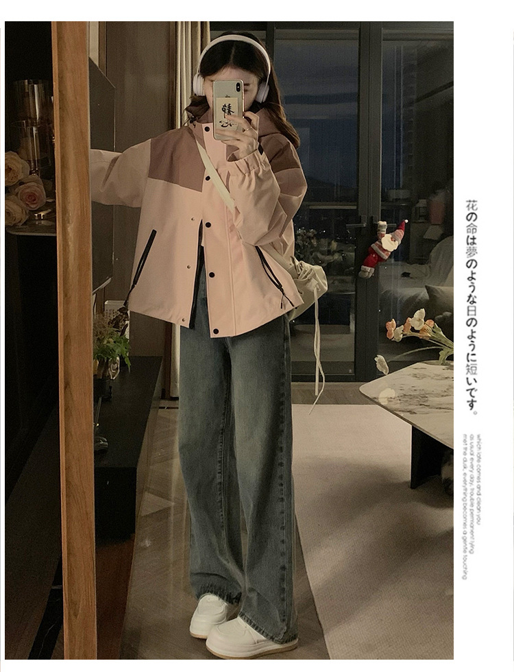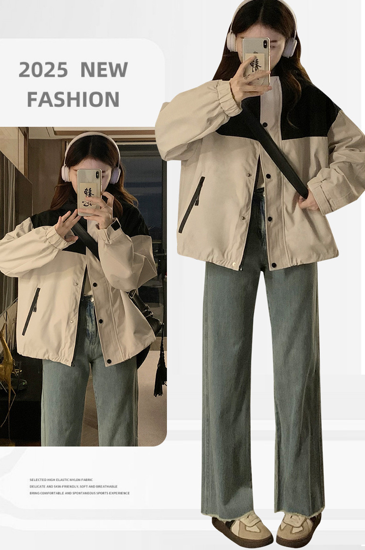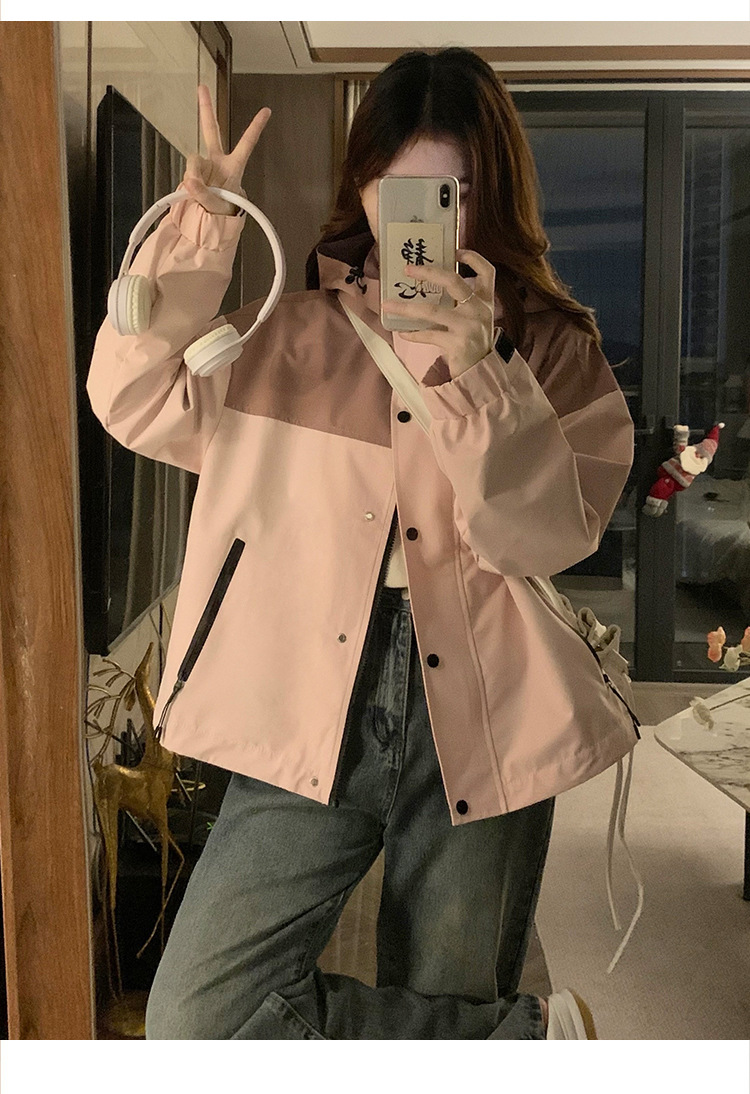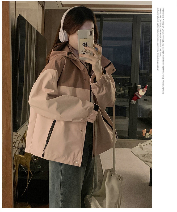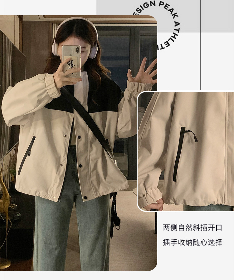 컬러 블록 후드 자켓 여성의 작은 캐주얼 작업복 재킷 탑 봄과 가을 느슨한 슬리밍 재킷스토어 가기