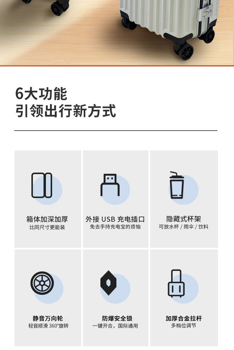 수하물 케이스 새로운 높은 가치의 다기능 신선한 트롤리 케이스 탑승 학생 케이스 여행 간단한 유니버설 휠