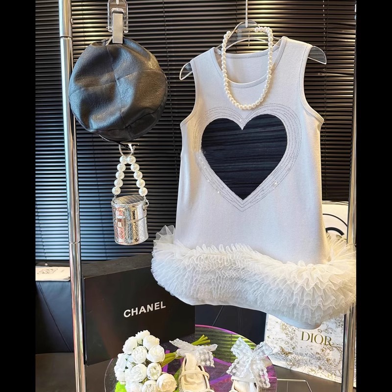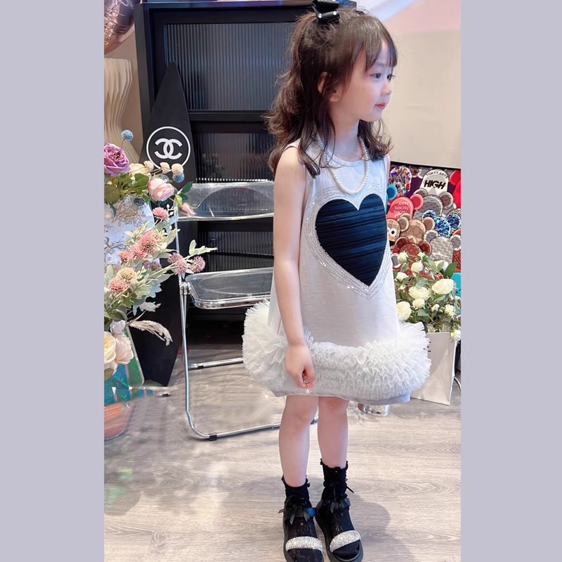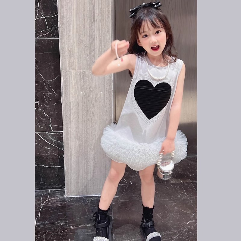 여자 치마 사랑 민소매 푹신한 치마 원피스 공주 치마 2025 여름 새로운 대외 무역 아동복 공급