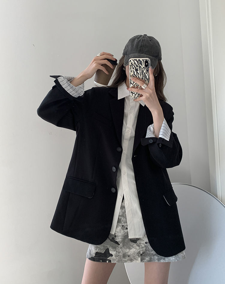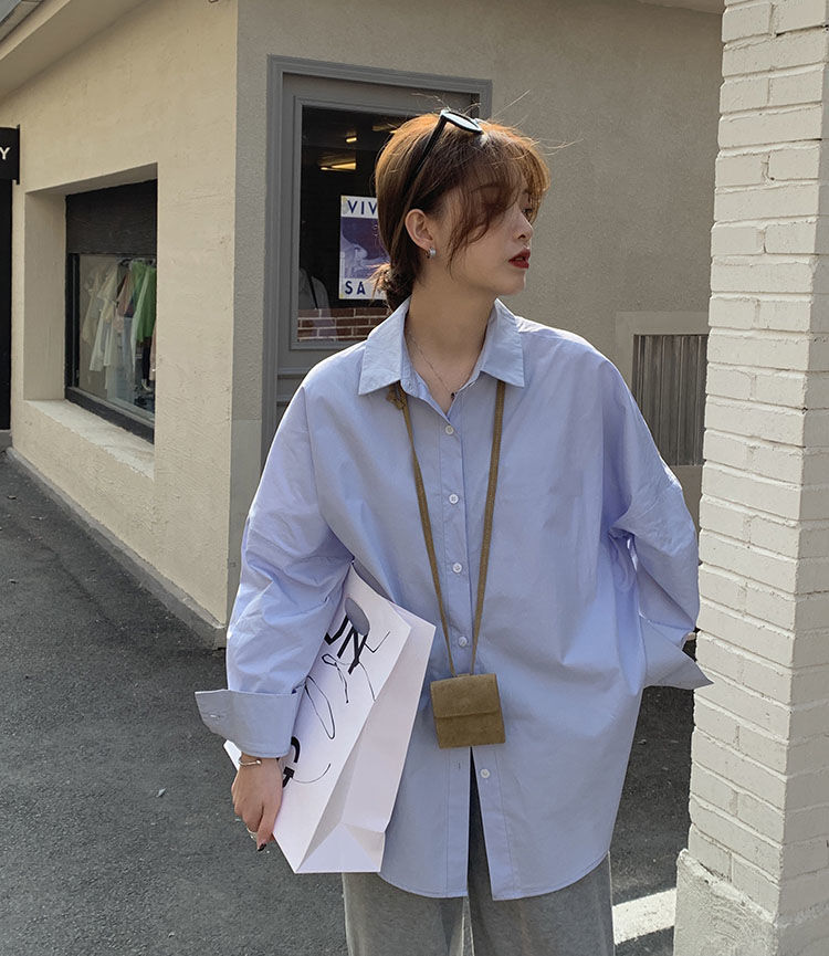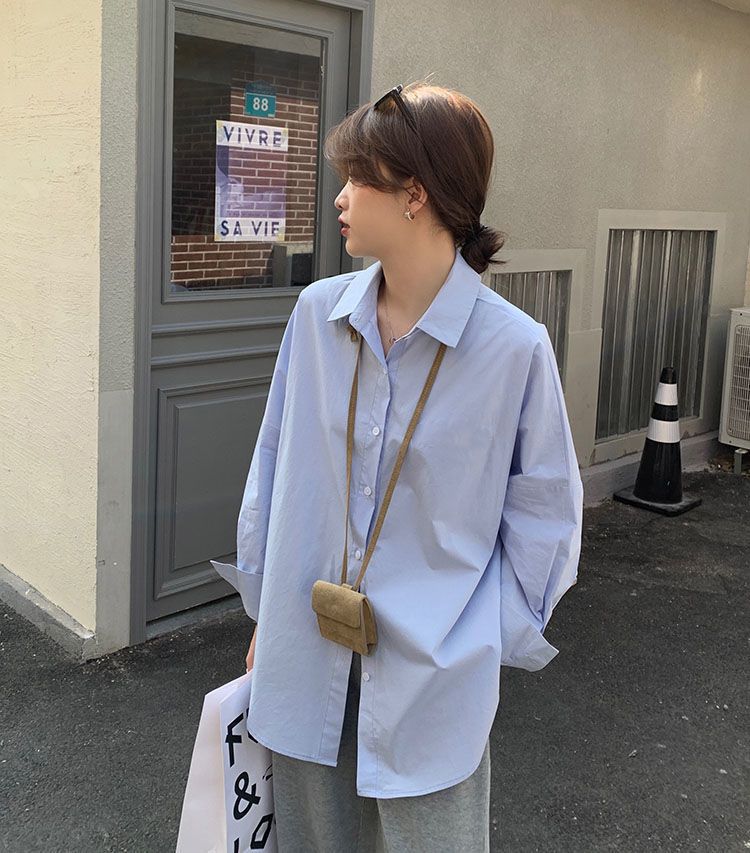 봄과 가을 올 매치 패션 블루 셔츠 여성 긴팔 한국식 루즈 심플 화이트 셔츠 탑스토어 가기