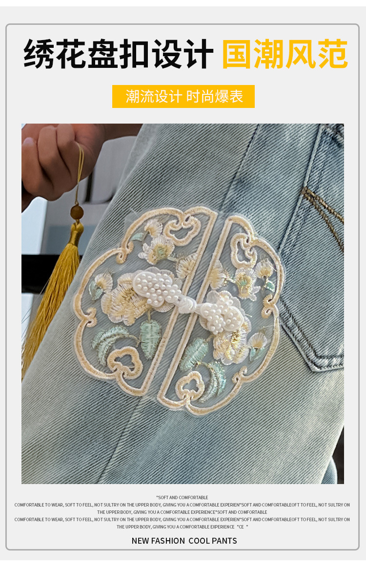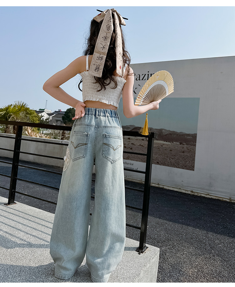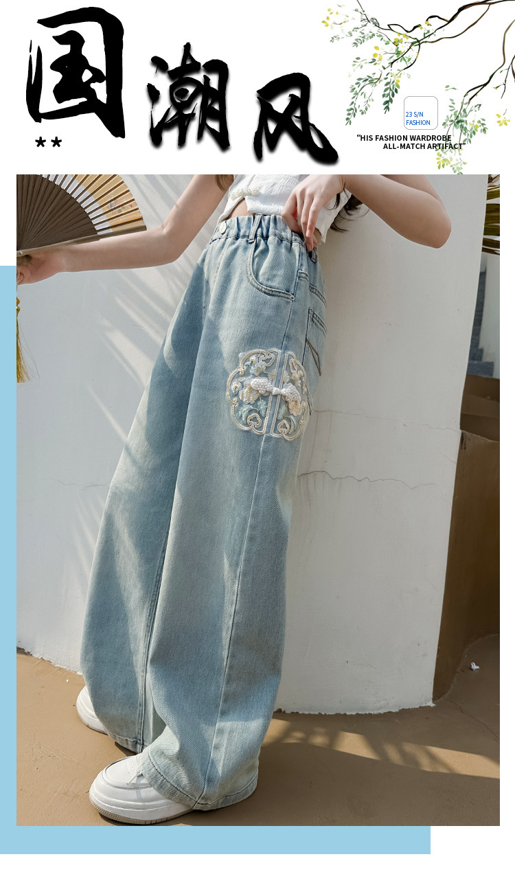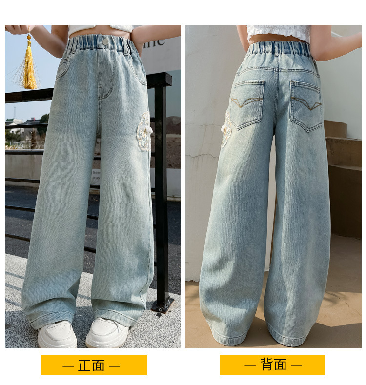 소녀 바지 봄과 가을 2024 새로운 가을 원피스 소녀 Guofeng 자수 직선 다리 바지 어린이 청바지스토어 가기