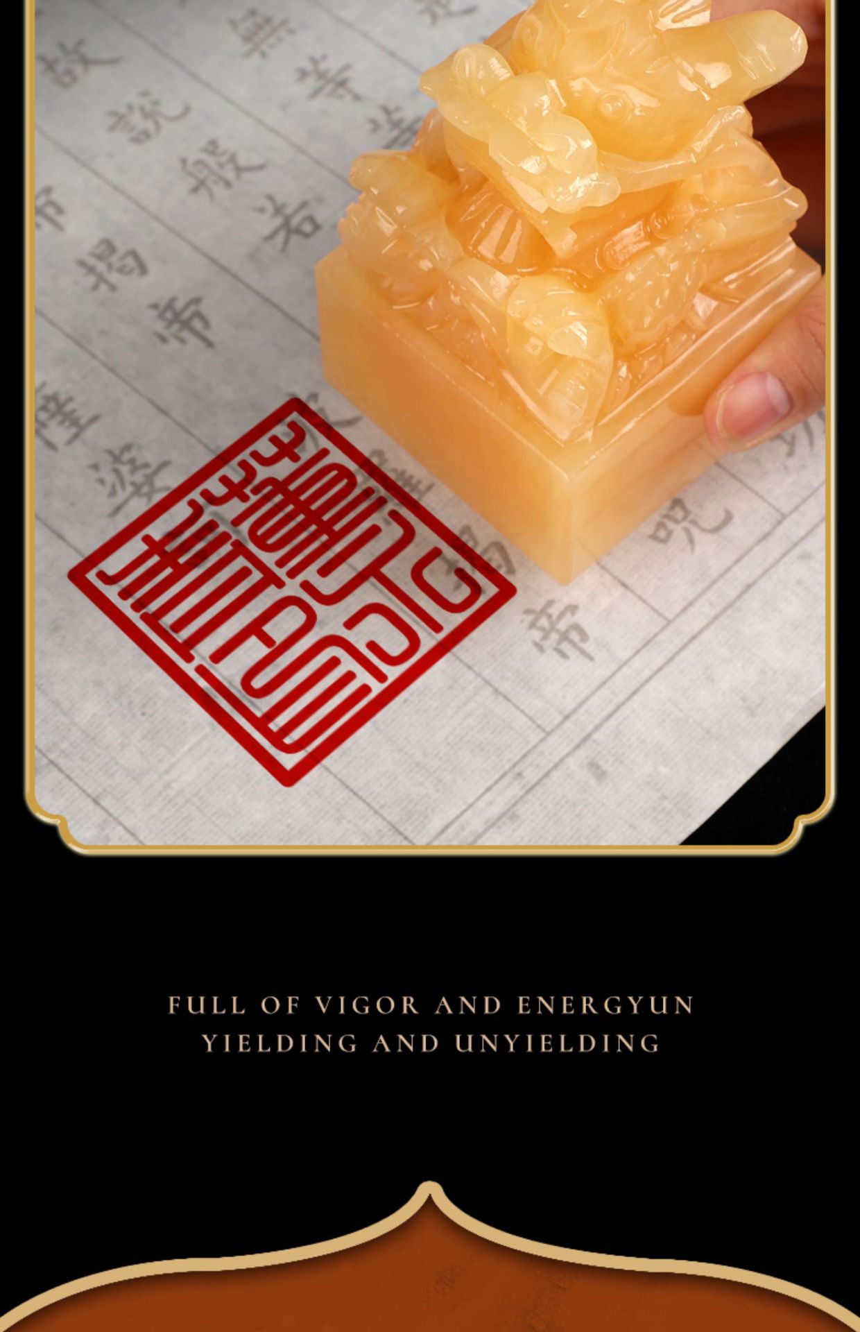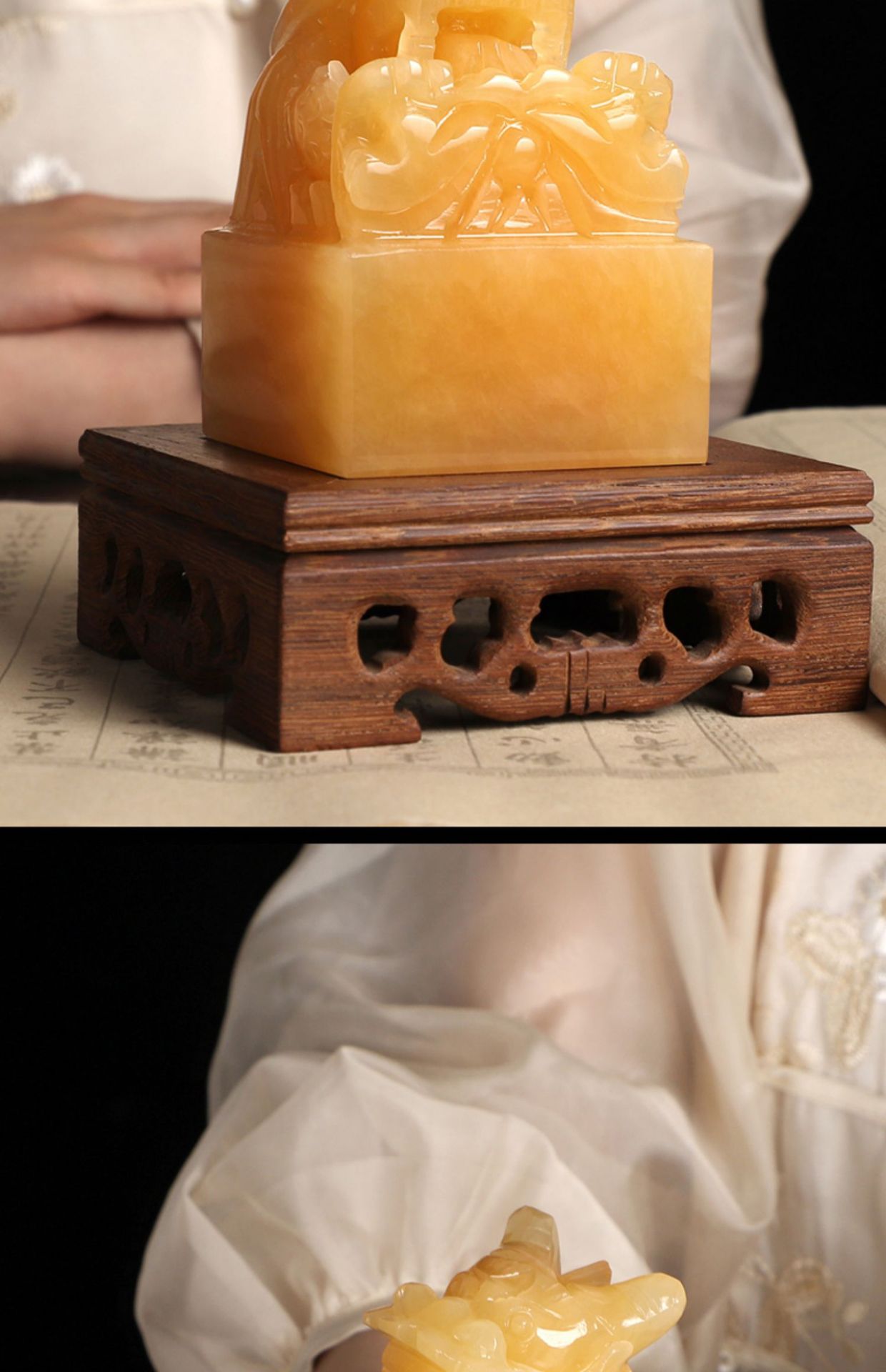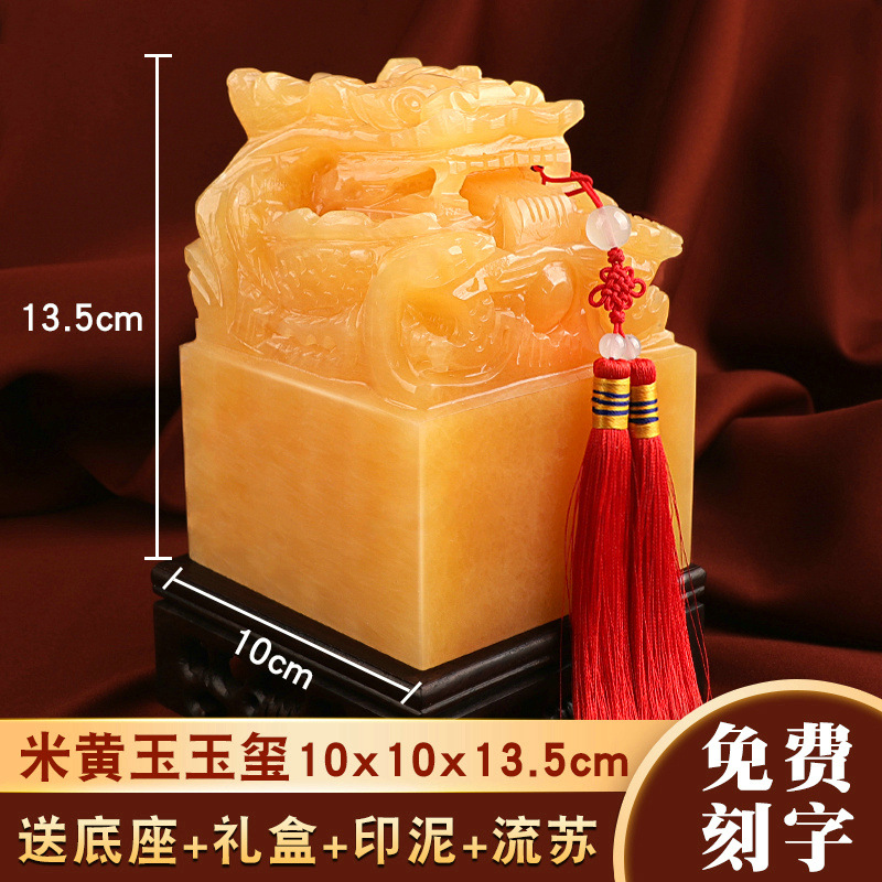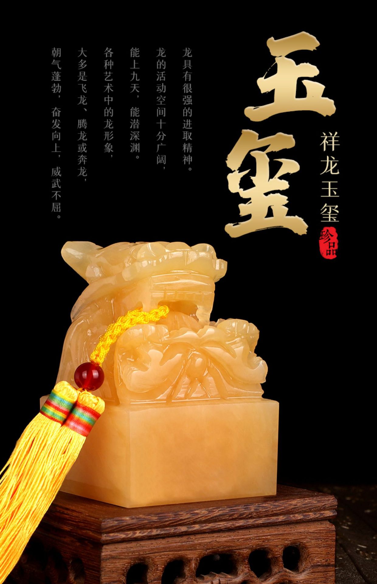 Topaz Kowloon Jade Seal 장식품 큰 드래곤 씰 조각 베이지 Xianglong 제이드 씰 오피스 테이블스토어 가기
