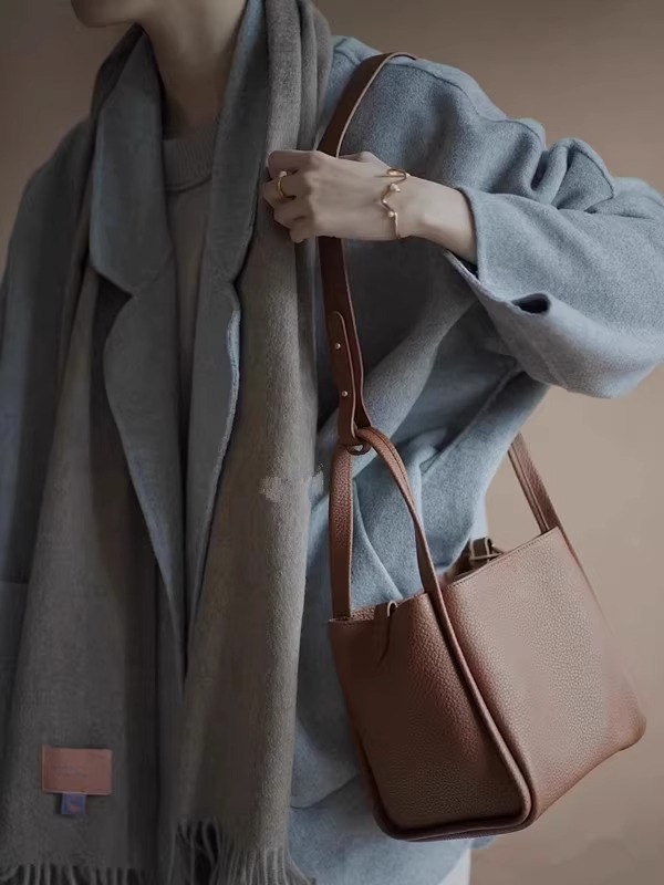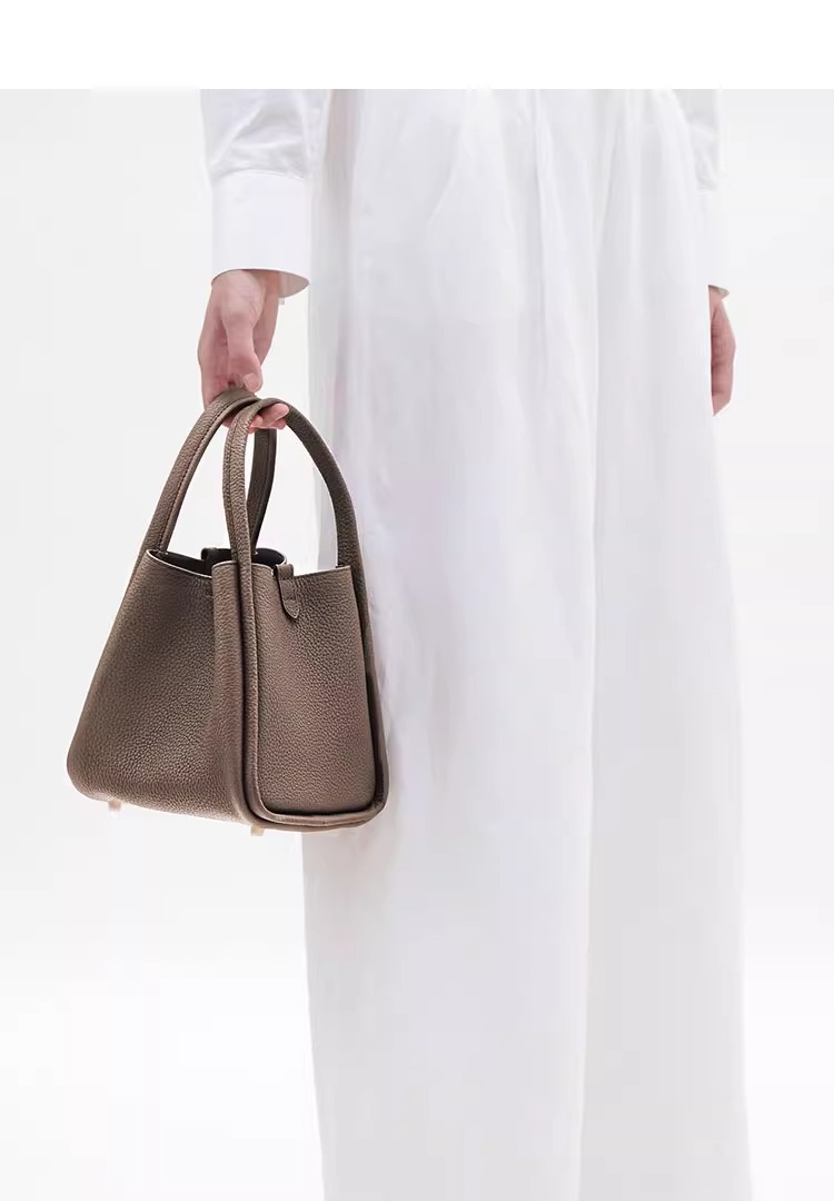 중간 야채 바구니 시리즈 여성용 가방 헤드 레이어 Cowhide 유행 여성 가방 대용량 어깨 가방 크로스 바디 휴대용 버킷 백