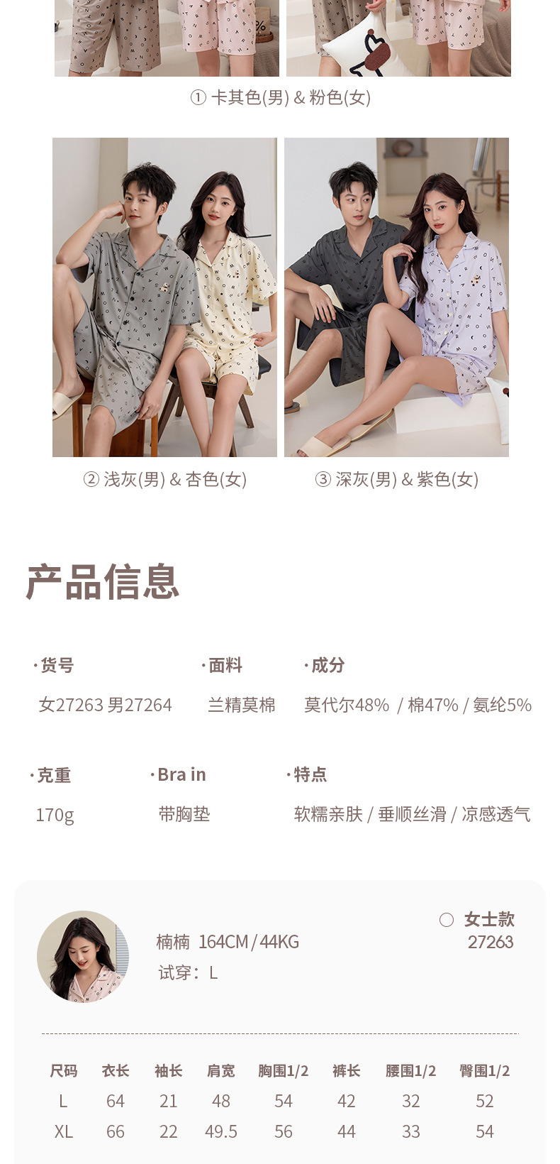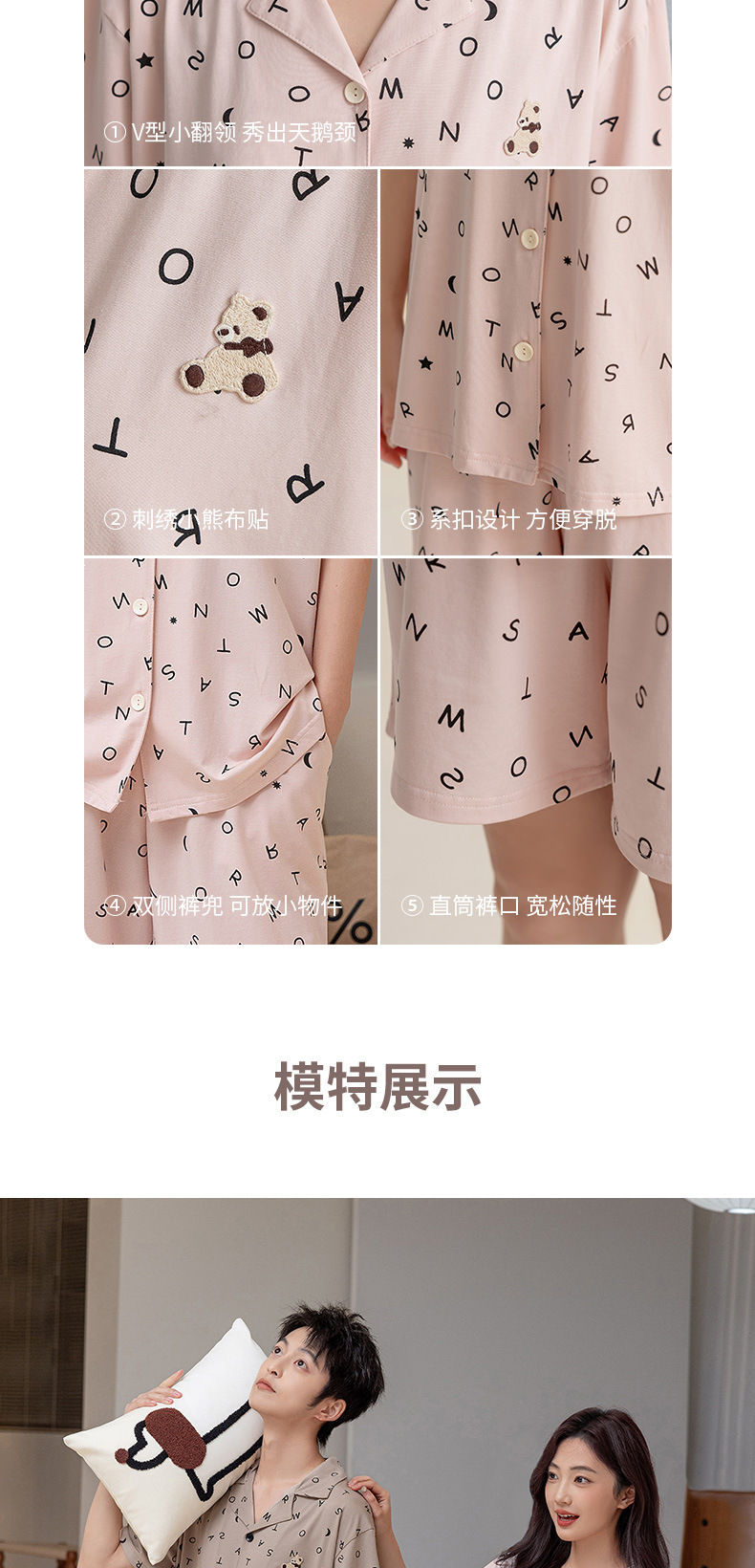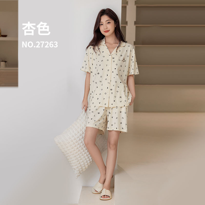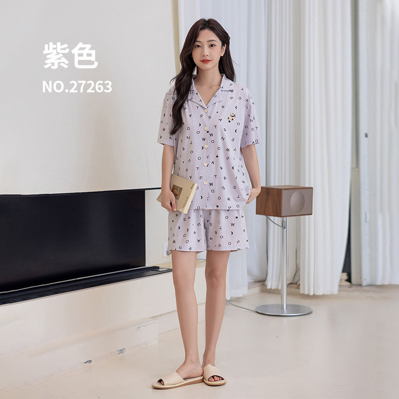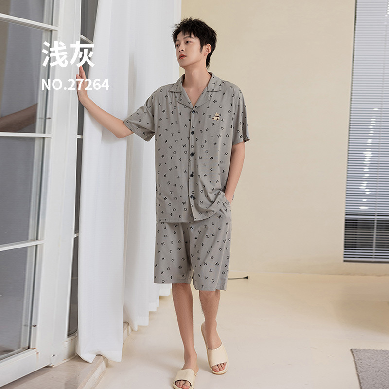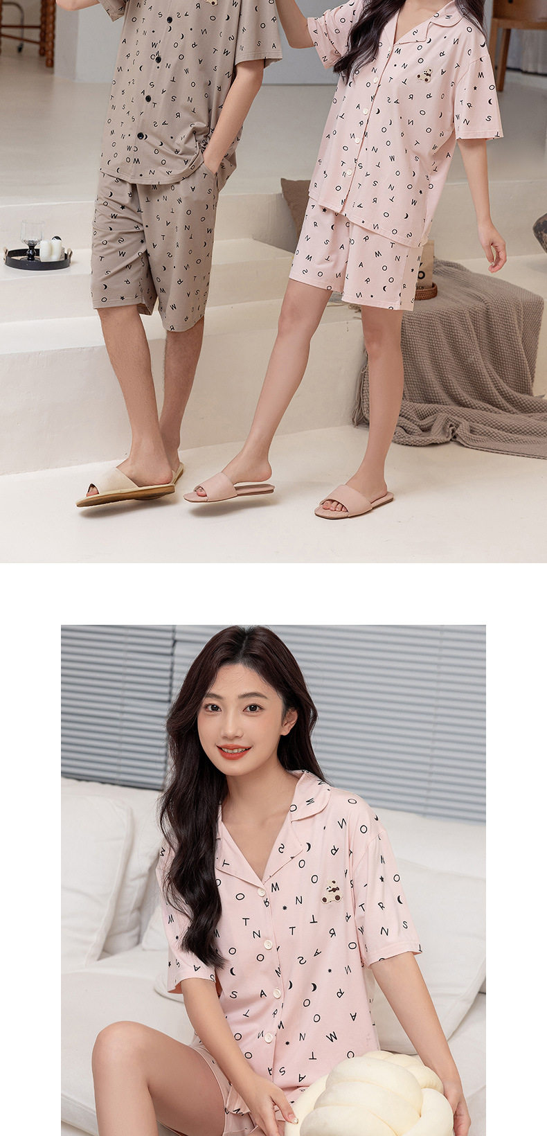 란징 모달 코튼 반팔 옷깃 캐주얼 커플 잠옷 인쇄 커플 원피스 수 놓은 얇은 가정 옷
