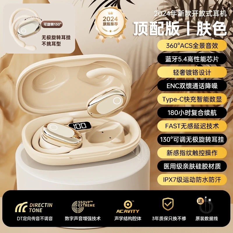 • 피부색 [파노라마 서라운드 사운드 + ENC 4마이크 지능형 통화 소음 감소 +180 ° 회전 + 매우 긴 배터리 수명]