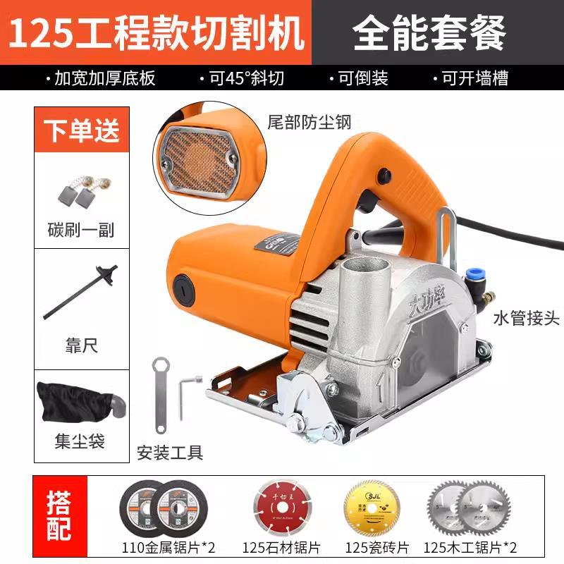 다기능 먼지가없는 대리석 기계 타일 절단 기계 목공 휴대용 톱 슬롯 치가없는 돌 전기 톱 청소 기계