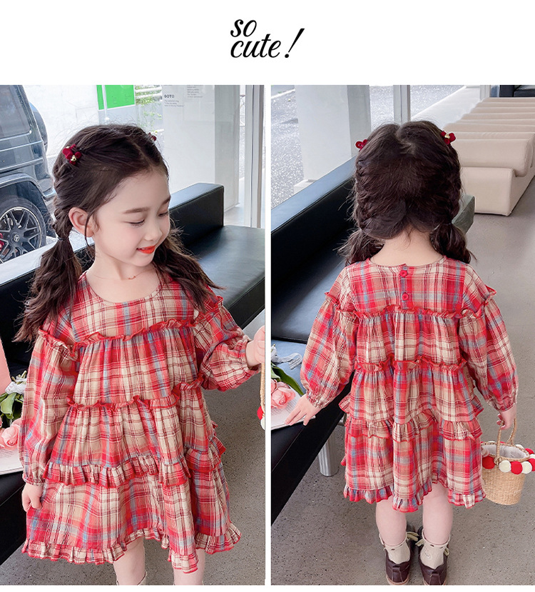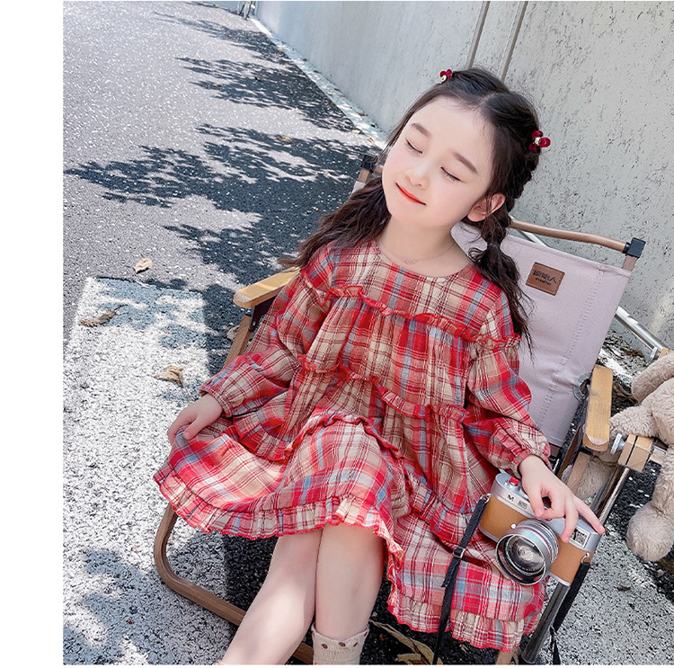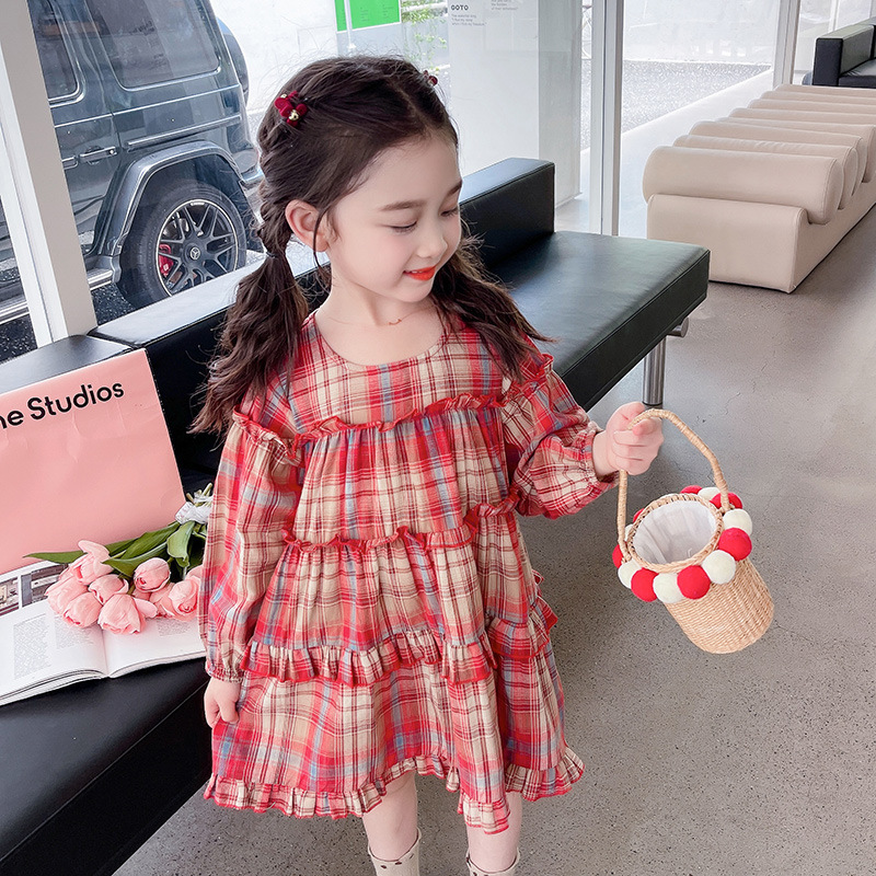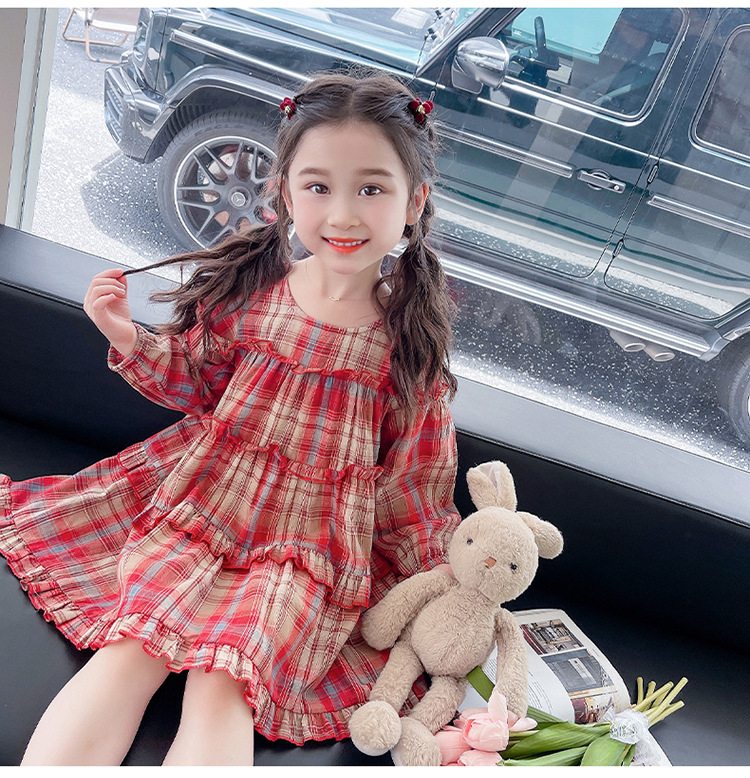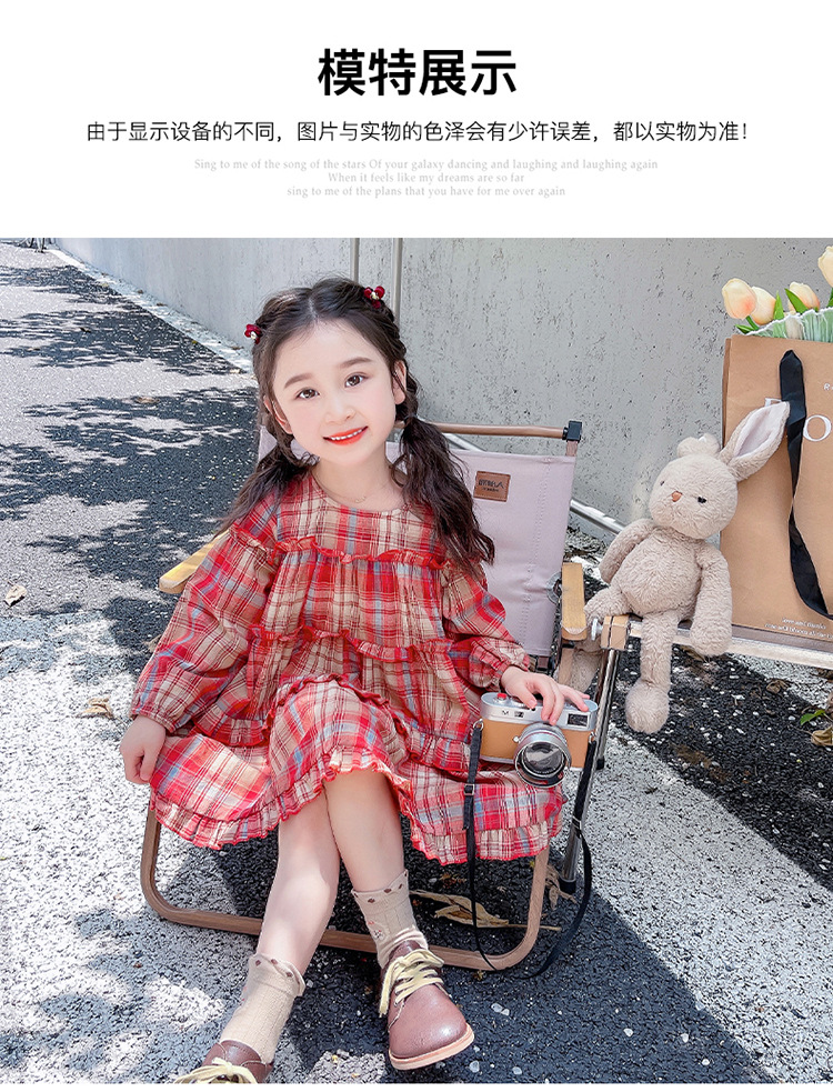 소녀 격자 무늬 한국 스타일 원피스 봄 원피스 2025 새로운 스타일 긴 소매 원피스 어린이 봄과 가을 공주 원피스스토어 가기