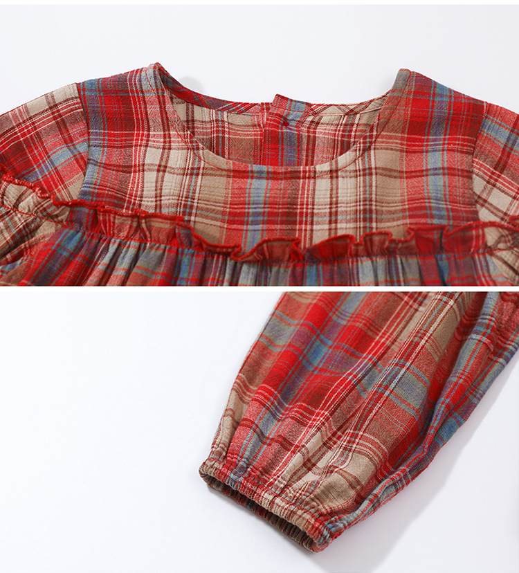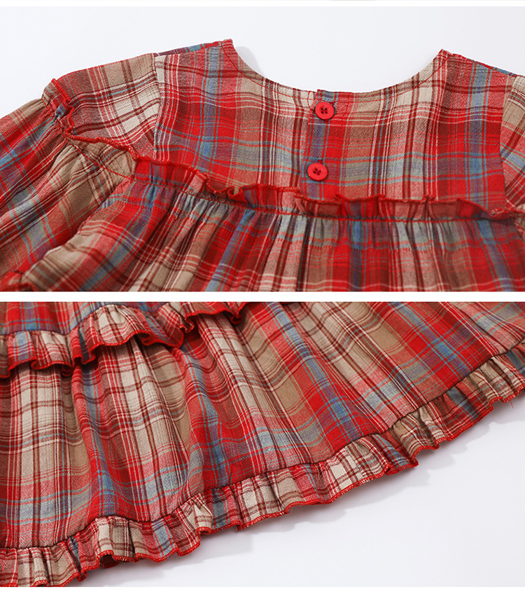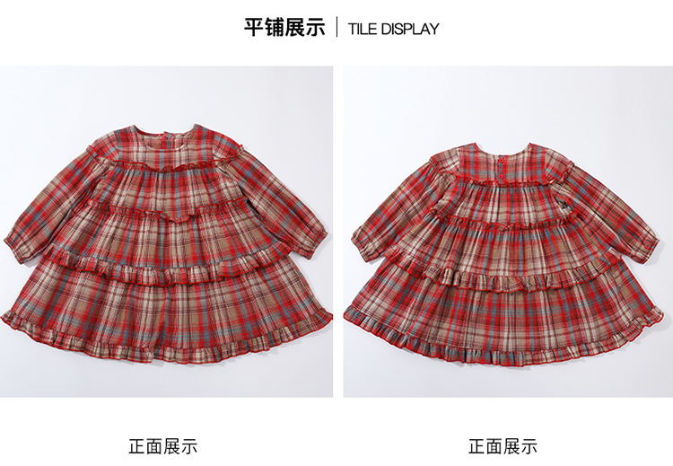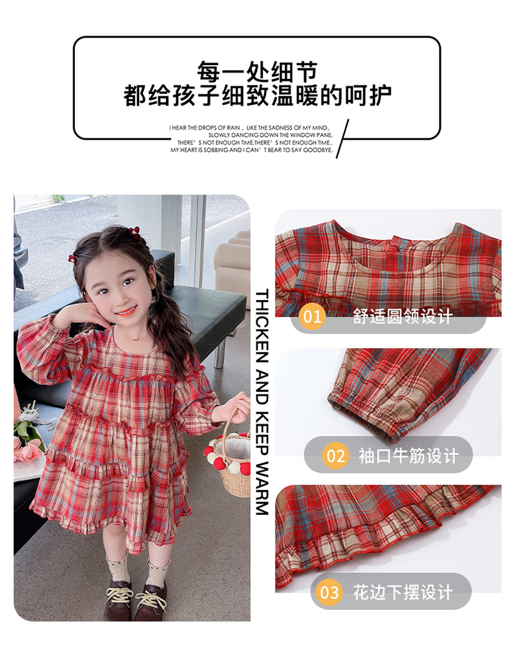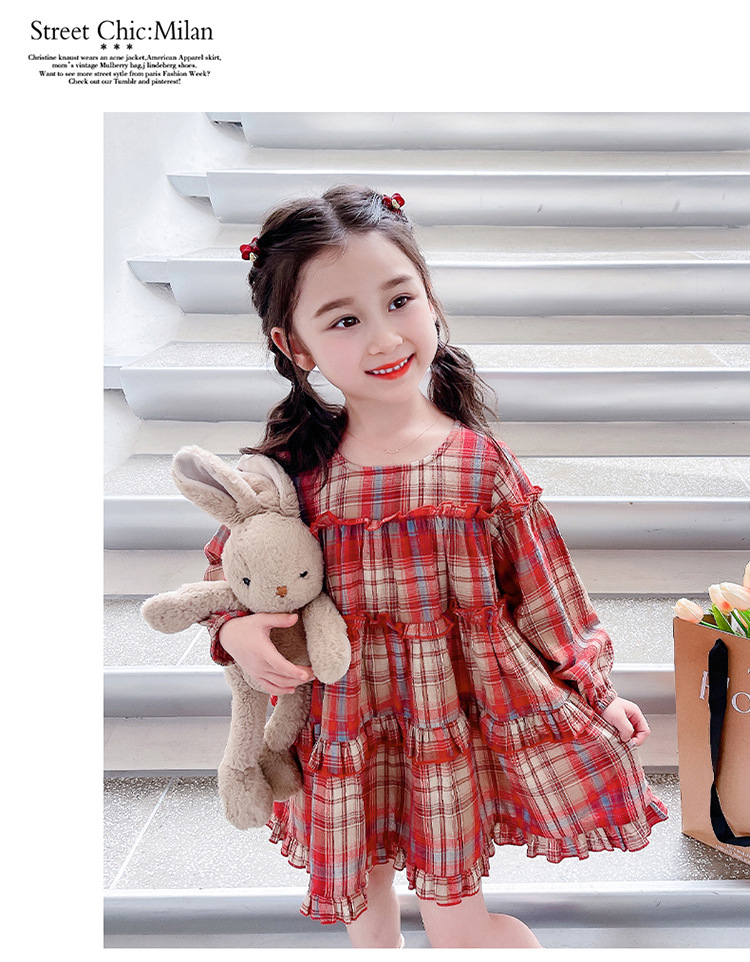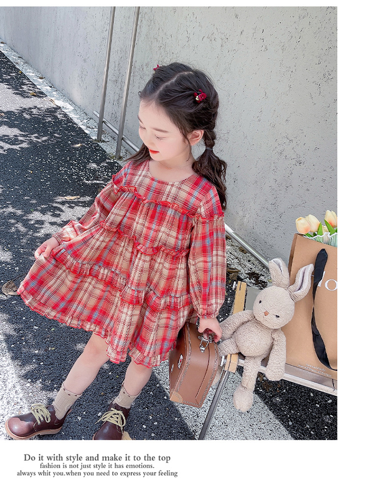 소녀 격자 무늬 한국 스타일 원피스 봄 원피스 2025 새로운 스타일 긴 소매 원피스 어린이 봄과 가을 공주 원피스스토어 가기