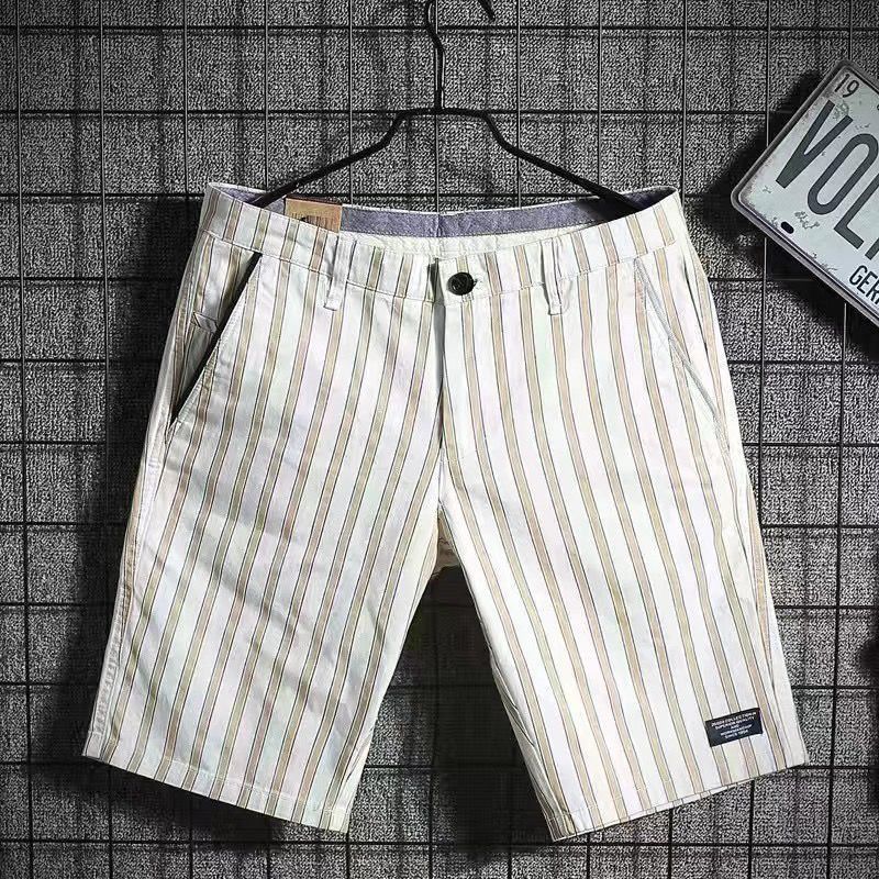 여름 남자 5 점 반바지 5 점 바지 얇은 트렌디 브랜드 한국식 수직 줄무늬 캐주얼 반바지 및 바지 남자 비치 바지
