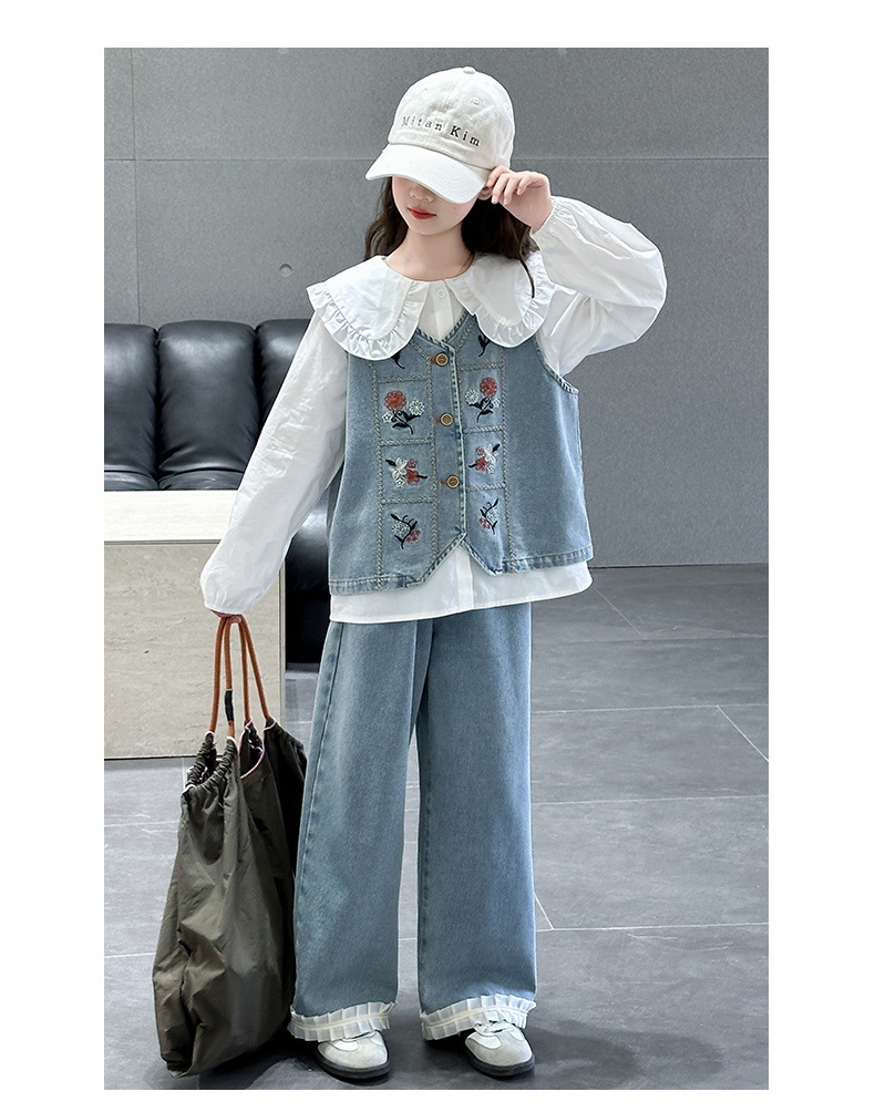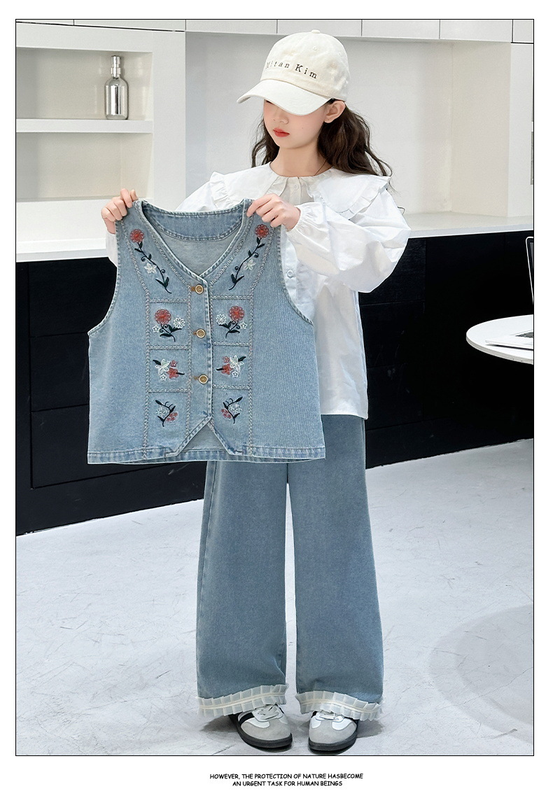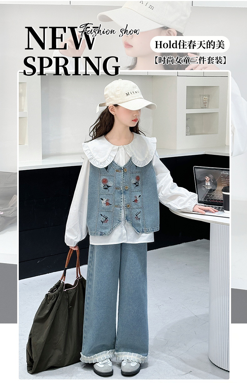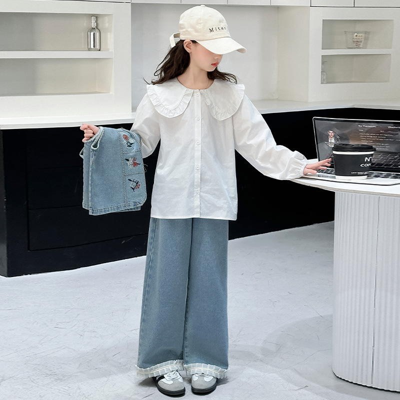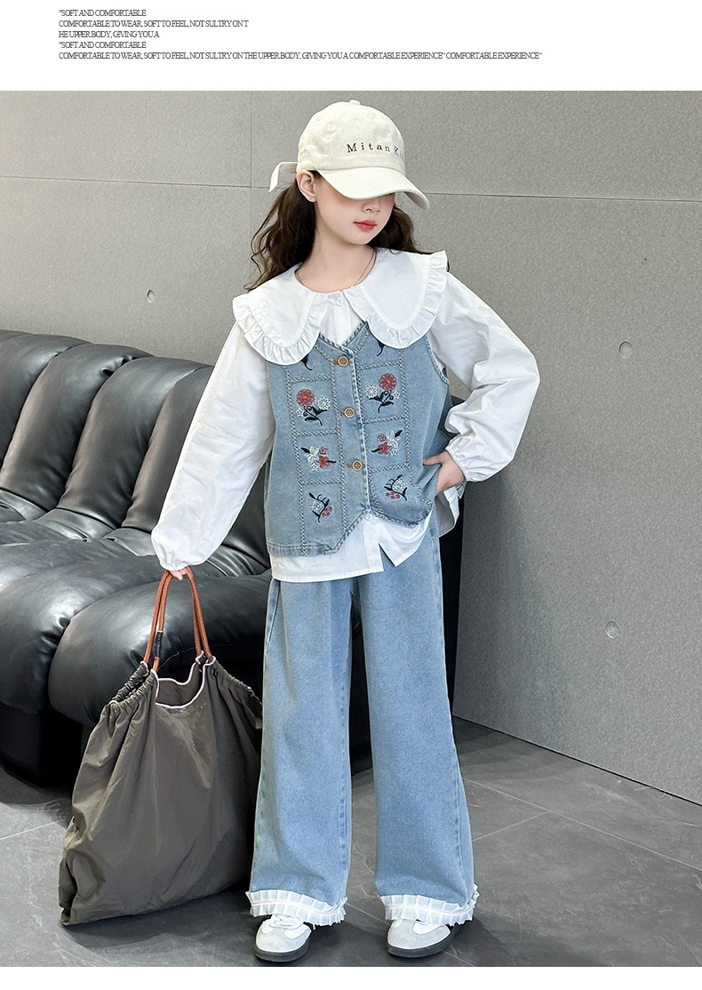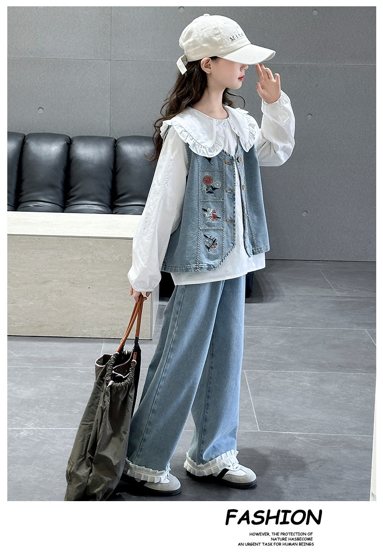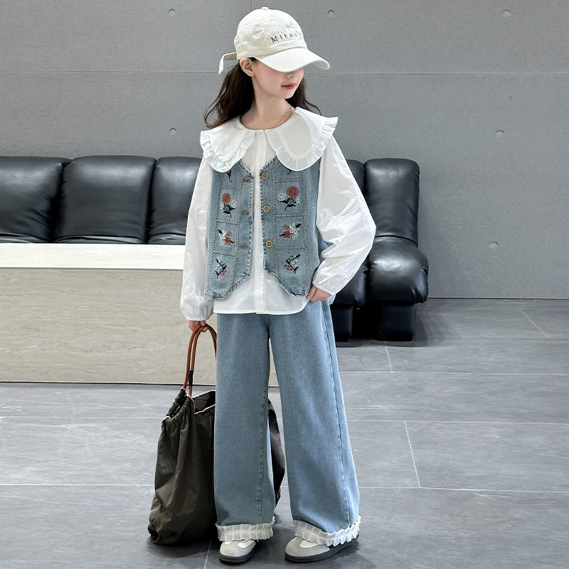 소녀들의 가을 한국식 3 피스 어린이 2025 년 초가을 새 유행 자켓 바지 셔츠 바지 데님 세트