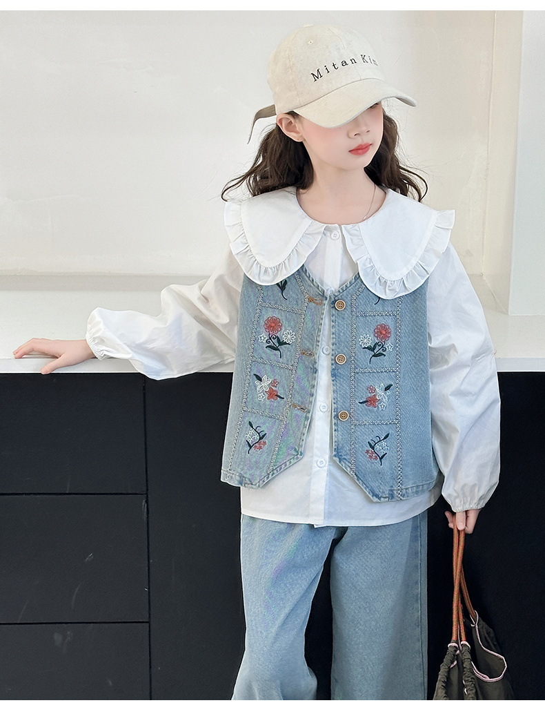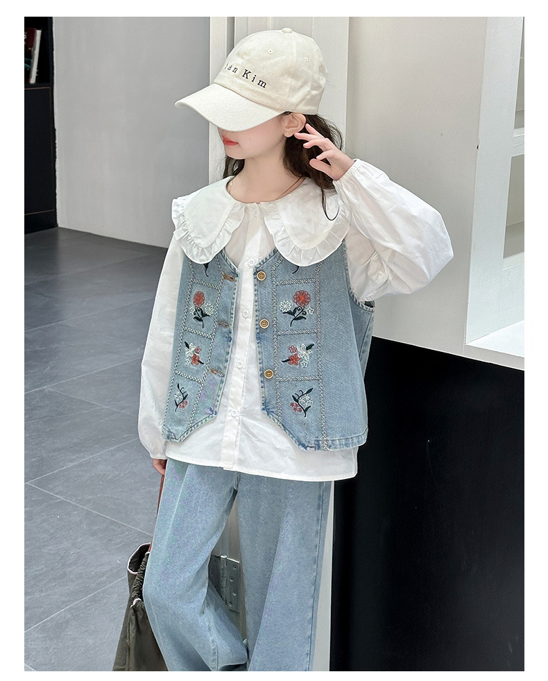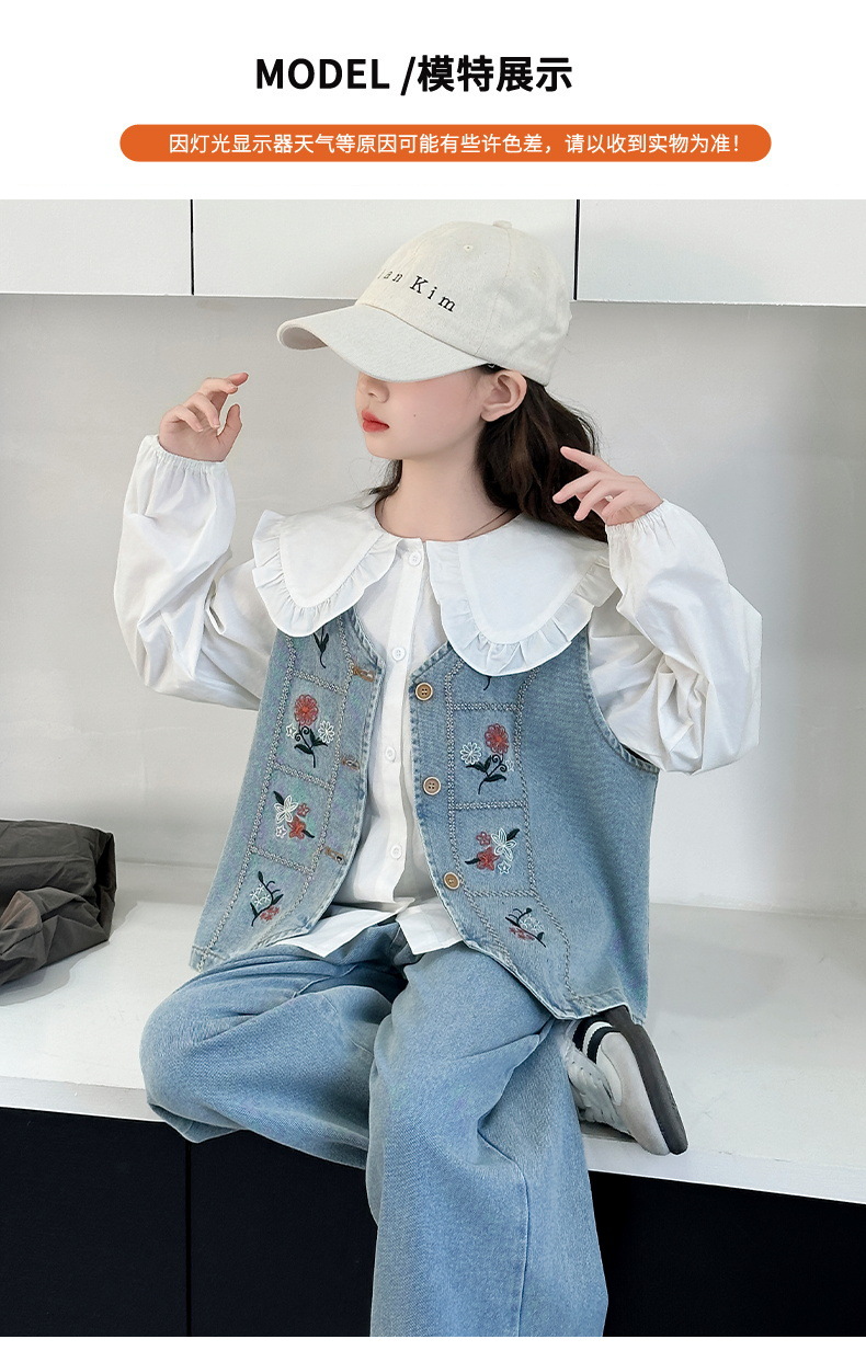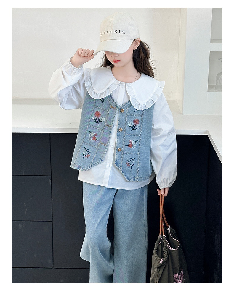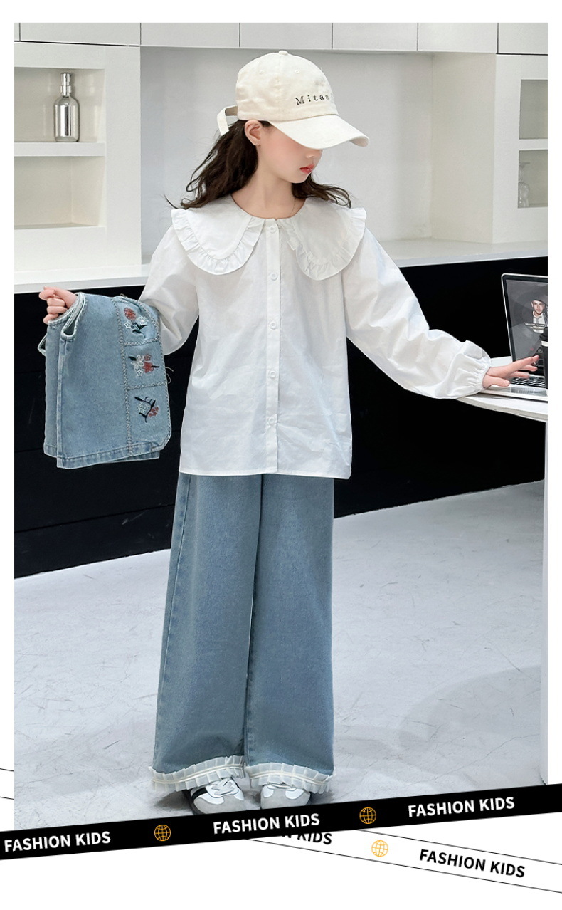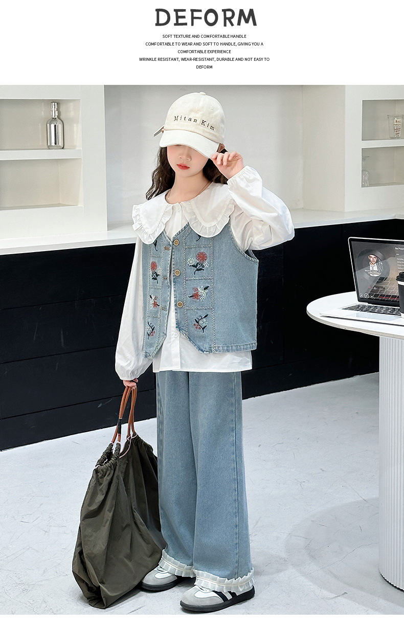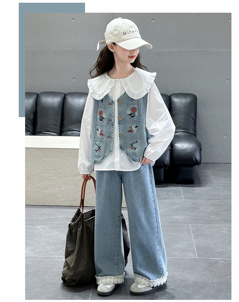 소녀들의 가을 한국식 3 피스 어린이 2025 년 초가을 새 유행 자켓 바지 셔츠 바지 데님 세트