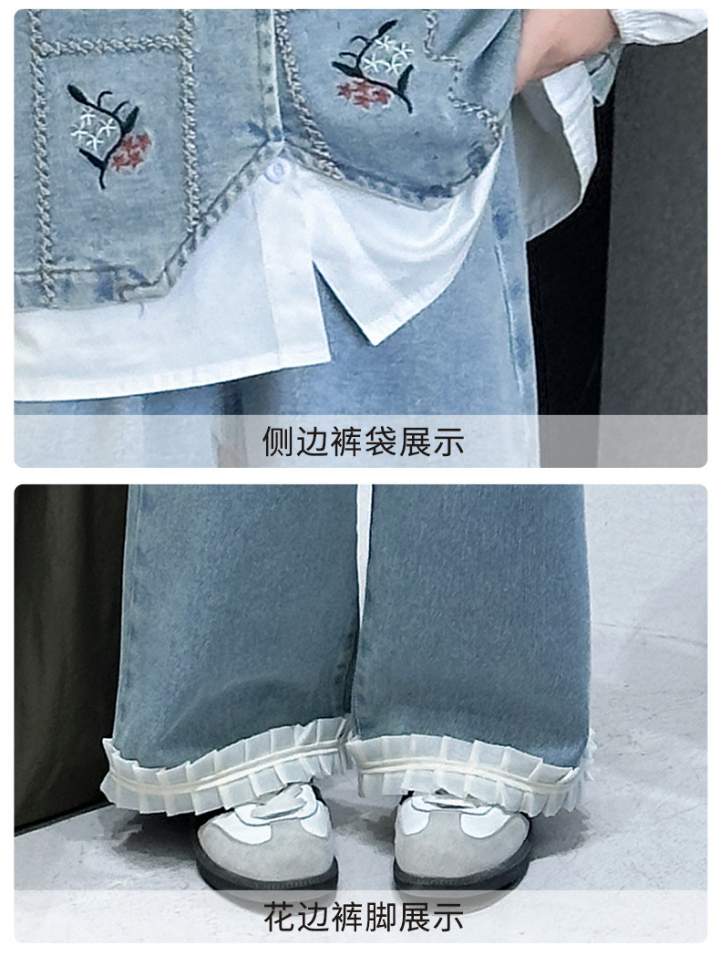 소녀들의 가을 한국식 3 피스 어린이 2025 년 초가을 새 유행 자켓 바지 셔츠 바지 데님 세트스토어 가기
