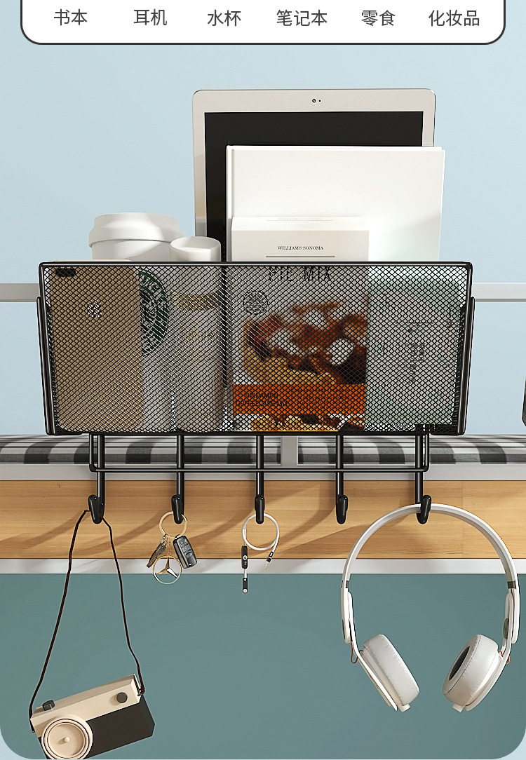 벽걸이형 수납 바구니 학생 기숙사 침대 옆/침대 머리맡 걸이형 바구니 프레임 생산/수납 선반 후크형 수납 선반스토어 가기