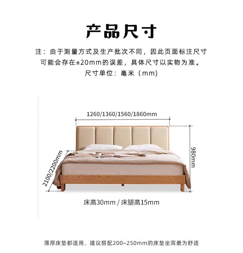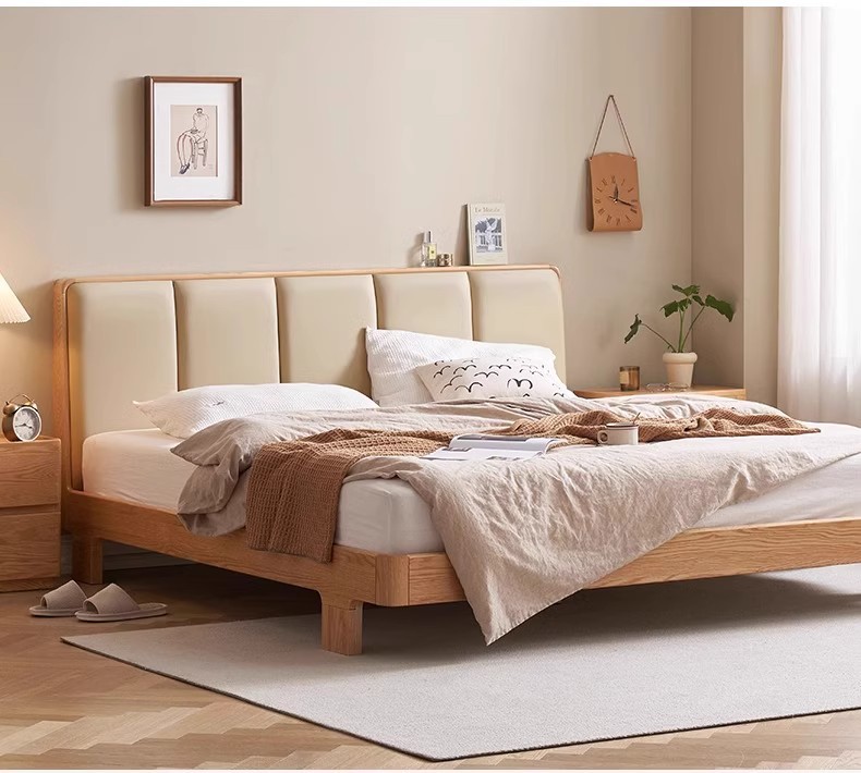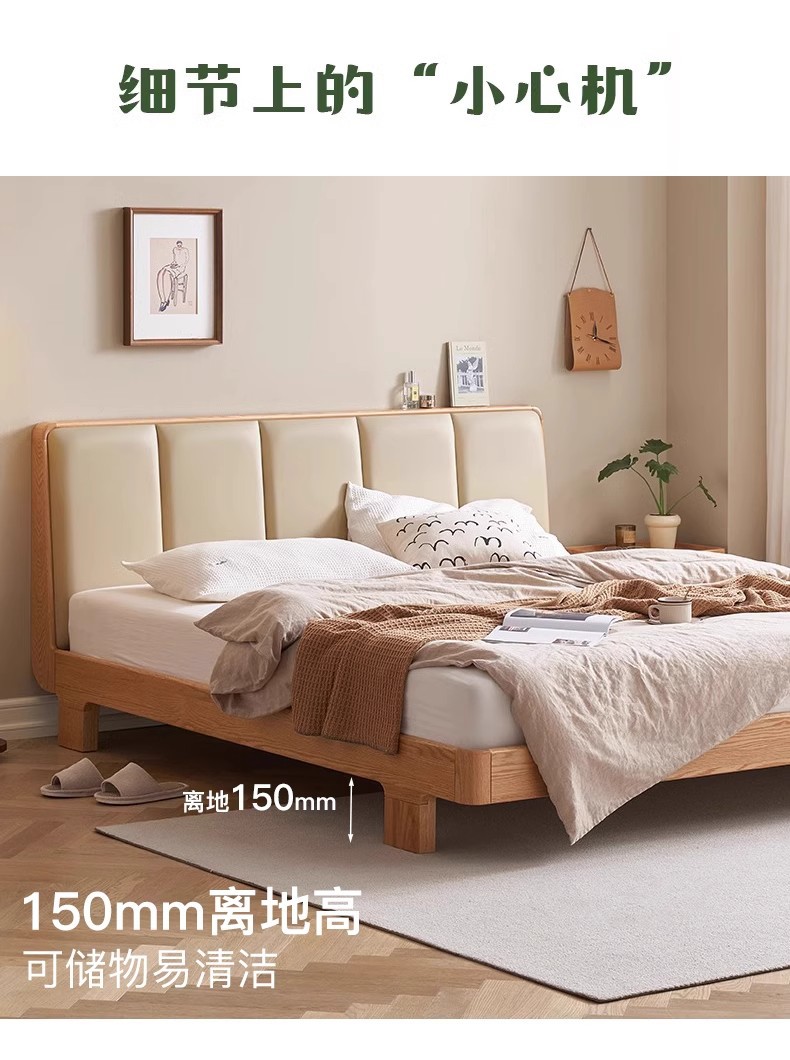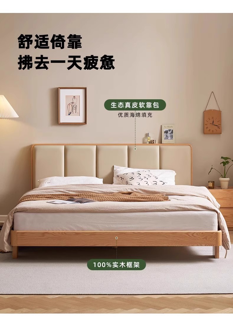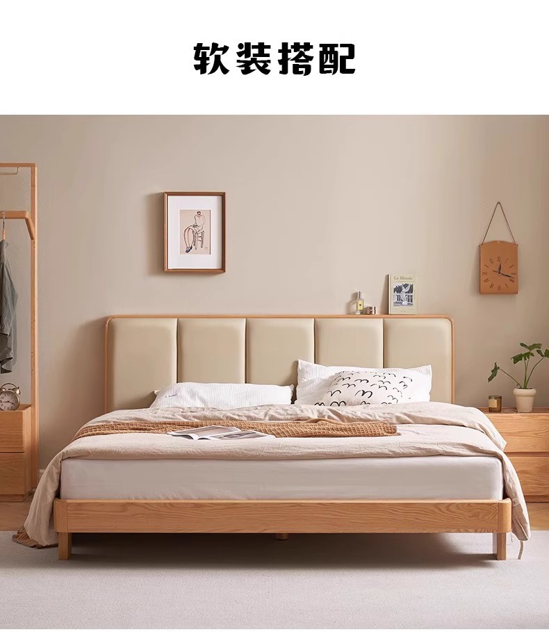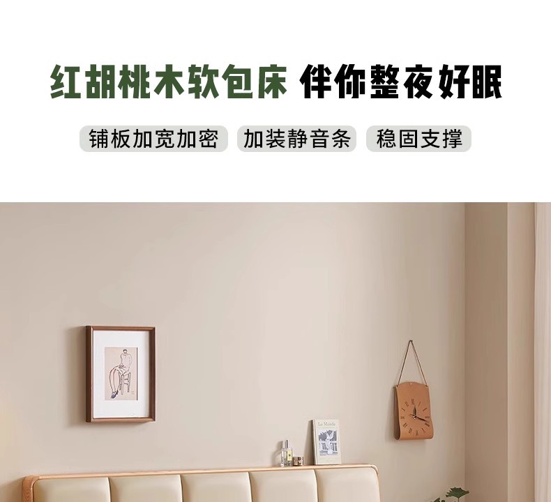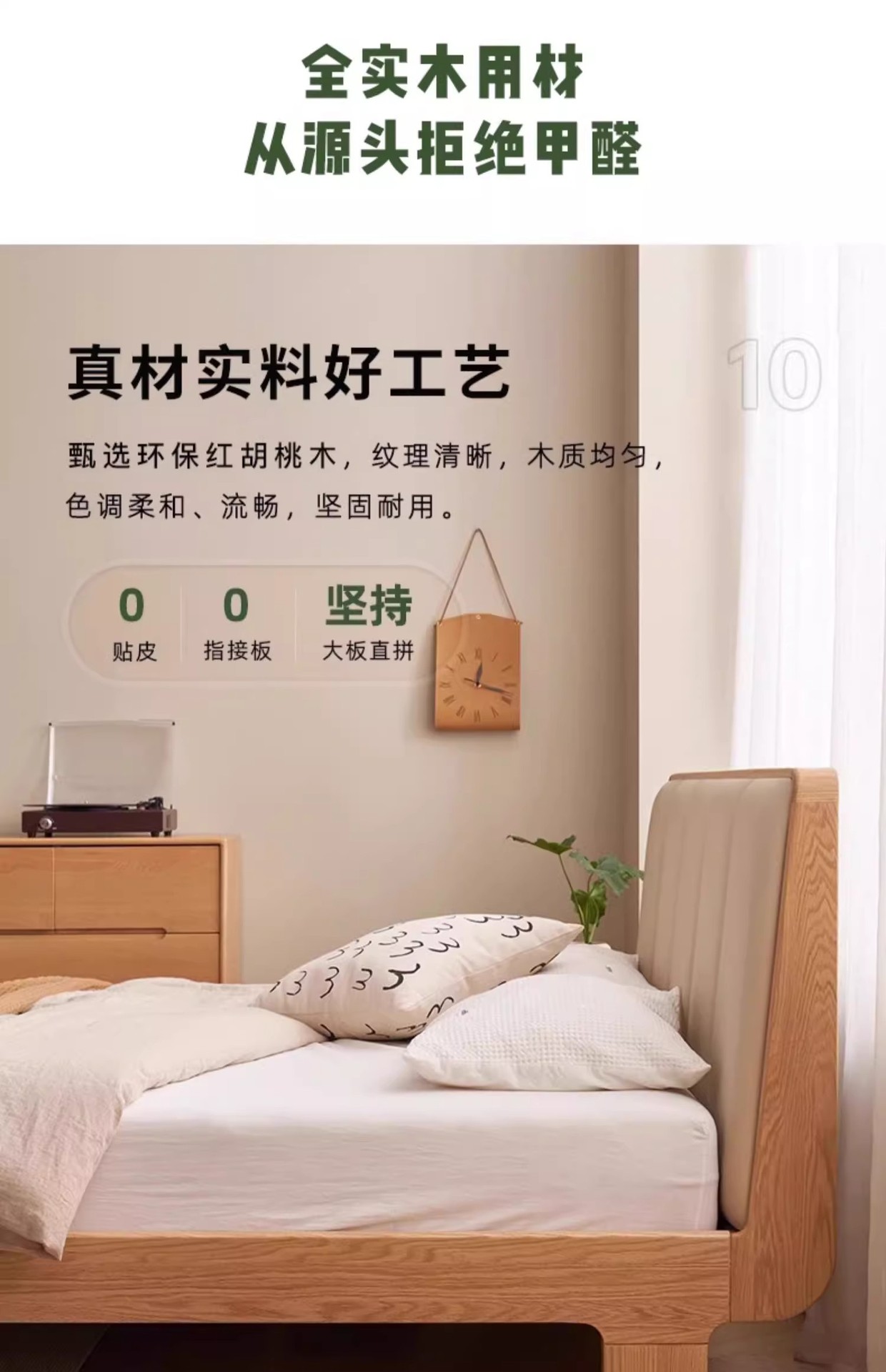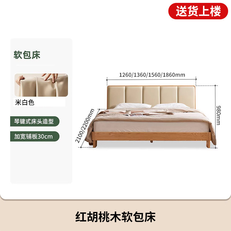 새로운 호두 솔리드 우드 침대 1.8 미터 더블 침대 렌탈 룸 1.5 미터 싱글 침대 가죽 소프트 백 솔리드 우드 가구스토어 가기