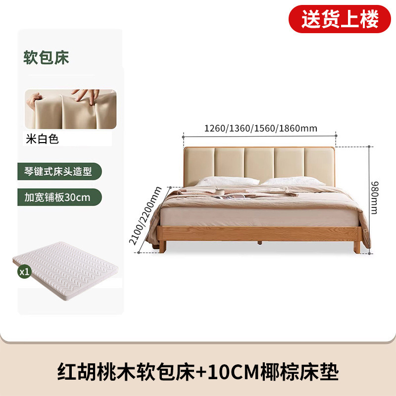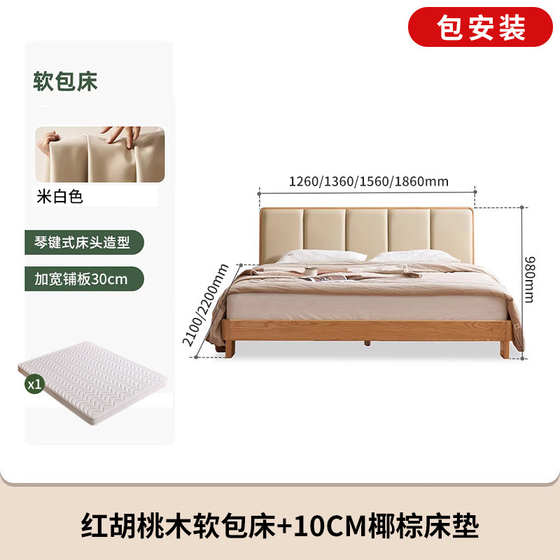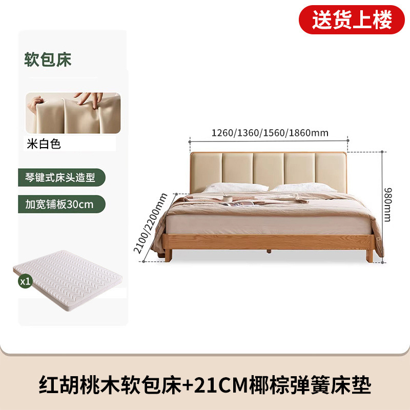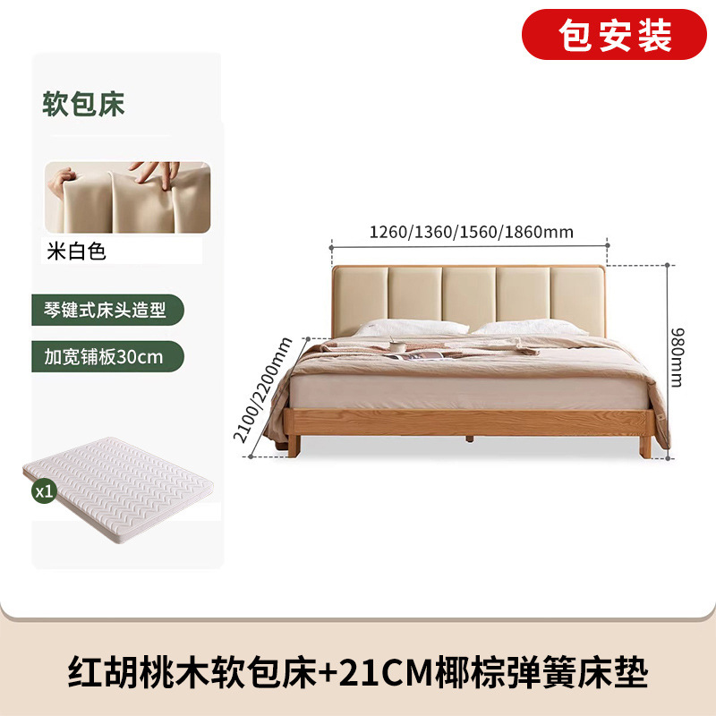 • 레드월넛 소프트커버 침대 + 21cm 코코넛팜 스프링 매트리스 (위층포함 + 설치)