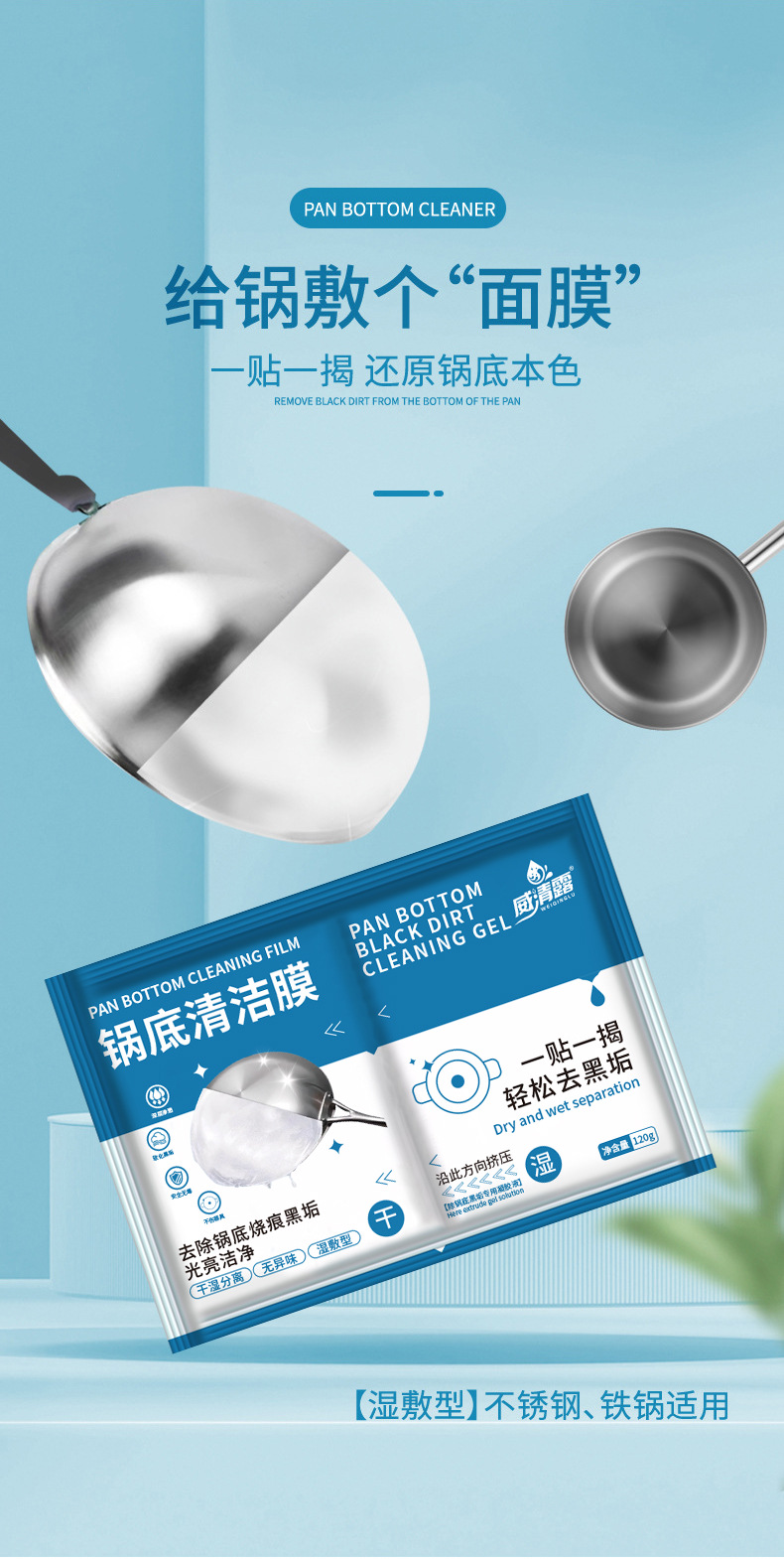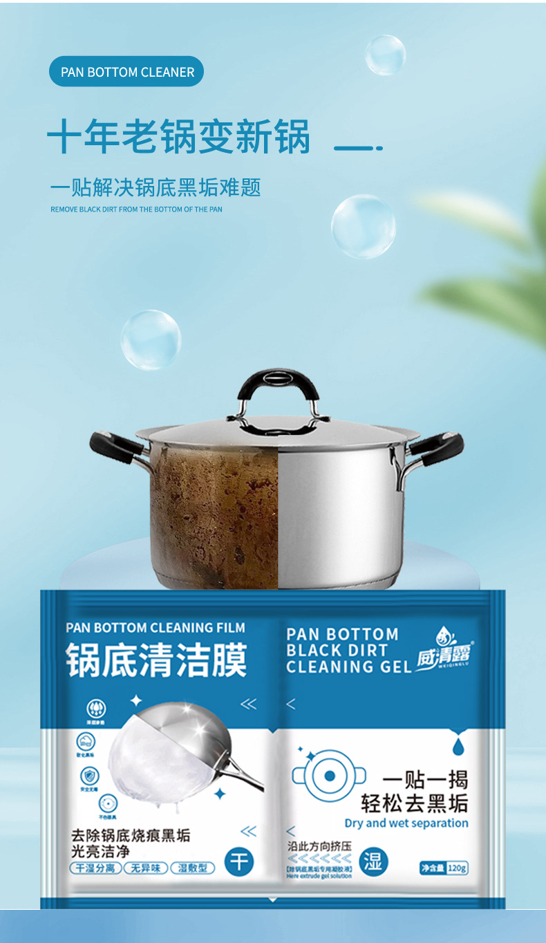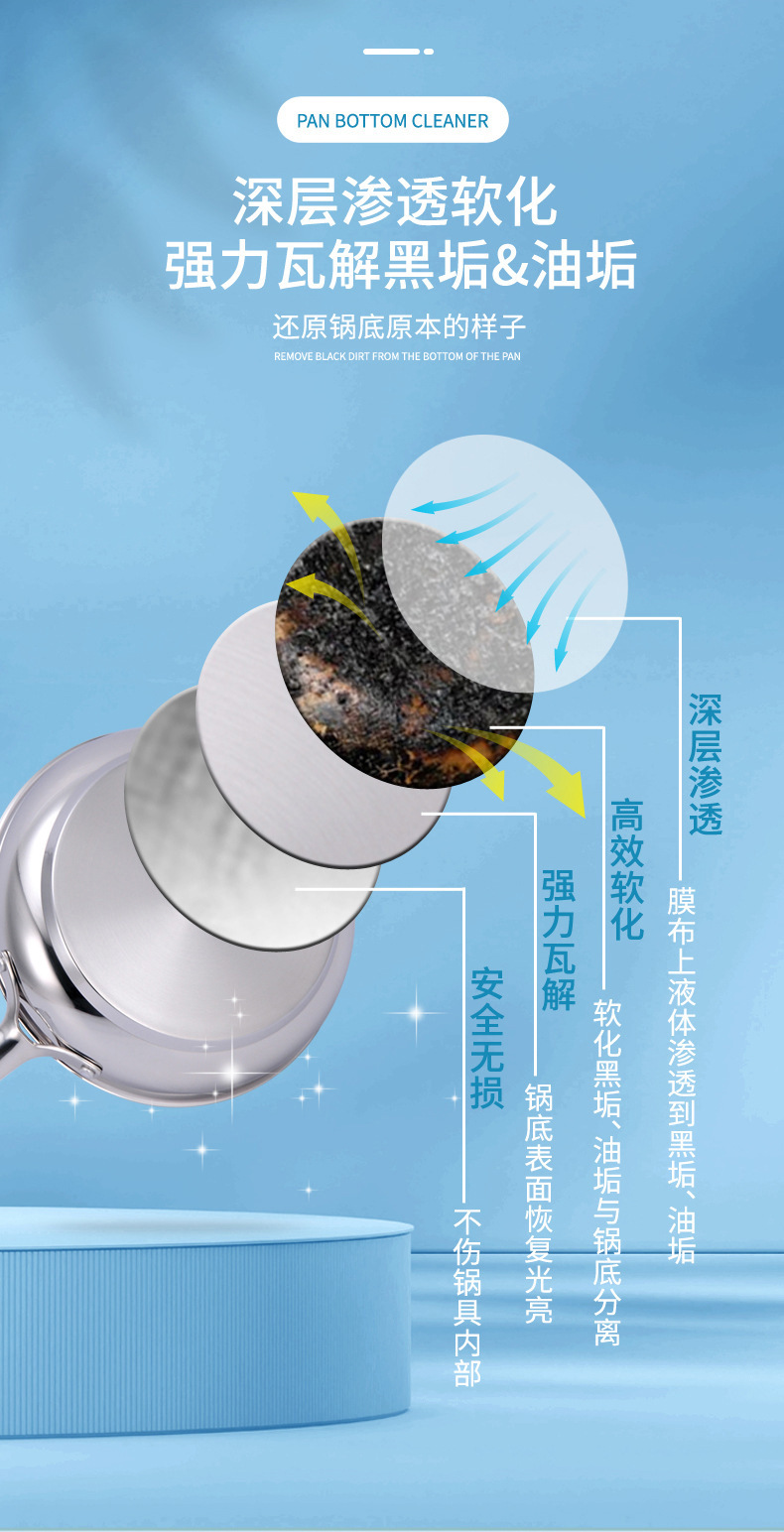 주방 냄비 바닥 청소 필름 검은 먼지 청소 에이전트 강력한 기름 제거 냄비 바닥 브러시 철 냄비 붙여 넣기 절망적 인 유물 세척