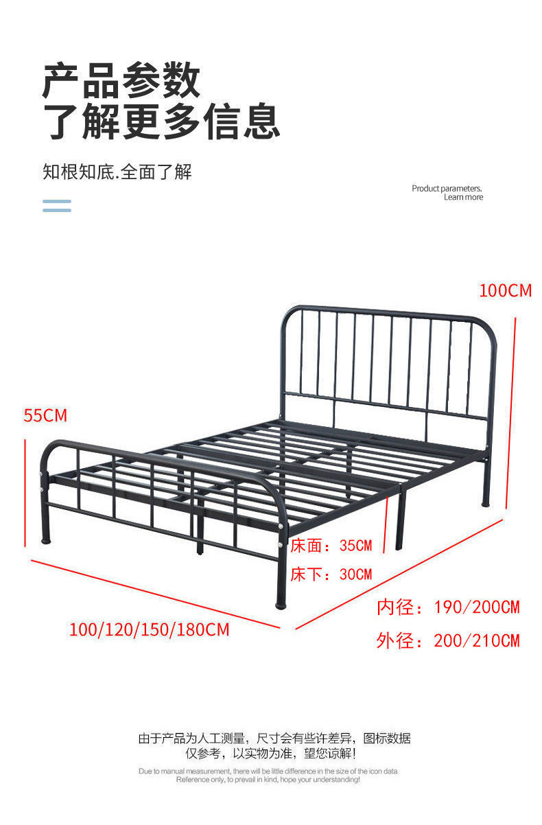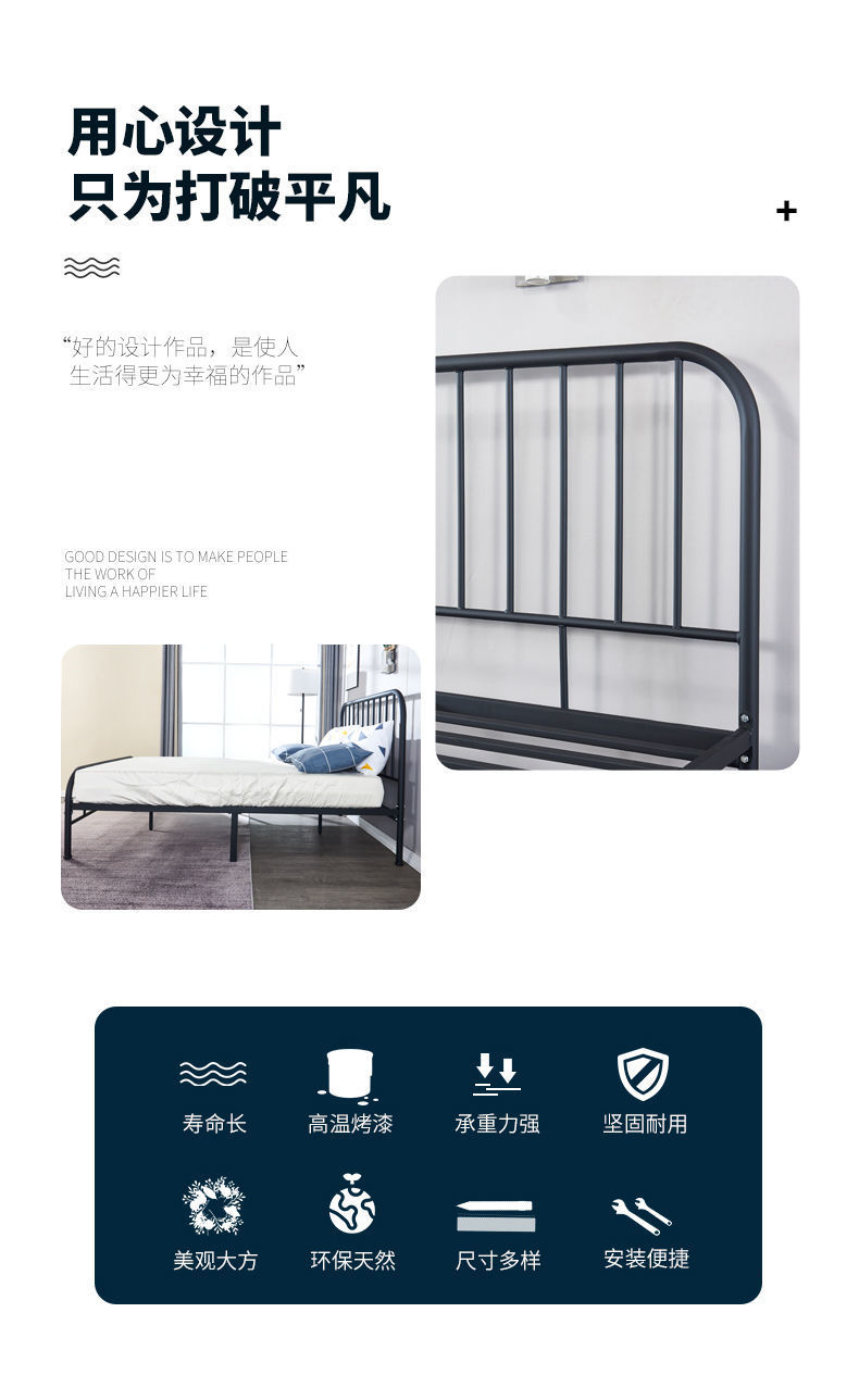 철제 침대 현대 간단한 용골 보드 철제 프레임 침대 1.8 미터 더블 1.5 미터 임대 룸 싱글 1.2 미터 철제 침대스토어 가기