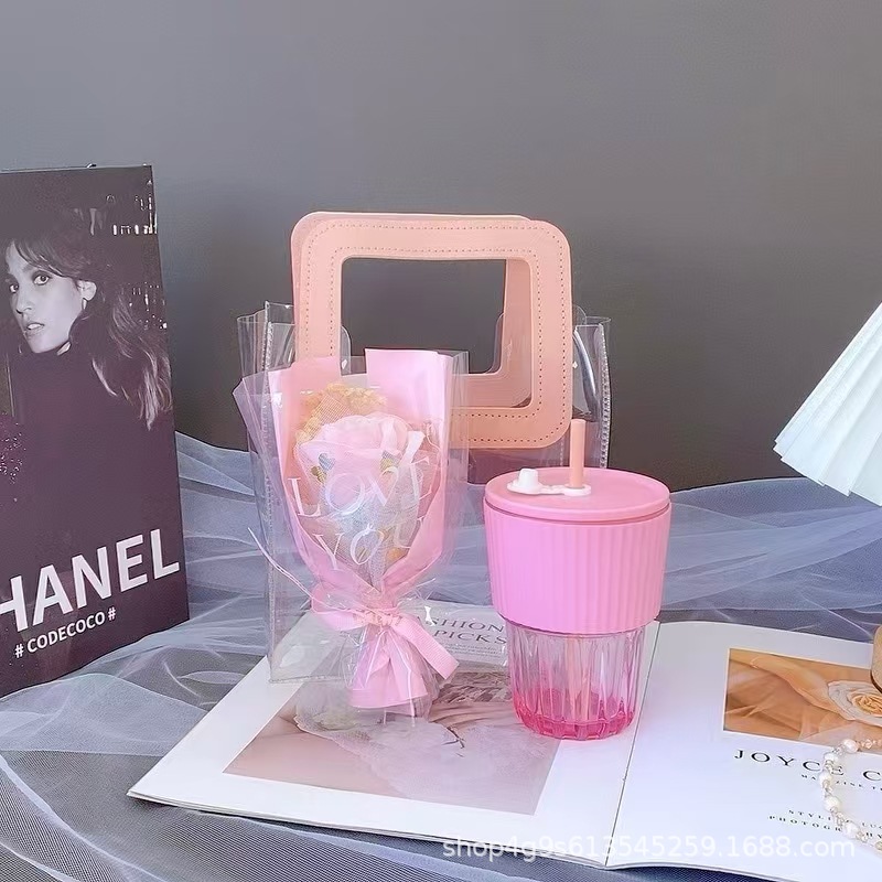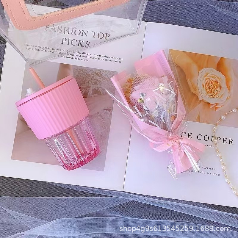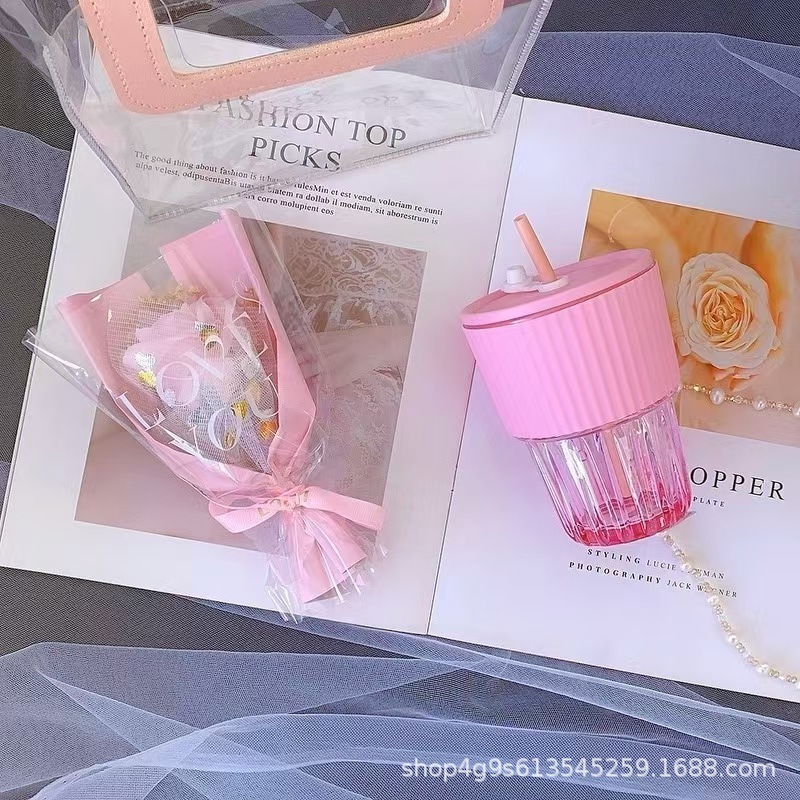 워터 컵 꽃다발 세트 주년 기념 선물 신부 들러리 직원에게 여자 친구에게 선물 반환 실용적인 작은 선물 로고스토어 가기