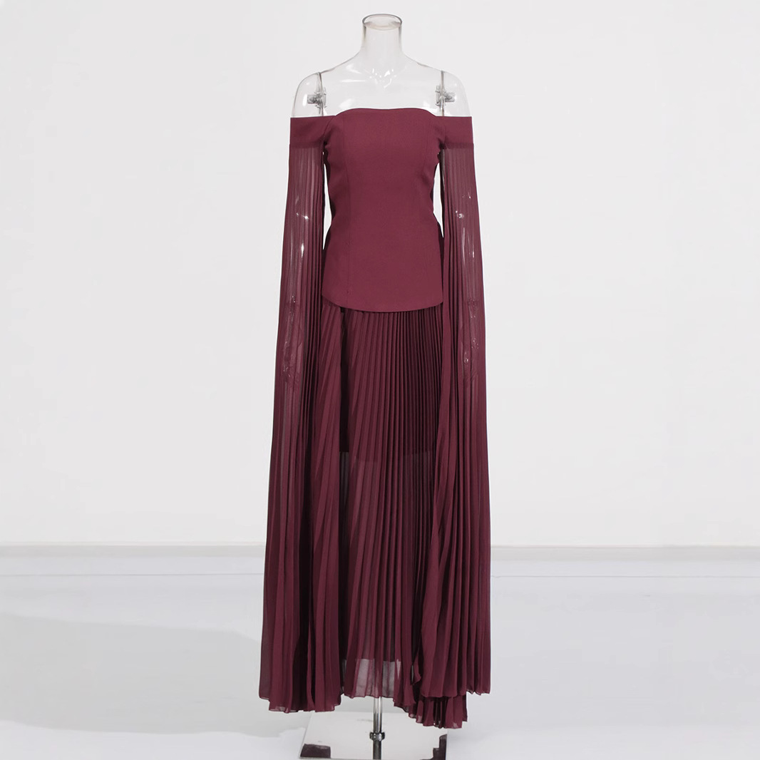 호주 쇼 유행 투피스 세트 2025 세트 여성을위한 새로운 도착 슬림 핏 탑 하이 허리 주름 치마