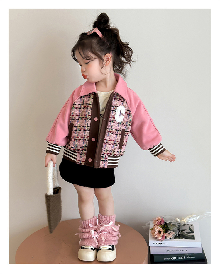 소녀의 인쇄 야구 세트 코트 2025 봄 새로운 한국 서양식 재킷 인터넷 기념 어린이 의류 패션 헤어 코트