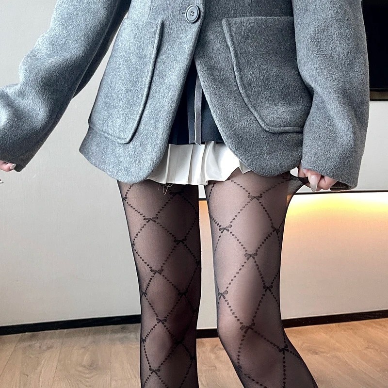 다이아몬드 격자 무늬 점선 자카드 코어 실크 섹시한 달콤한 틈새 블랙 실크 얇은 다리 팬티 스타킹 여성
