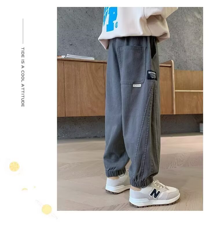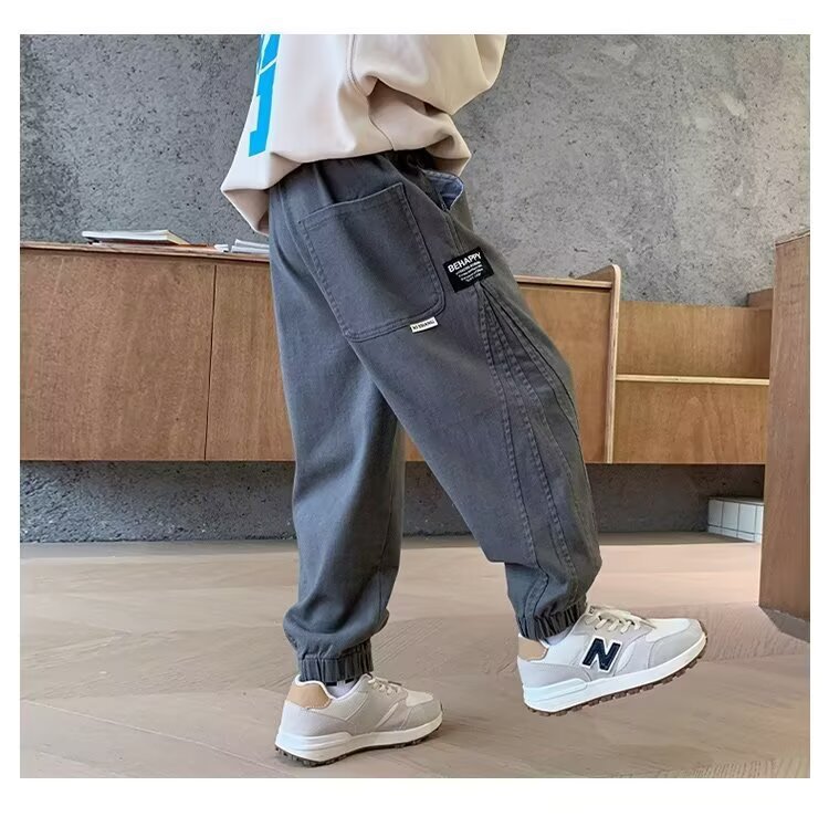 소년의 봄과 가을 크레인 바지 새로운 어린이 캐주얼 바지 큰 어린이 느슨한 봄 소년 스포츠 바지 회색스토어 가기