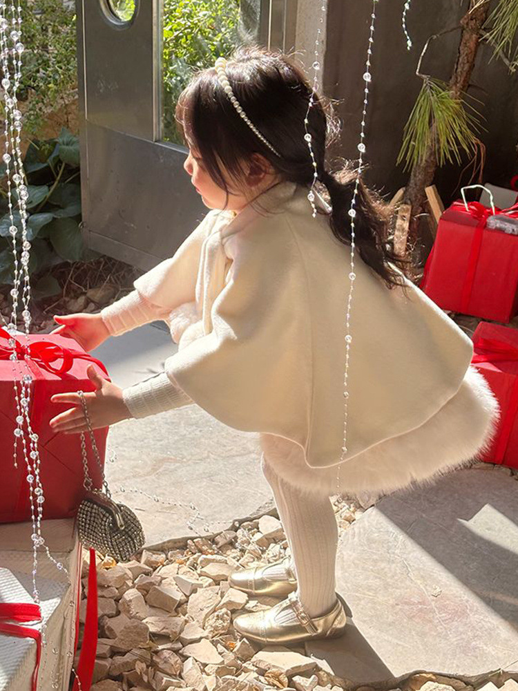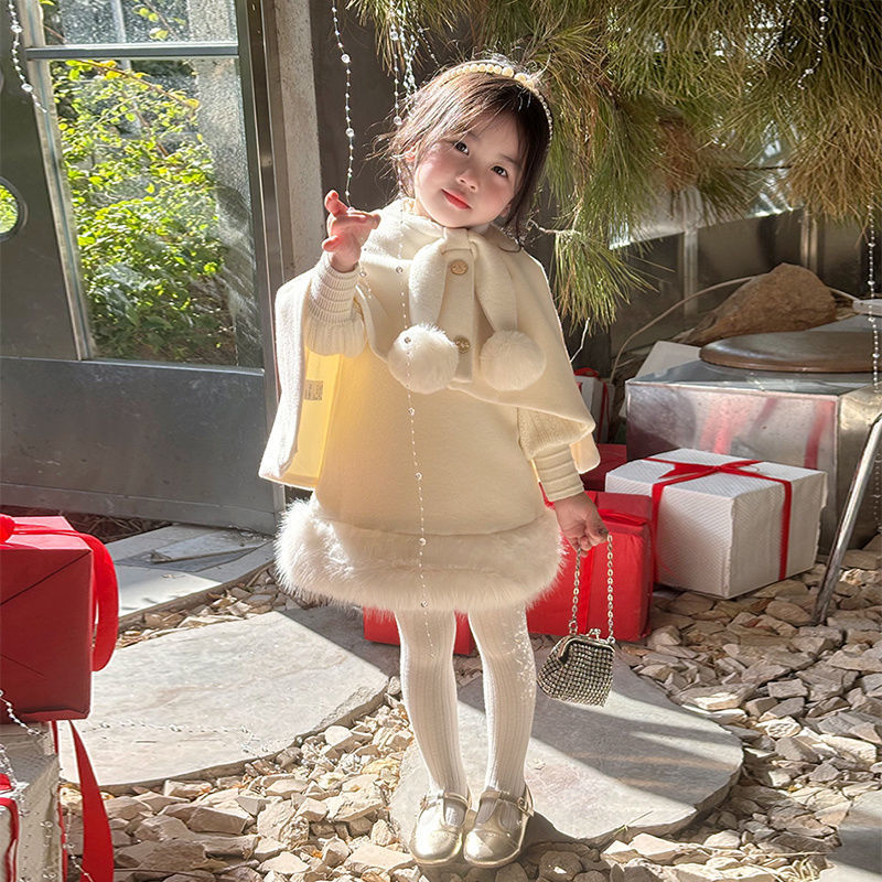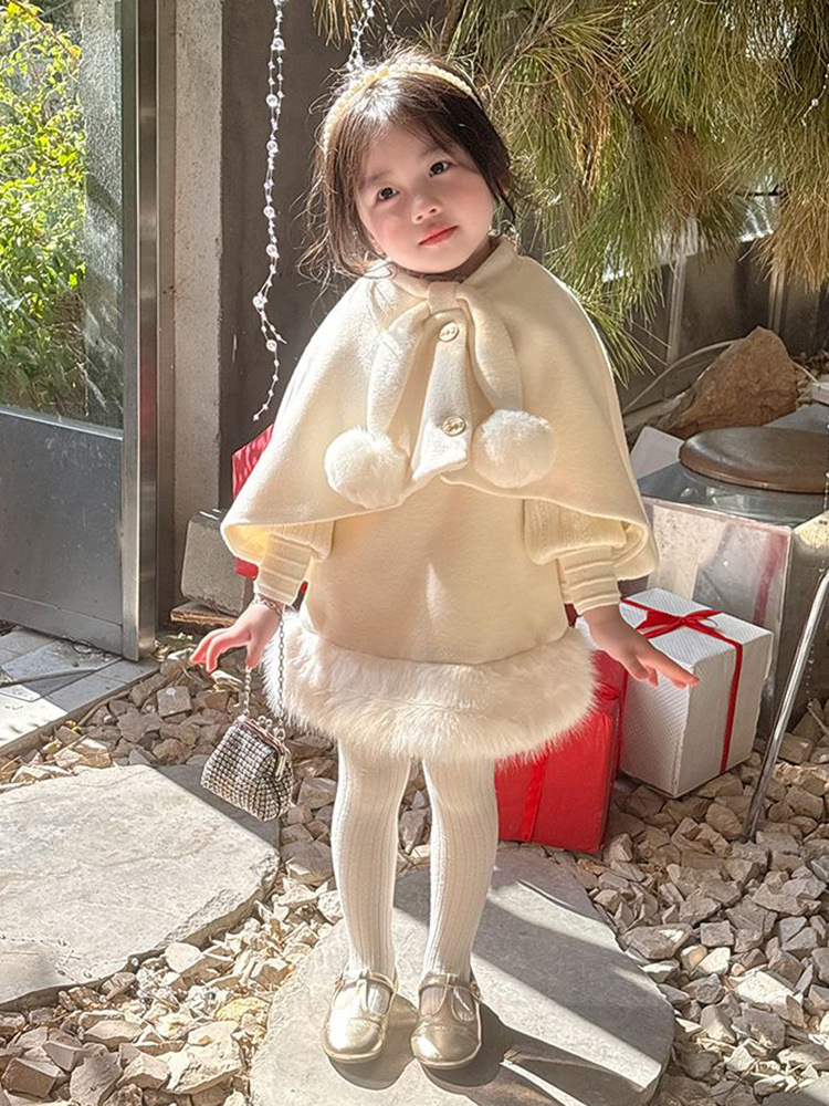 한국 아동복 2025 봄과 가을 새로운 귀여운 아이보리 봉제 조끼 치마 소녀 모직 케이프 코트스토어 가기