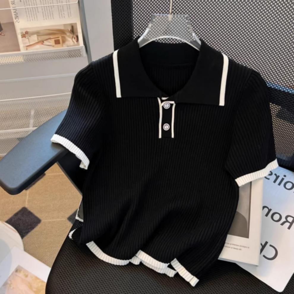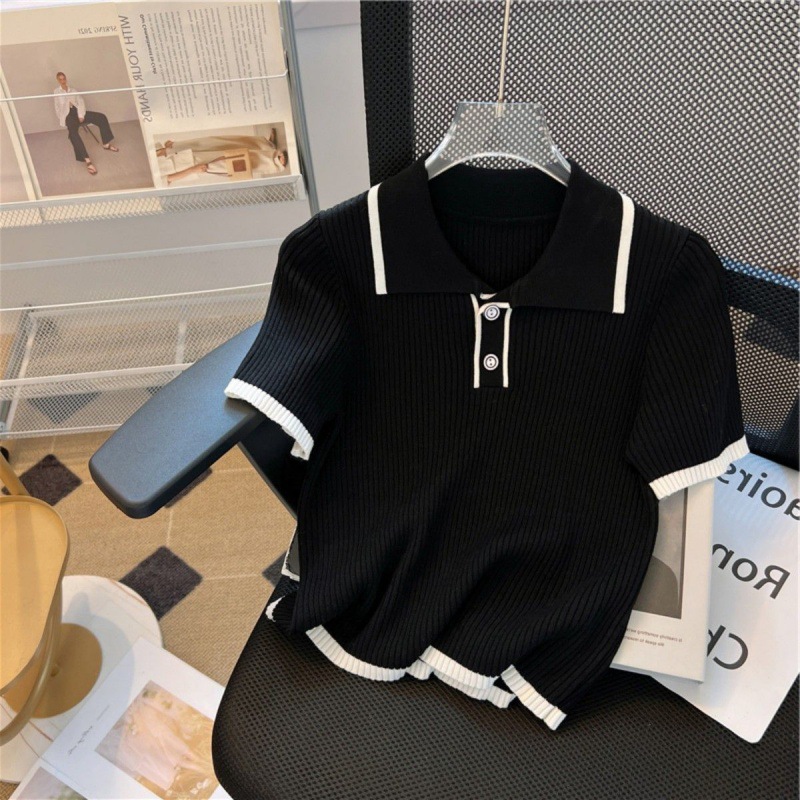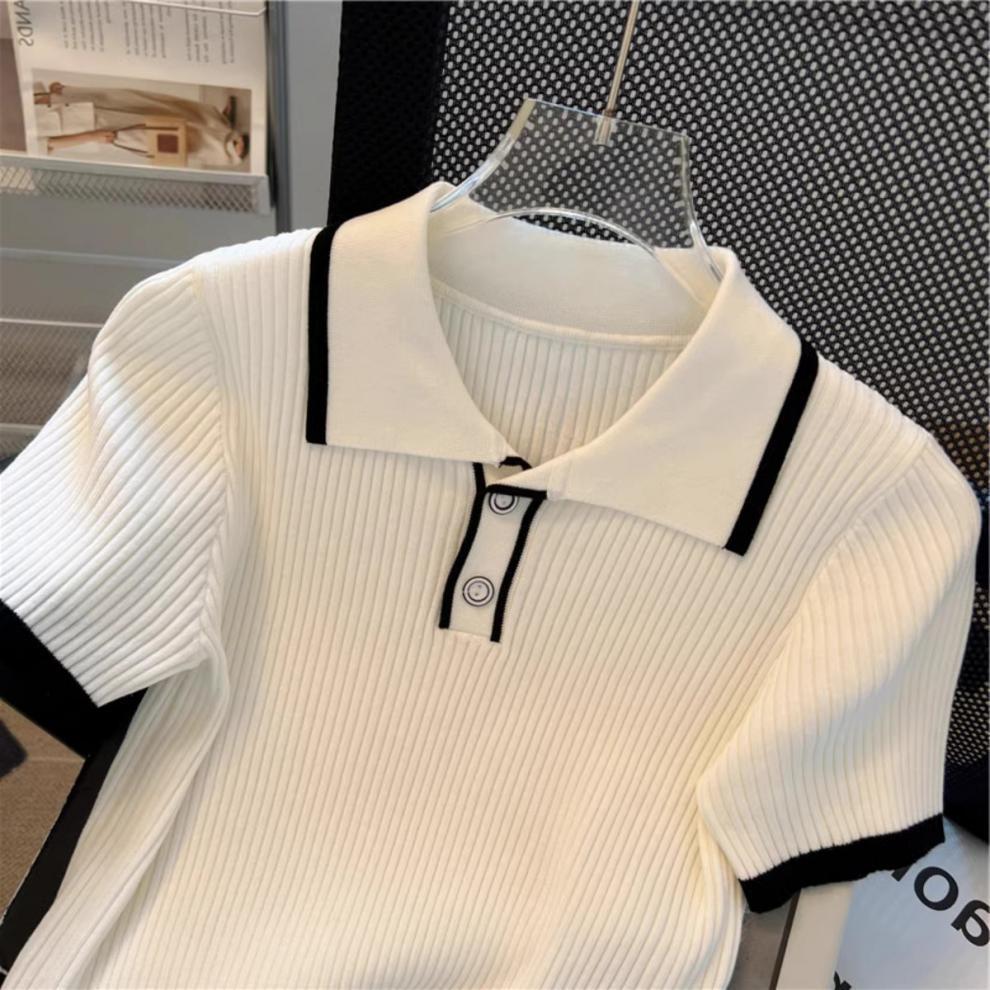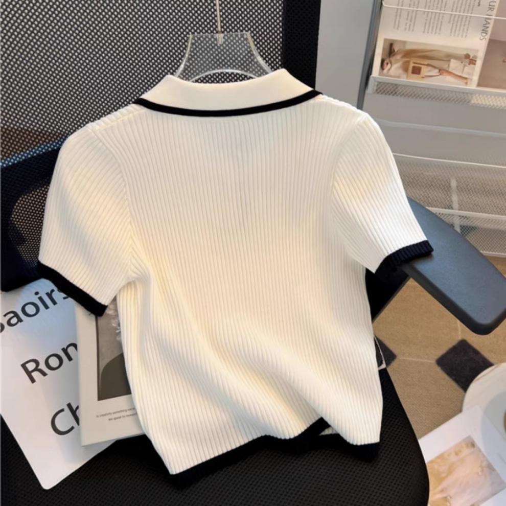 아이스 실크 니트 반팔 셔츠 여성 여름 2024 새로운 패션 세련 된 나이 감소 셔츠 작은 샤넬 스타일 탑