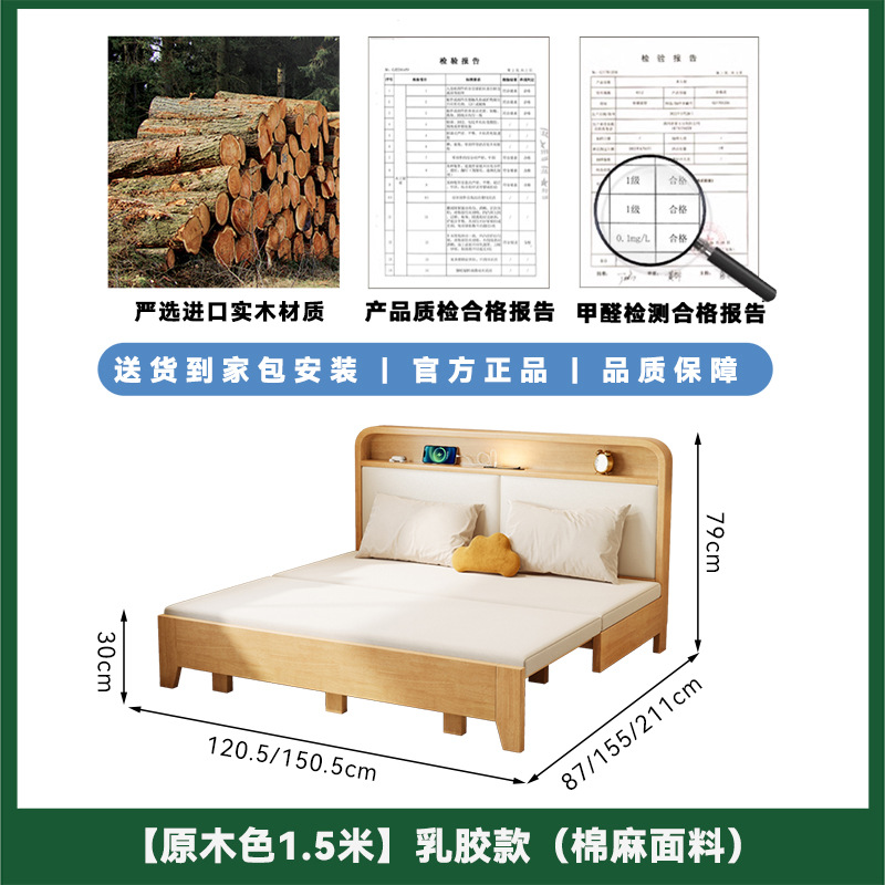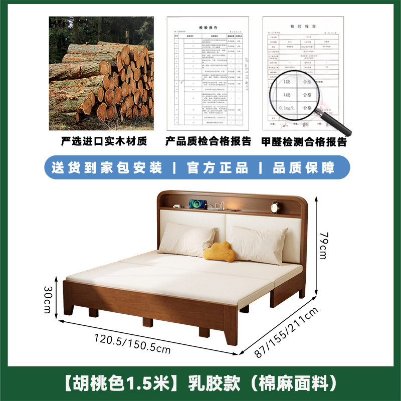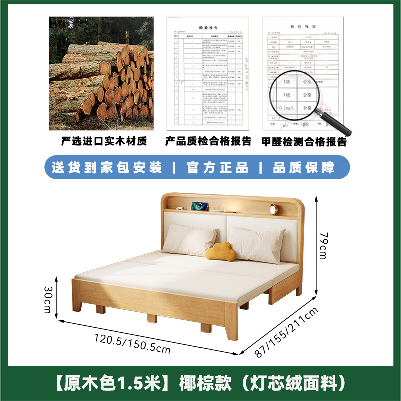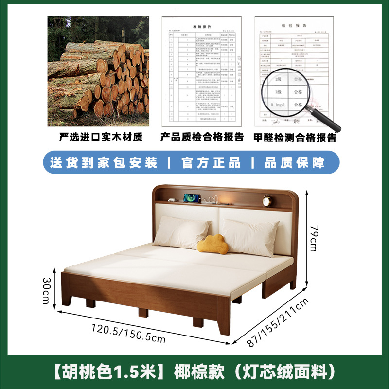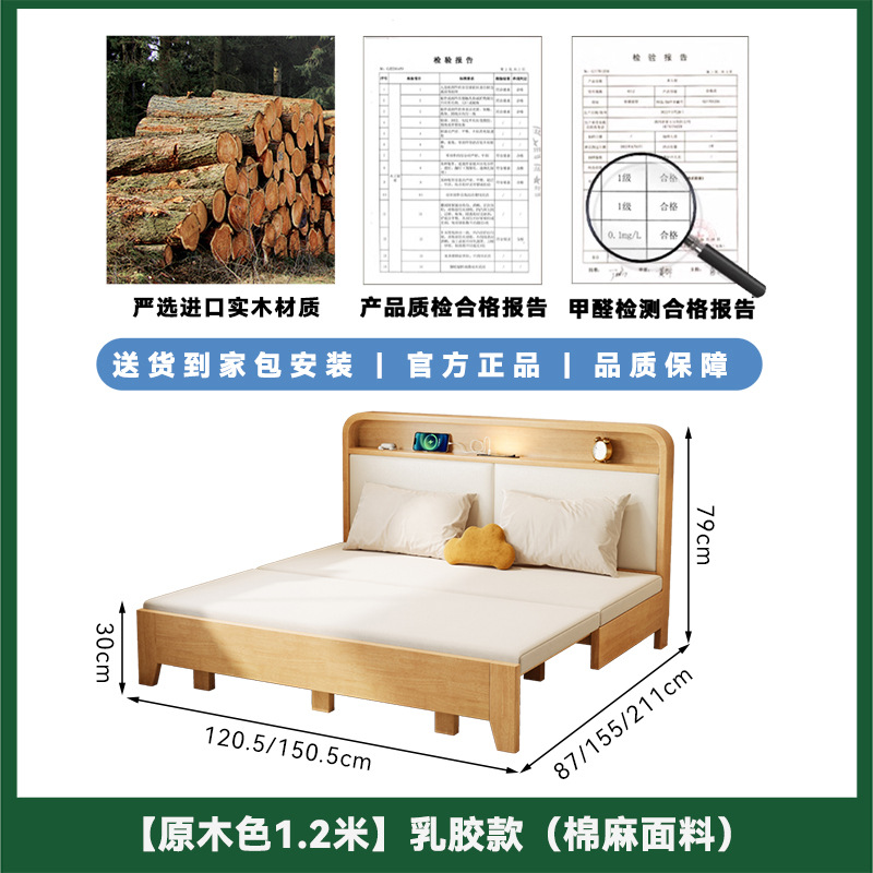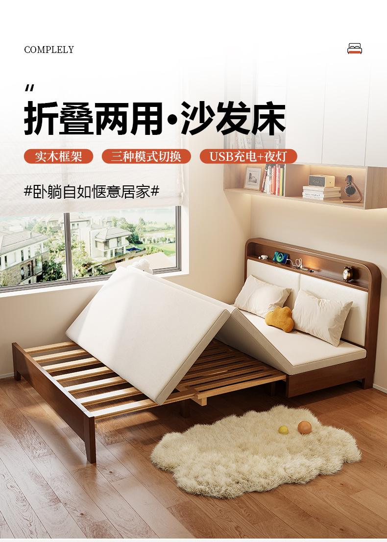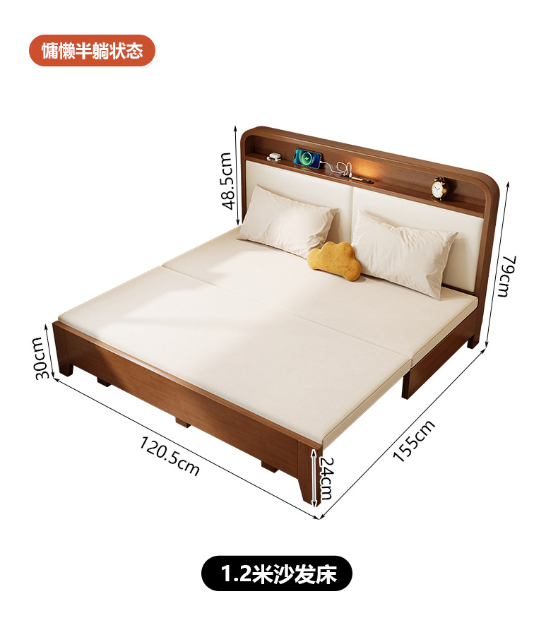 2025 새로운 솔리드 우드 소파 침대 작은 아파트 거실 다기능 접이식 접이식 침대 이중 사용 목재 추출 침대스토어 가기