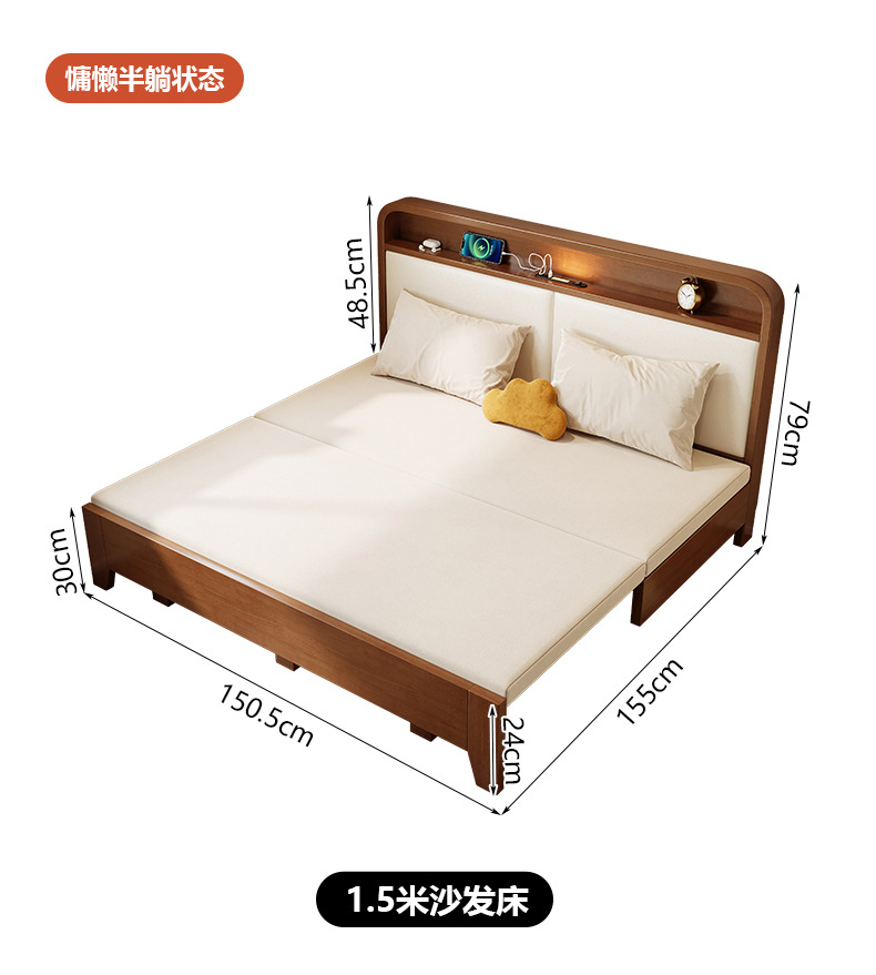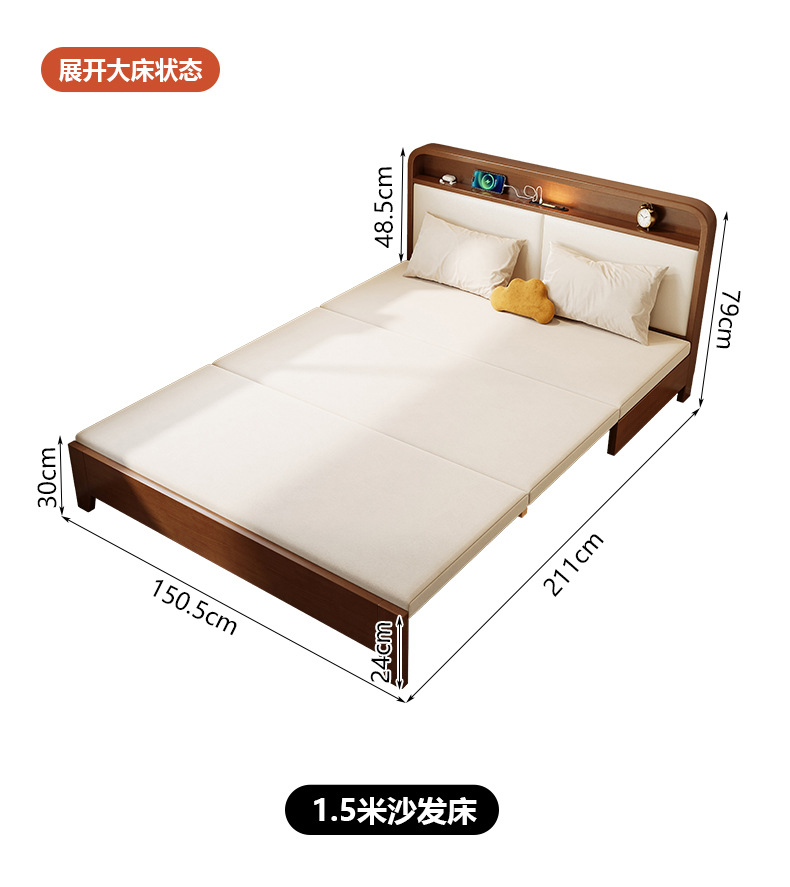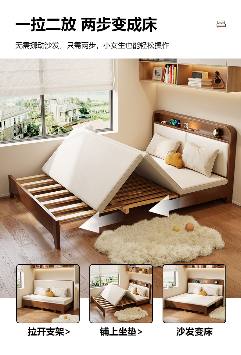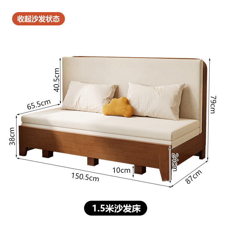 2025 새로운 솔리드 우드 소파 침대 작은 아파트 거실 다기능 접이식 접이식 침대 이중 사용 목재 추출 침대