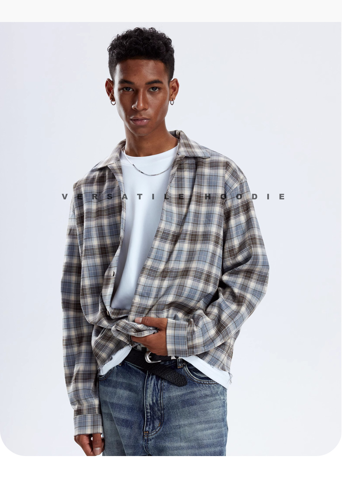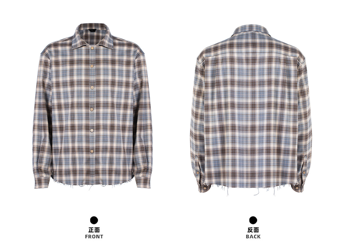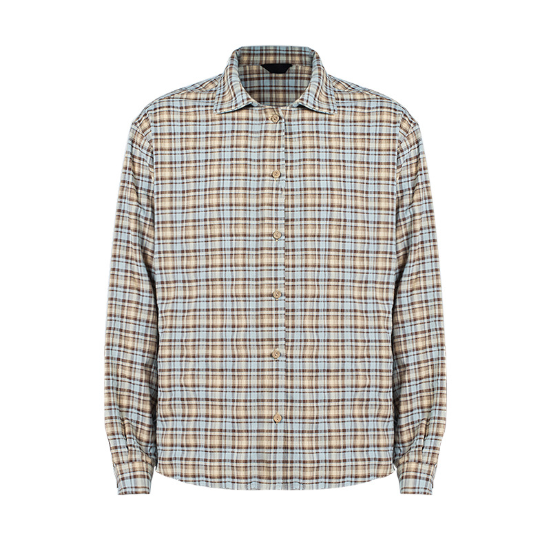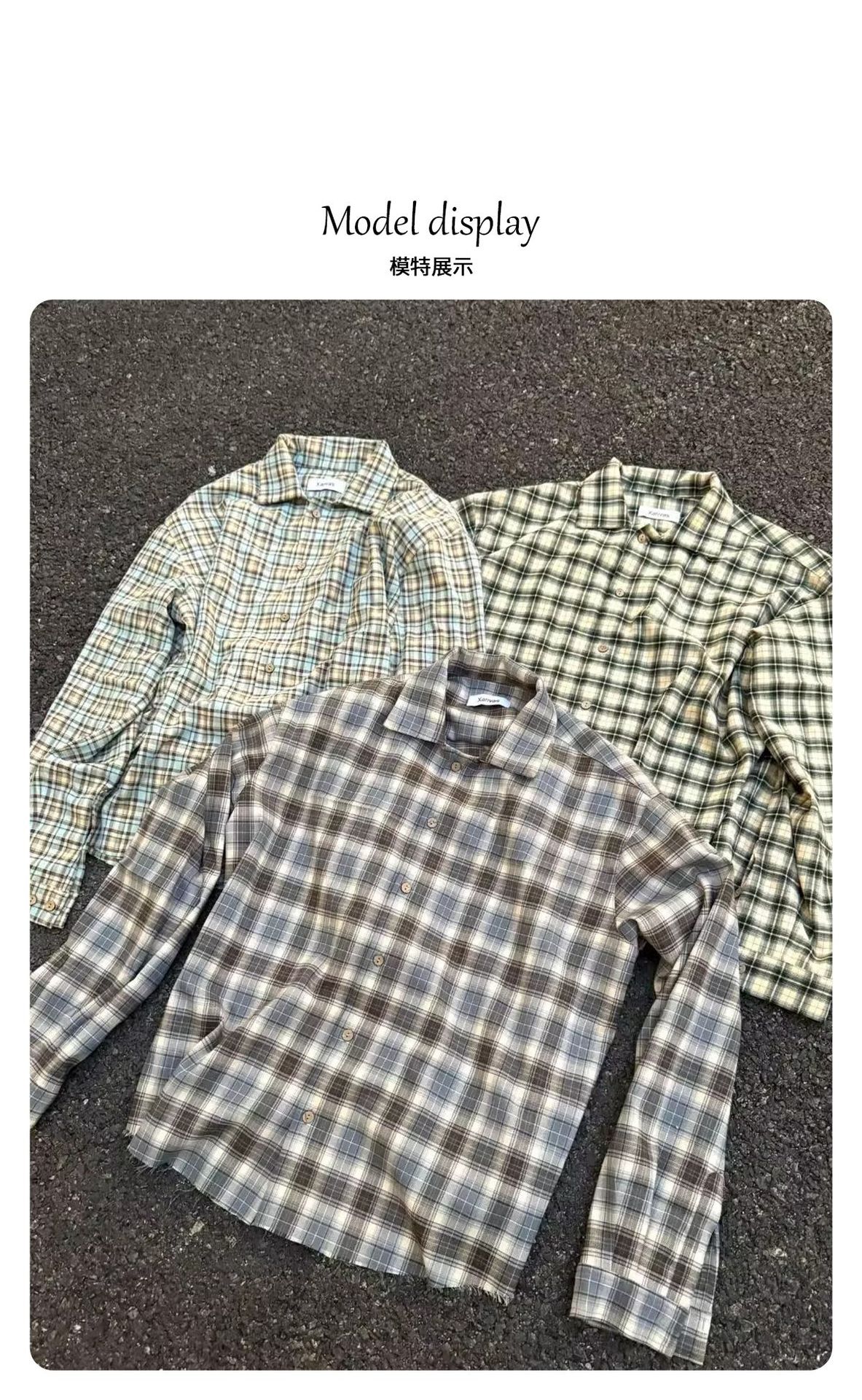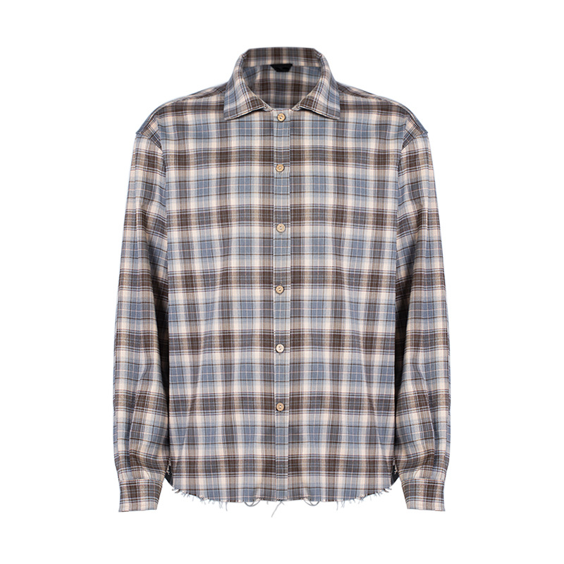 "CSMY" Xanvas Worsted TR 격자 무늬 셔츠 3 색 피부 친화적 인 실크 수입 직물 파괴 세부 사항스토어 가기