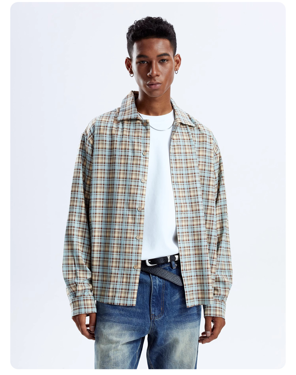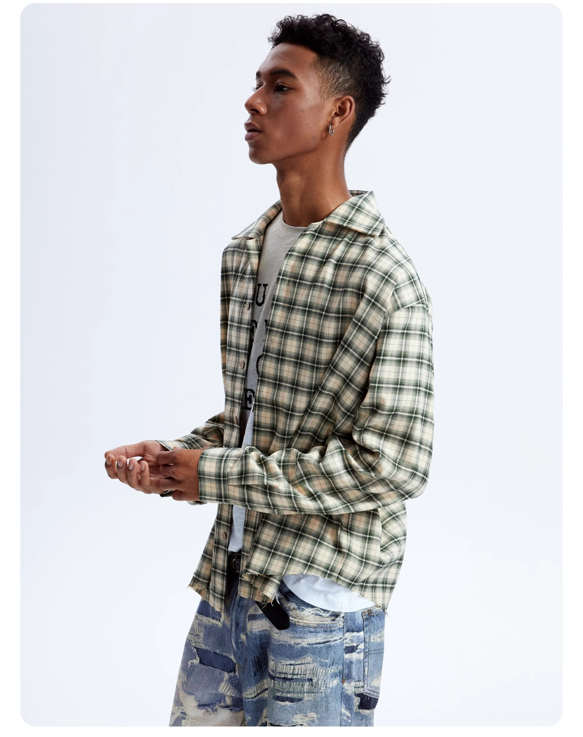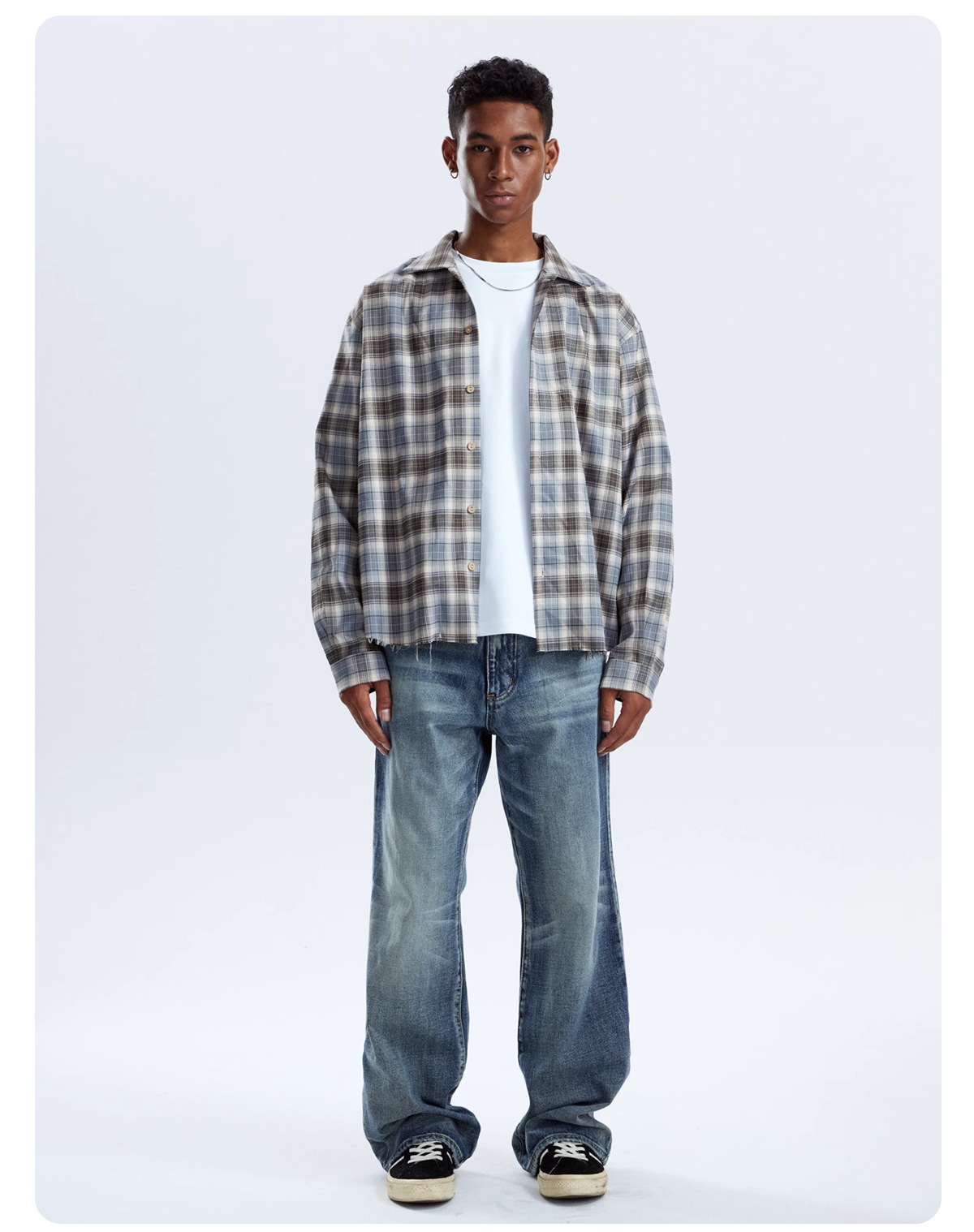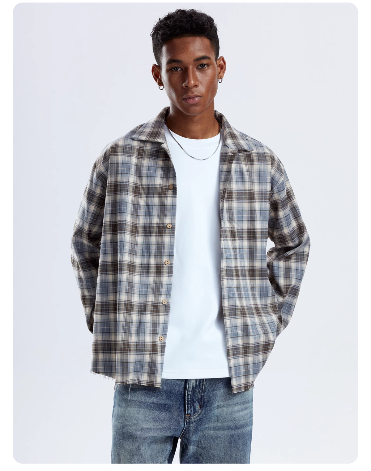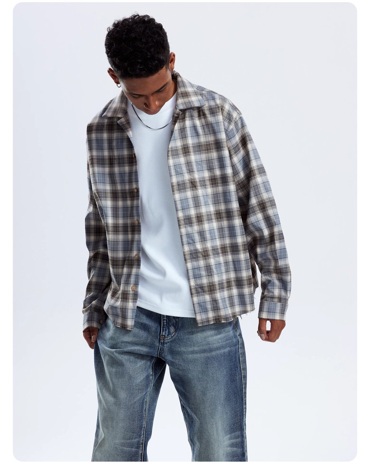 "CSMY" Xanvas Worsted TR 격자 무늬 셔츠 3 색 피부 친화적 인 실크 수입 직물 파괴 세부 사항스토어 가기