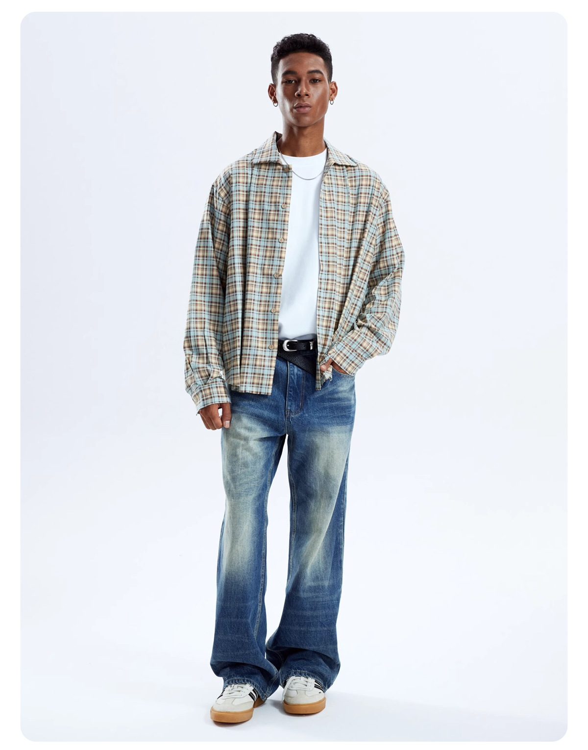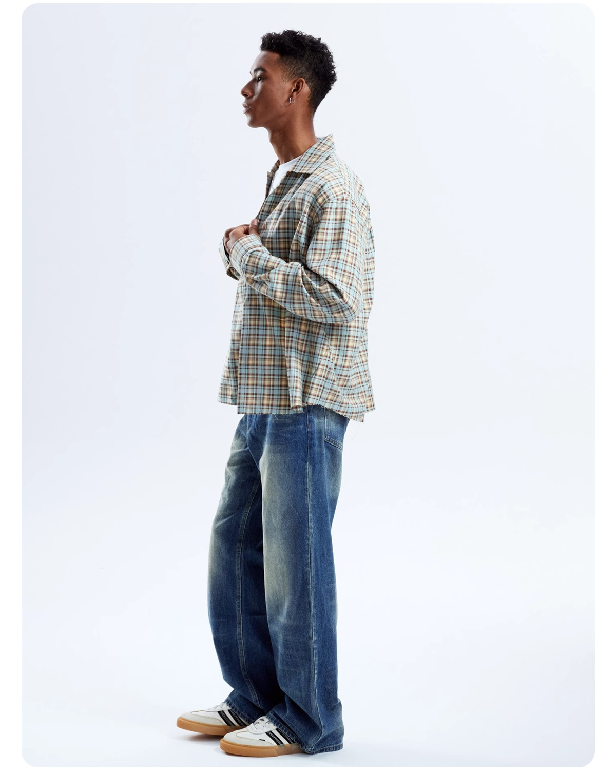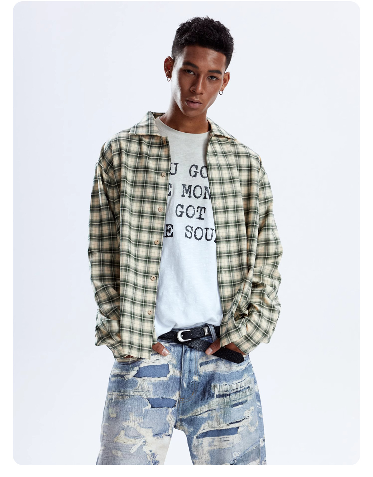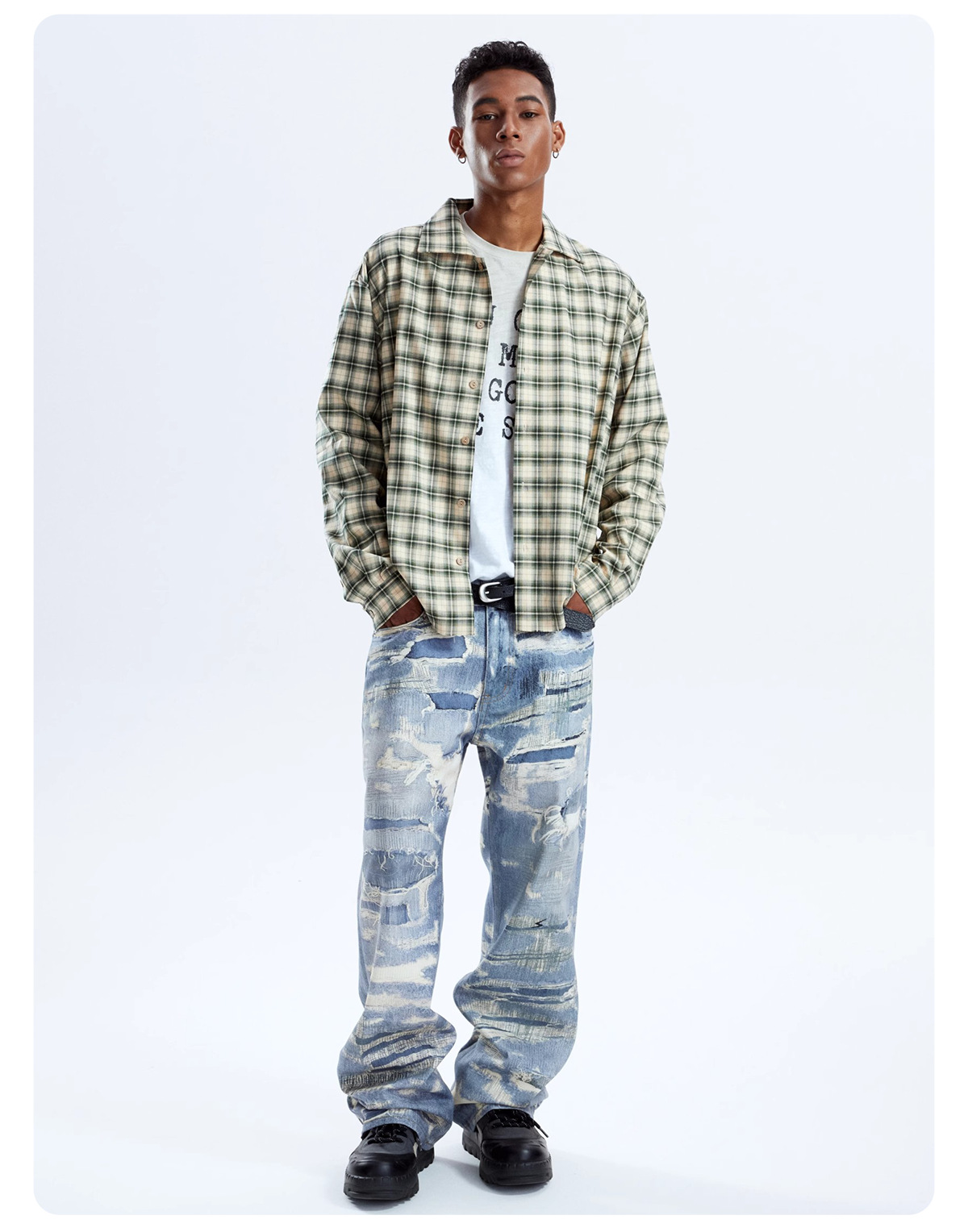 "CSMY" Xanvas Worsted TR 격자 무늬 셔츠 3 색 피부 친화적 인 실크 수입 직물 파괴 세부 사항스토어 가기