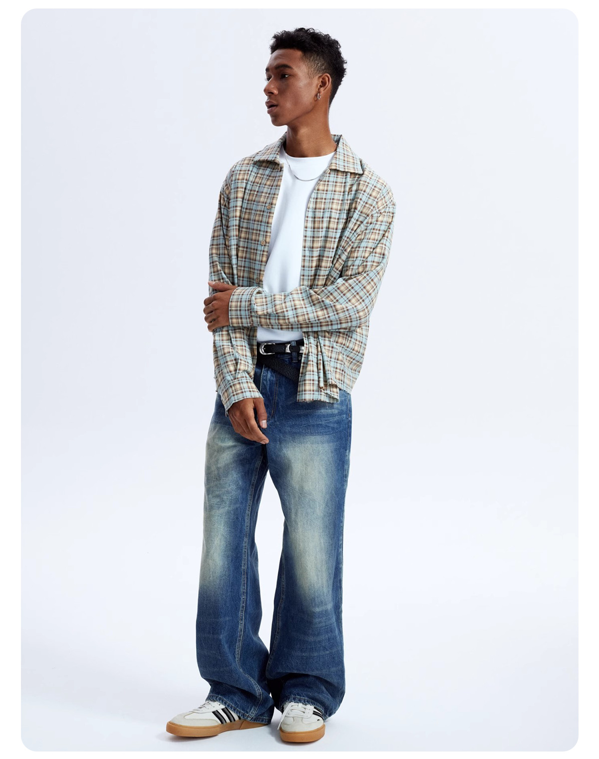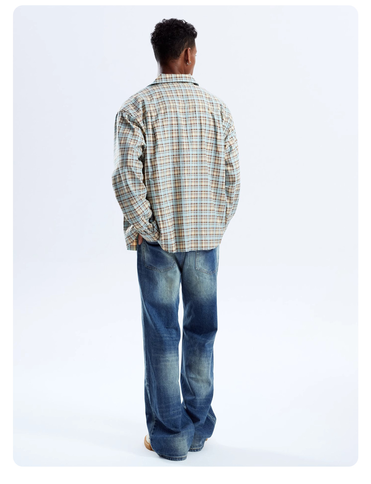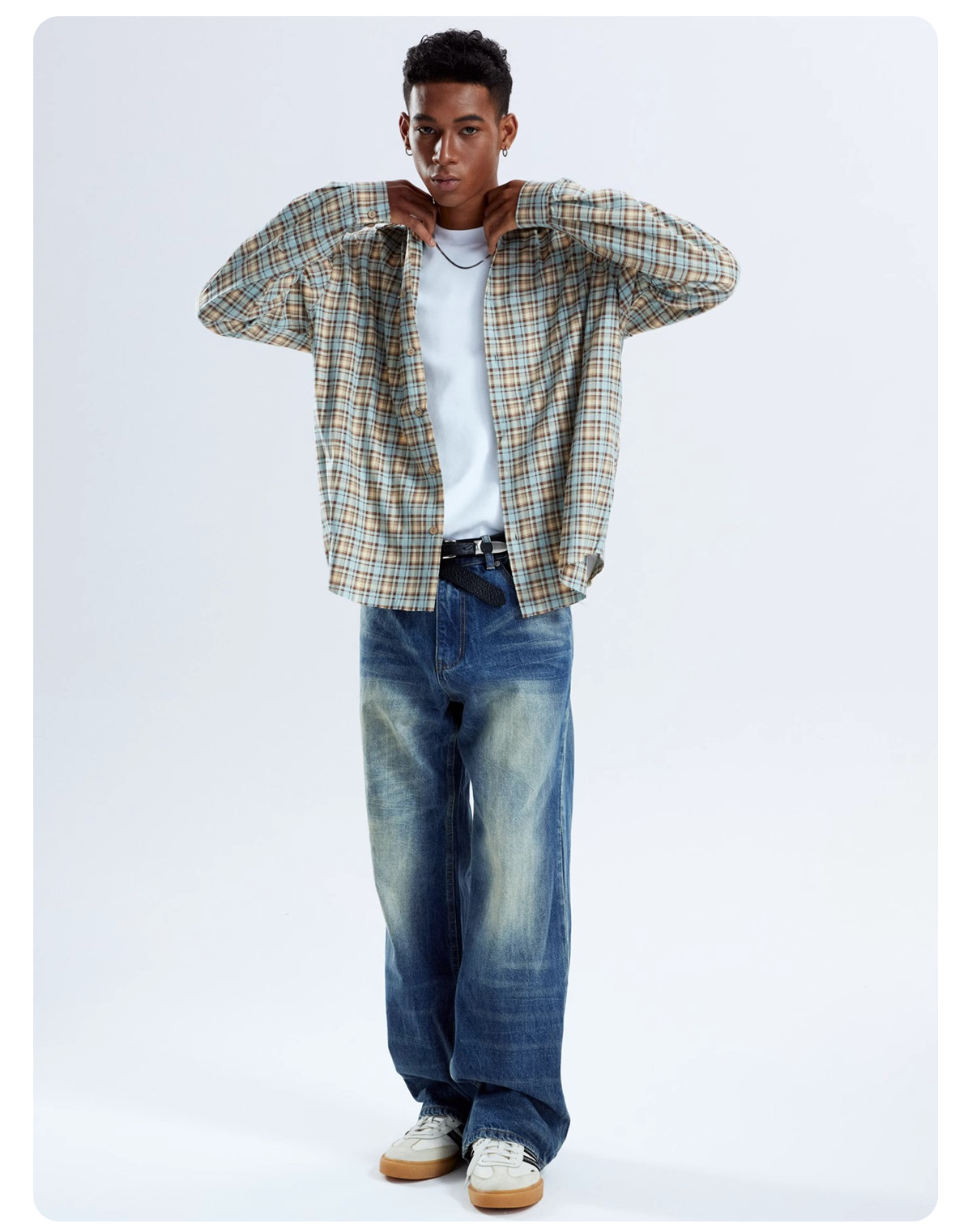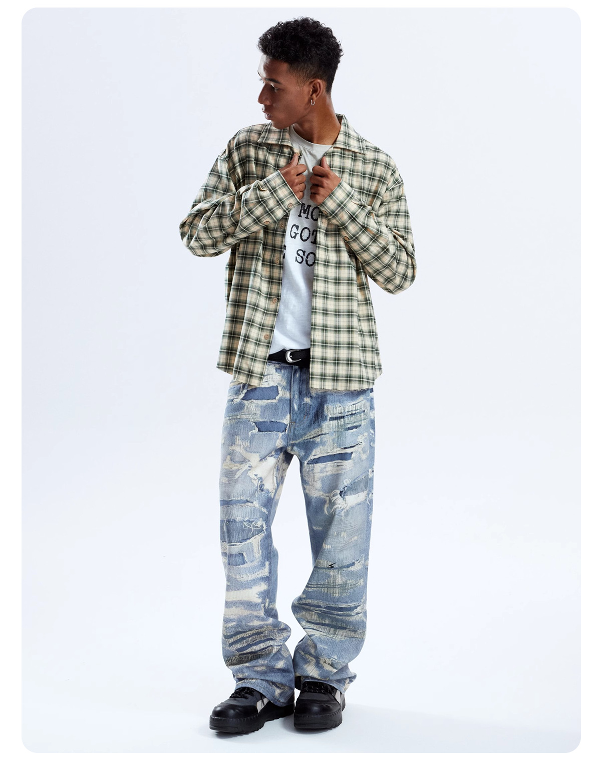 "CSMY" Xanvas Worsted TR 격자 무늬 셔츠 3 색 피부 친화적 인 실크 수입 직물 파괴 세부 사항스토어 가기