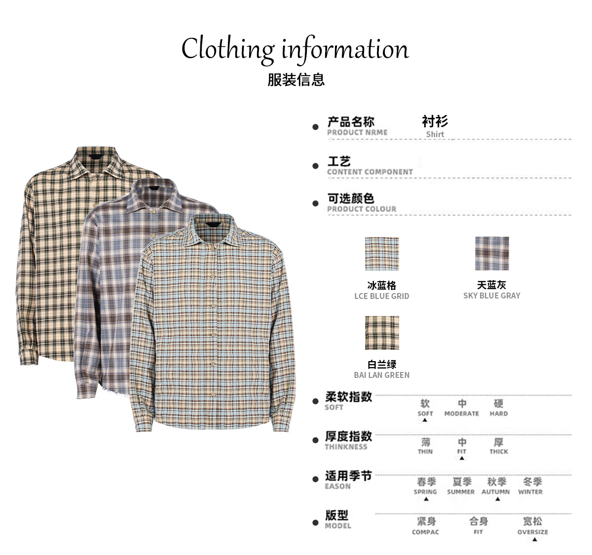 "CSMY" Xanvas Worsted TR 격자 무늬 셔츠 3 색 피부 친화적 인 실크 수입 직물 파괴 세부 사항