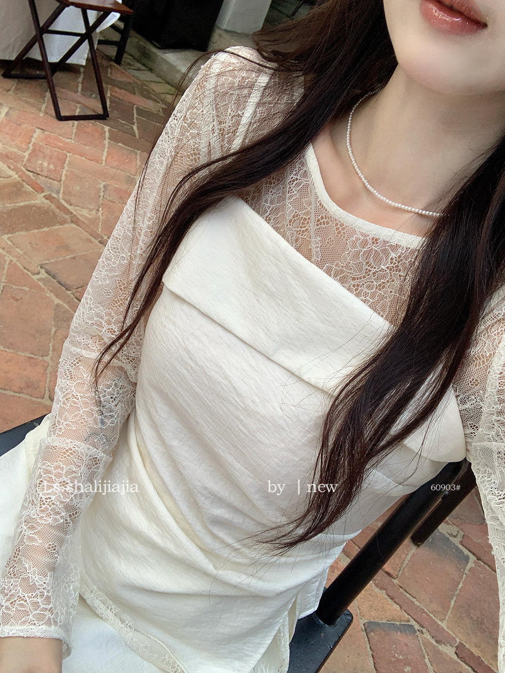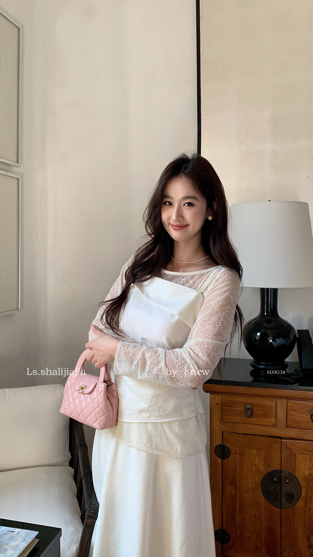LS 25 년 새로운 순수 우아한 세트 여성 조커 기질 레이스 셔츠 스커트 3 피스 세트 60903