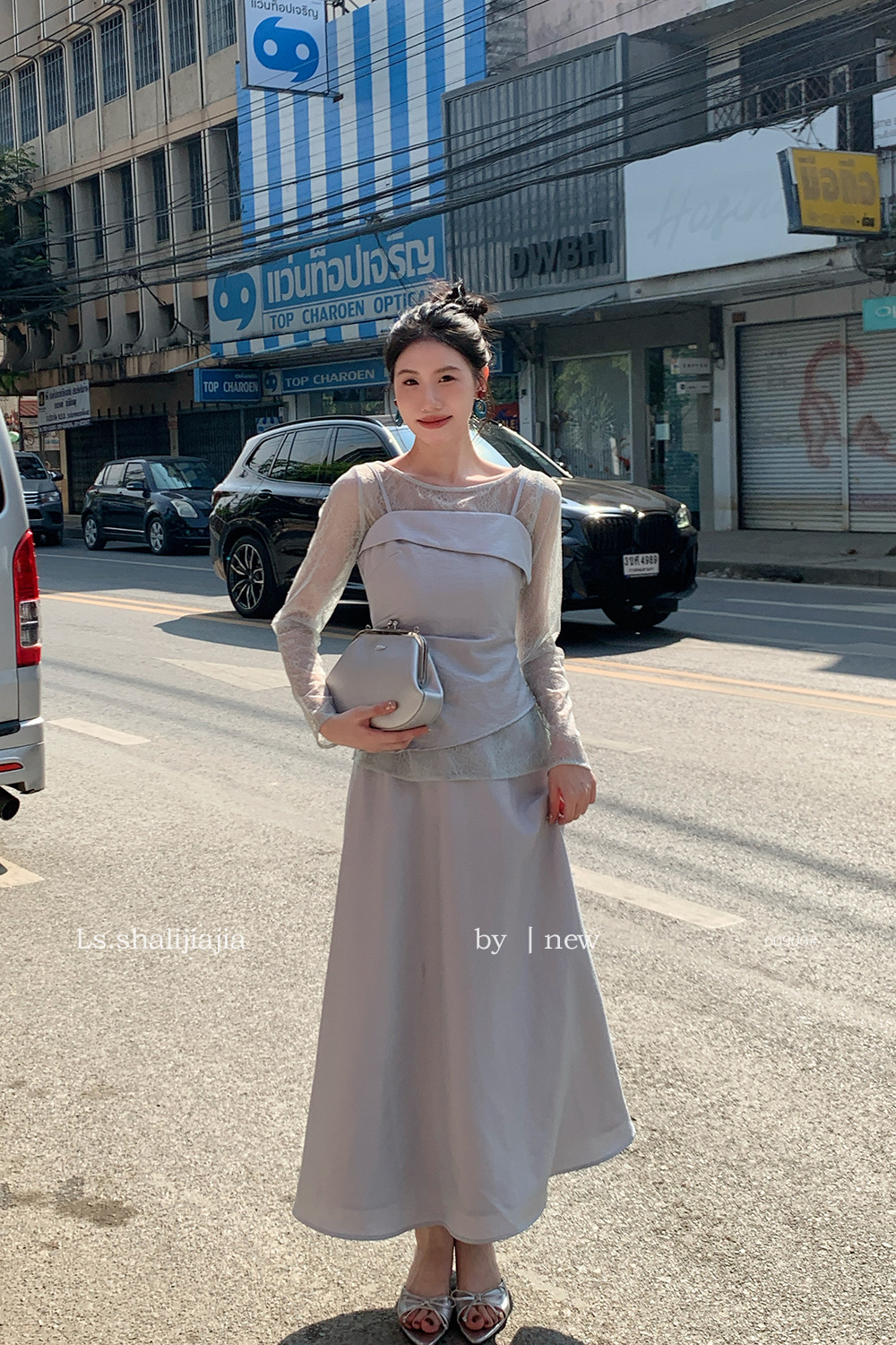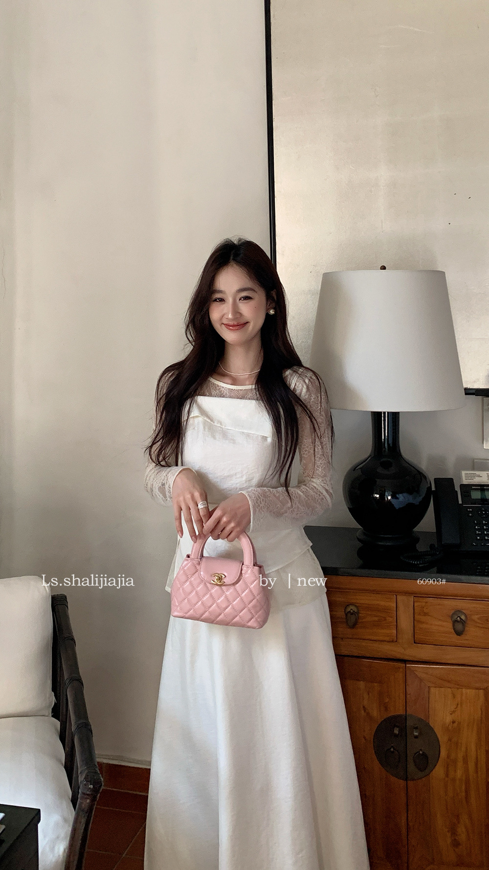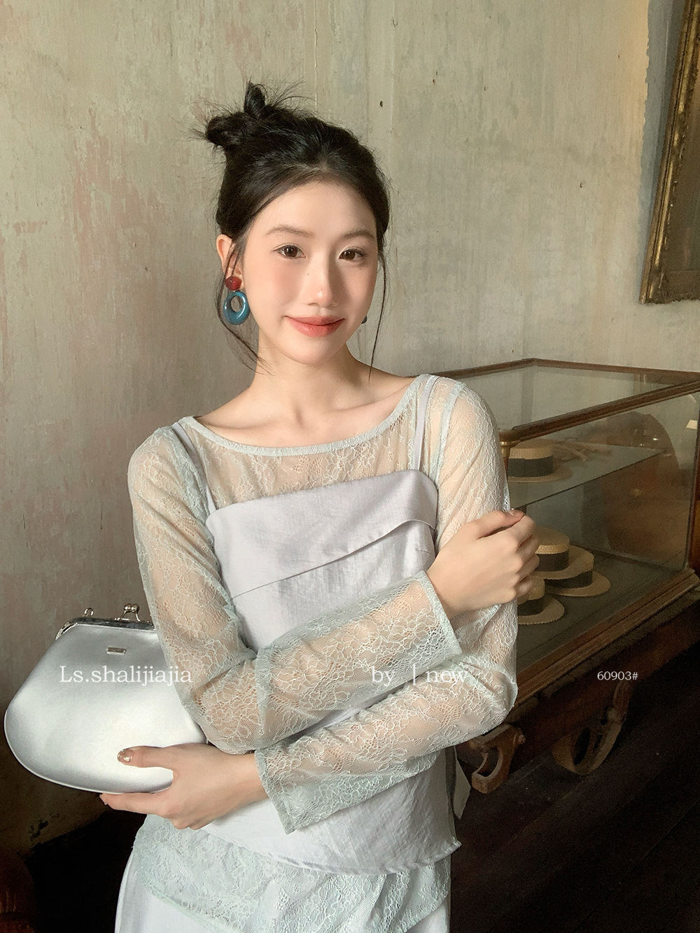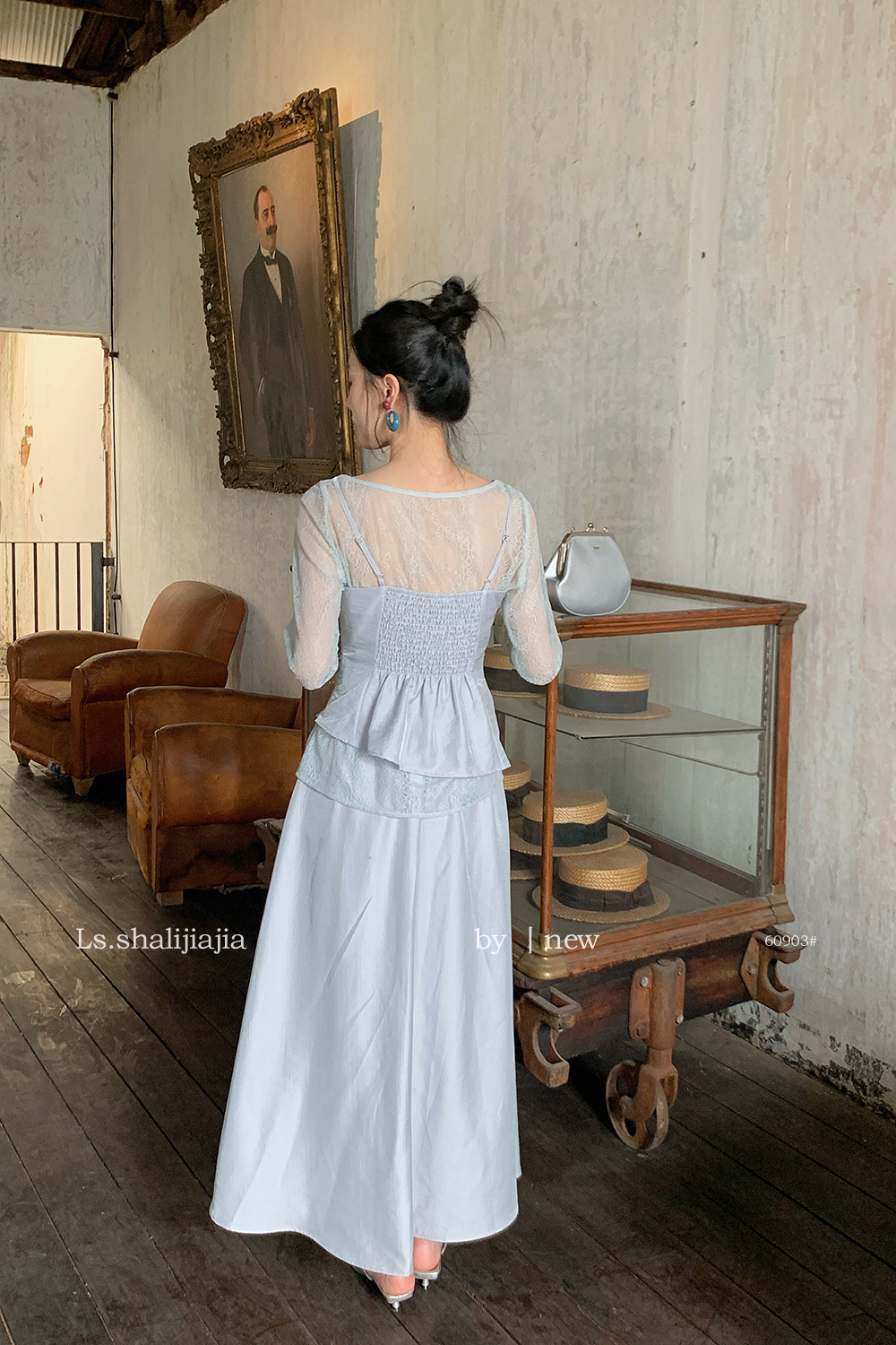 LS 25 년 새로운 순수 우아한 세트 여성 조커 기질 레이스 셔츠 스커트 3 피스 세트 60903스토어 가기